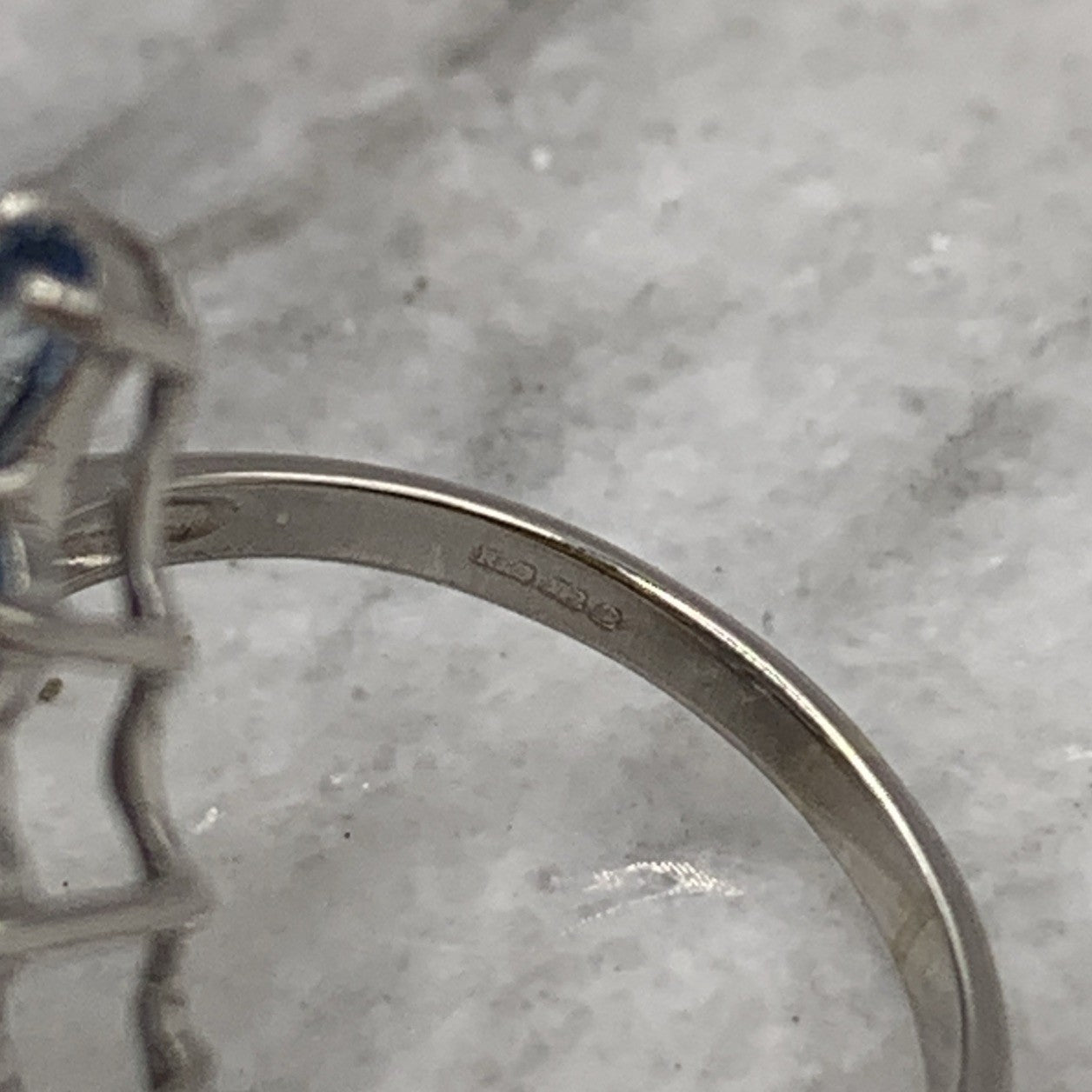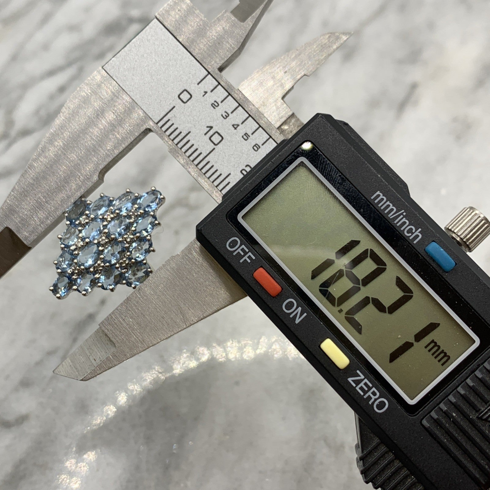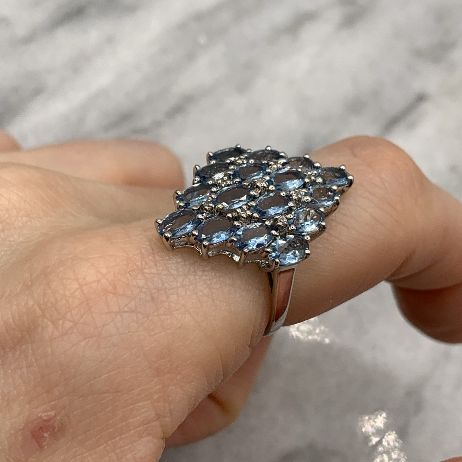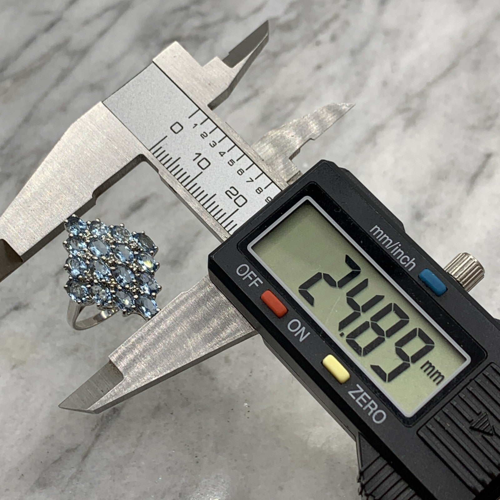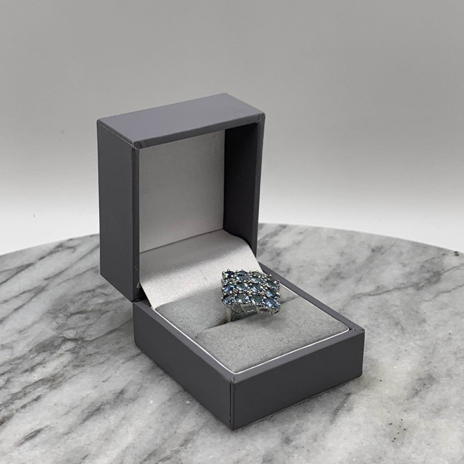 9 ct Gold Aquamarine Diamond Ring Cluster Cocktail 375 White Gold - Size N