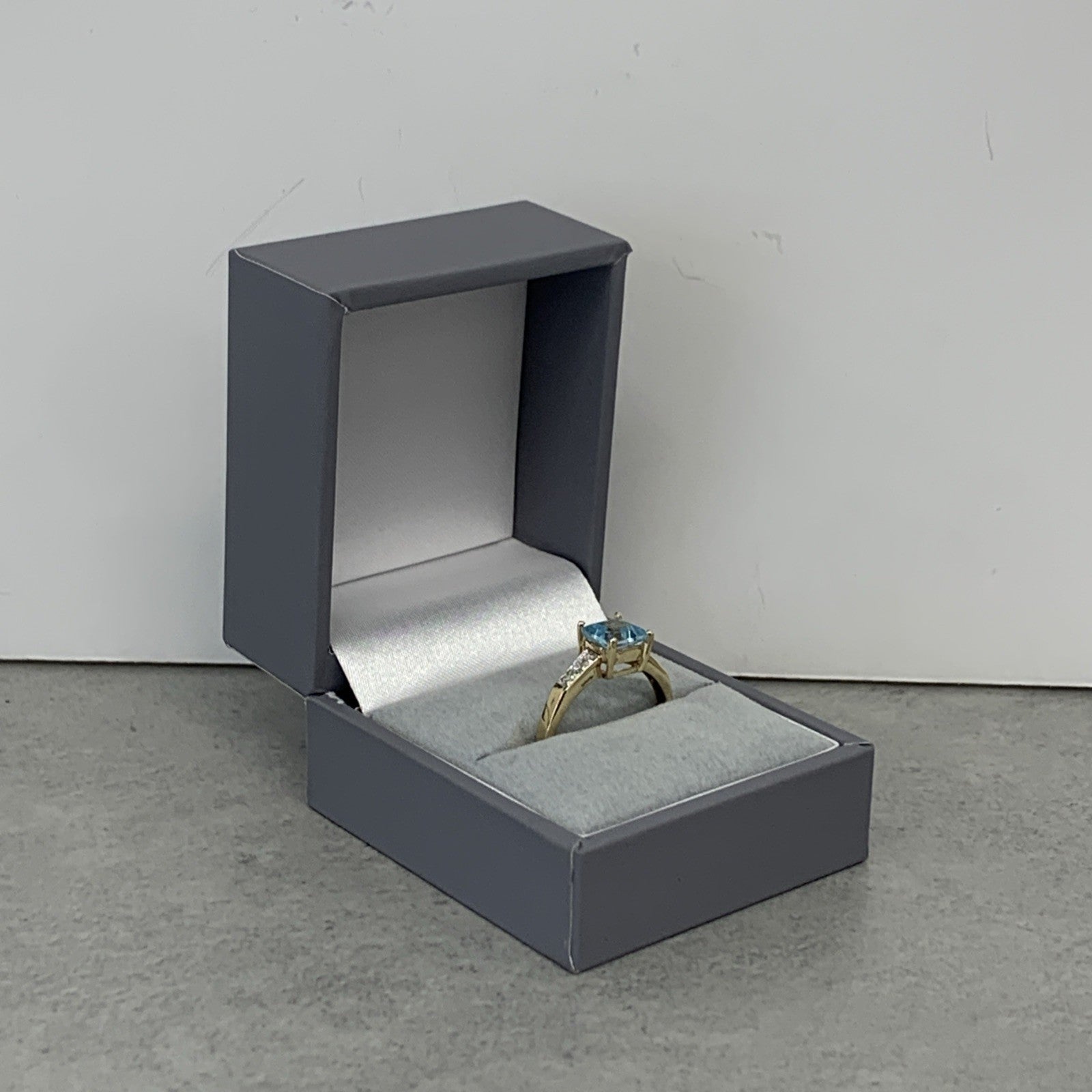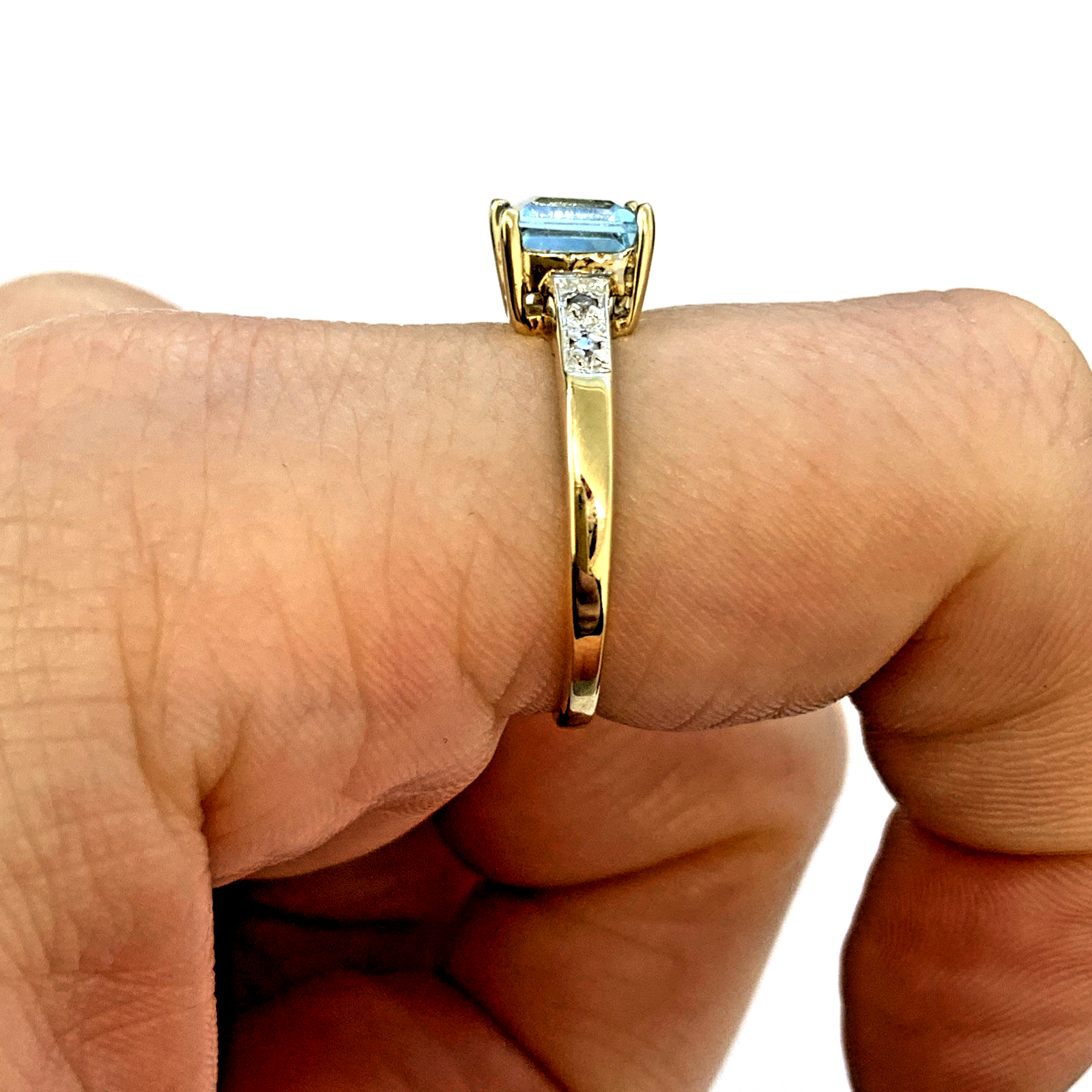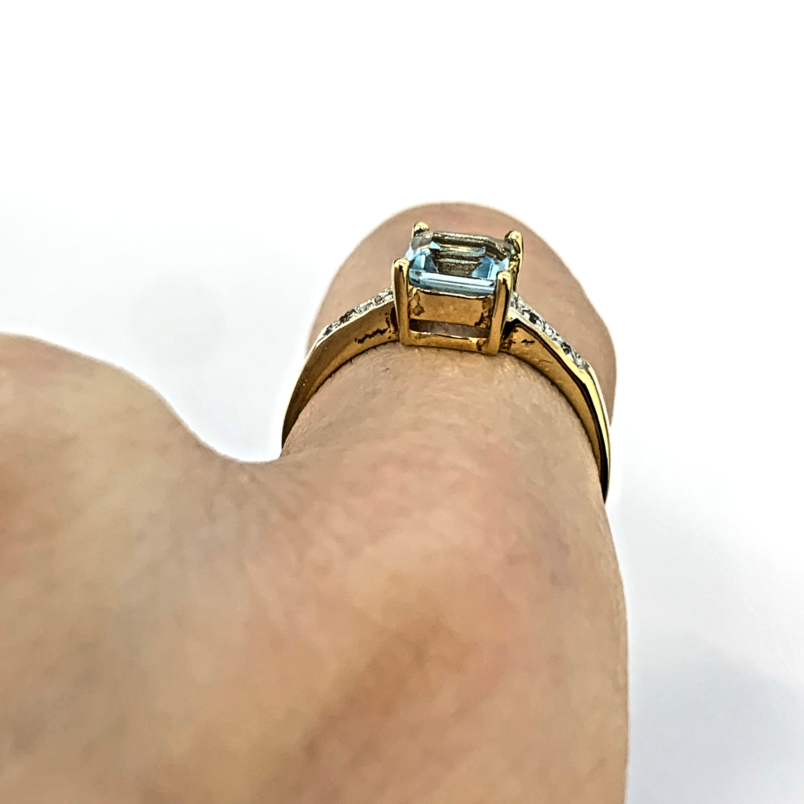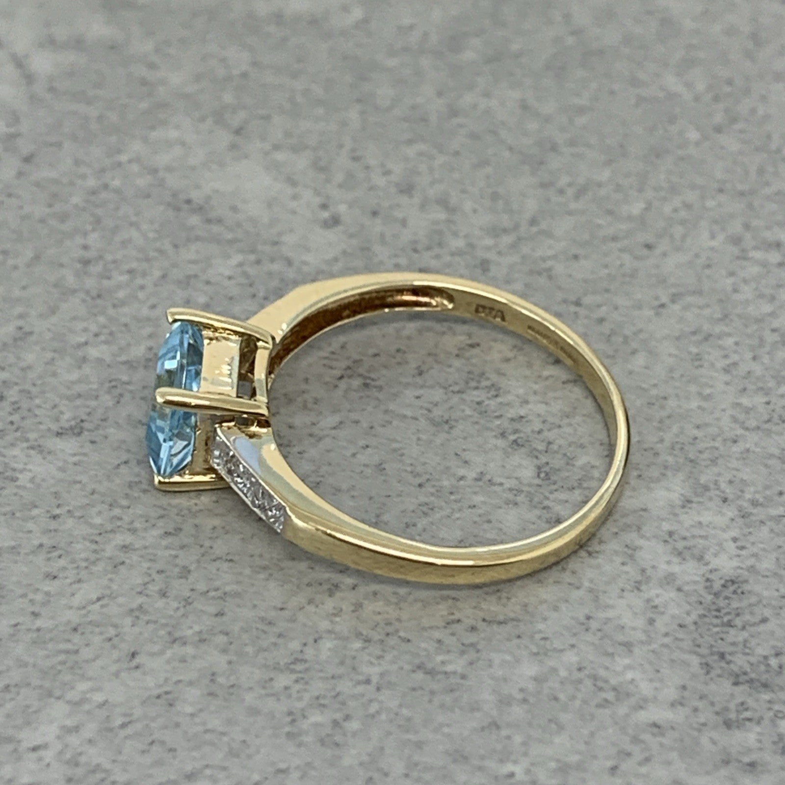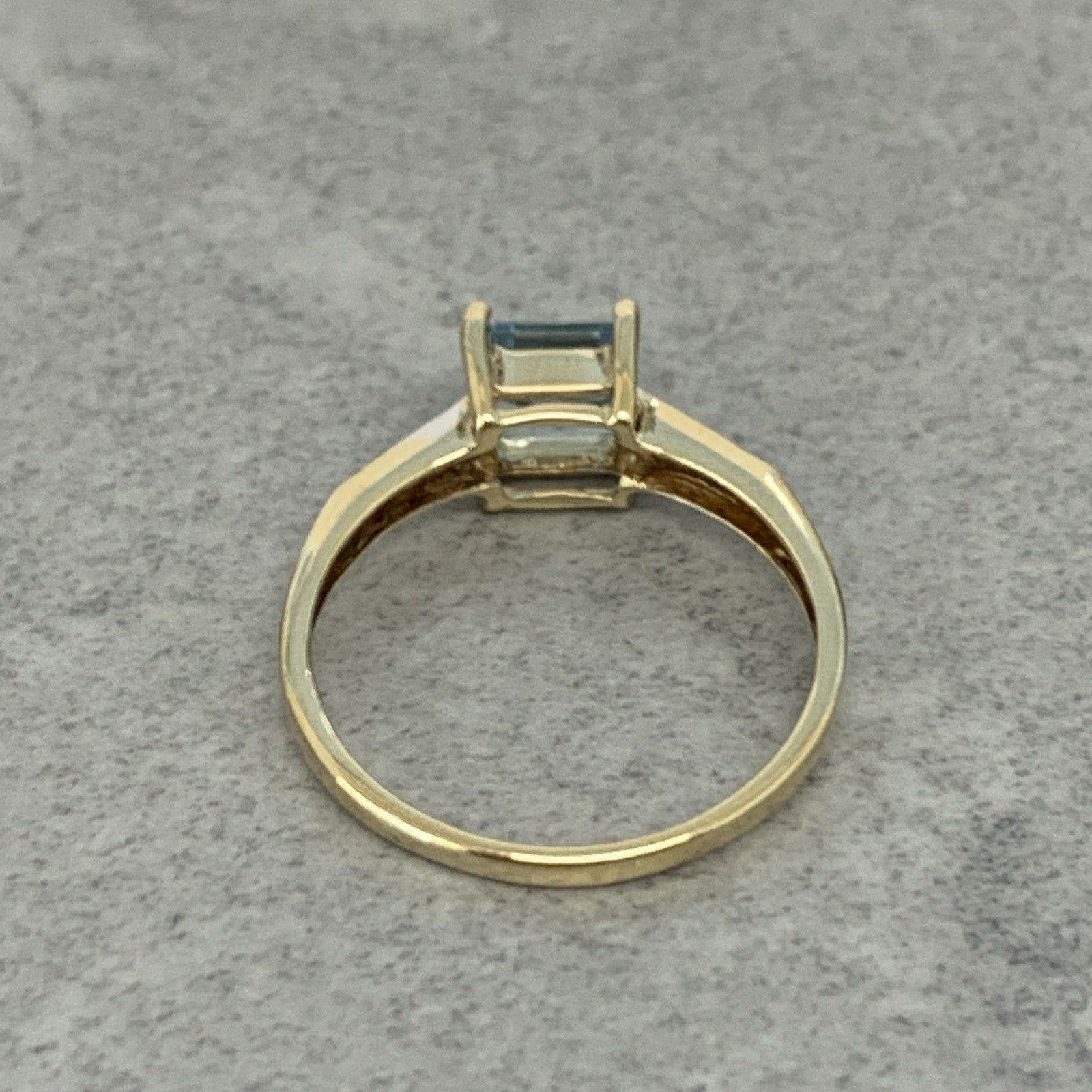 9 ct Gold Blue Topaz Princess Cut Diamond Ring 9k 375 Yellow Gold - Size O 1/2