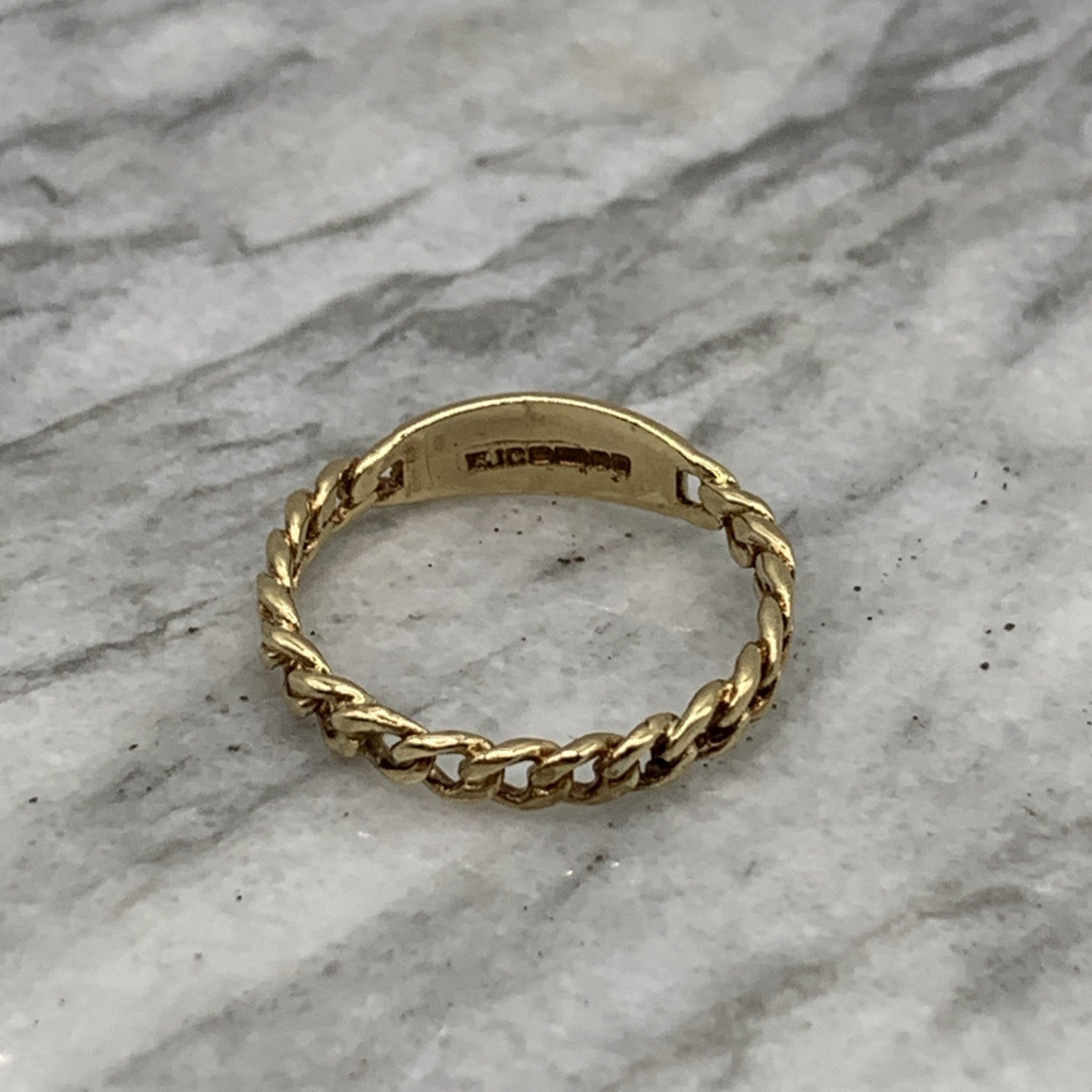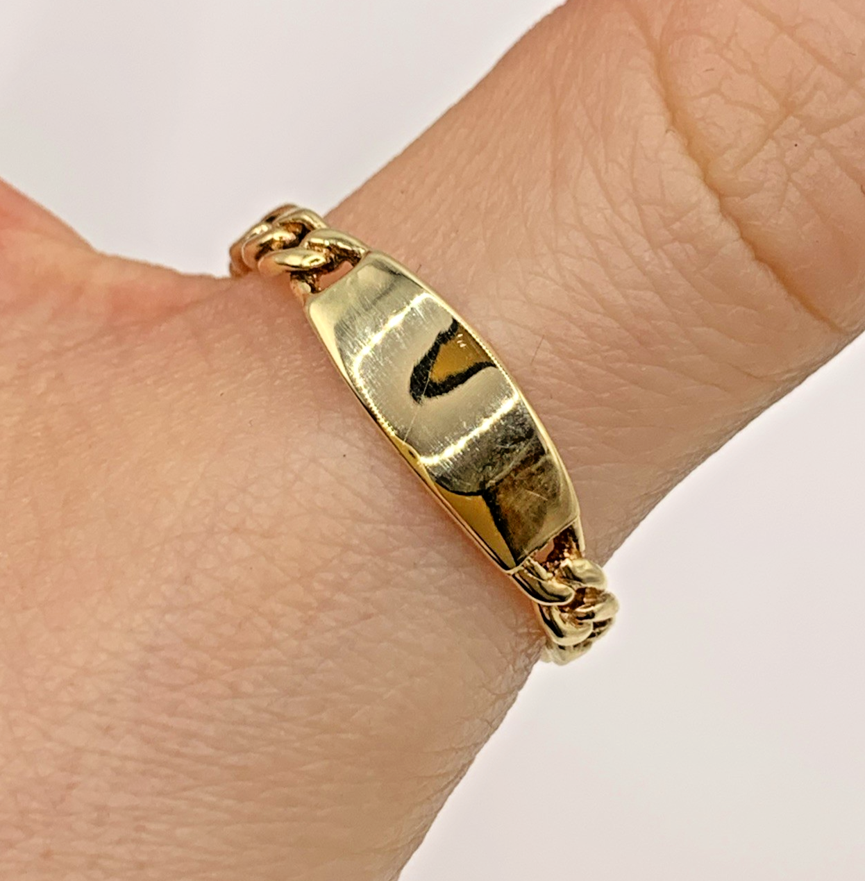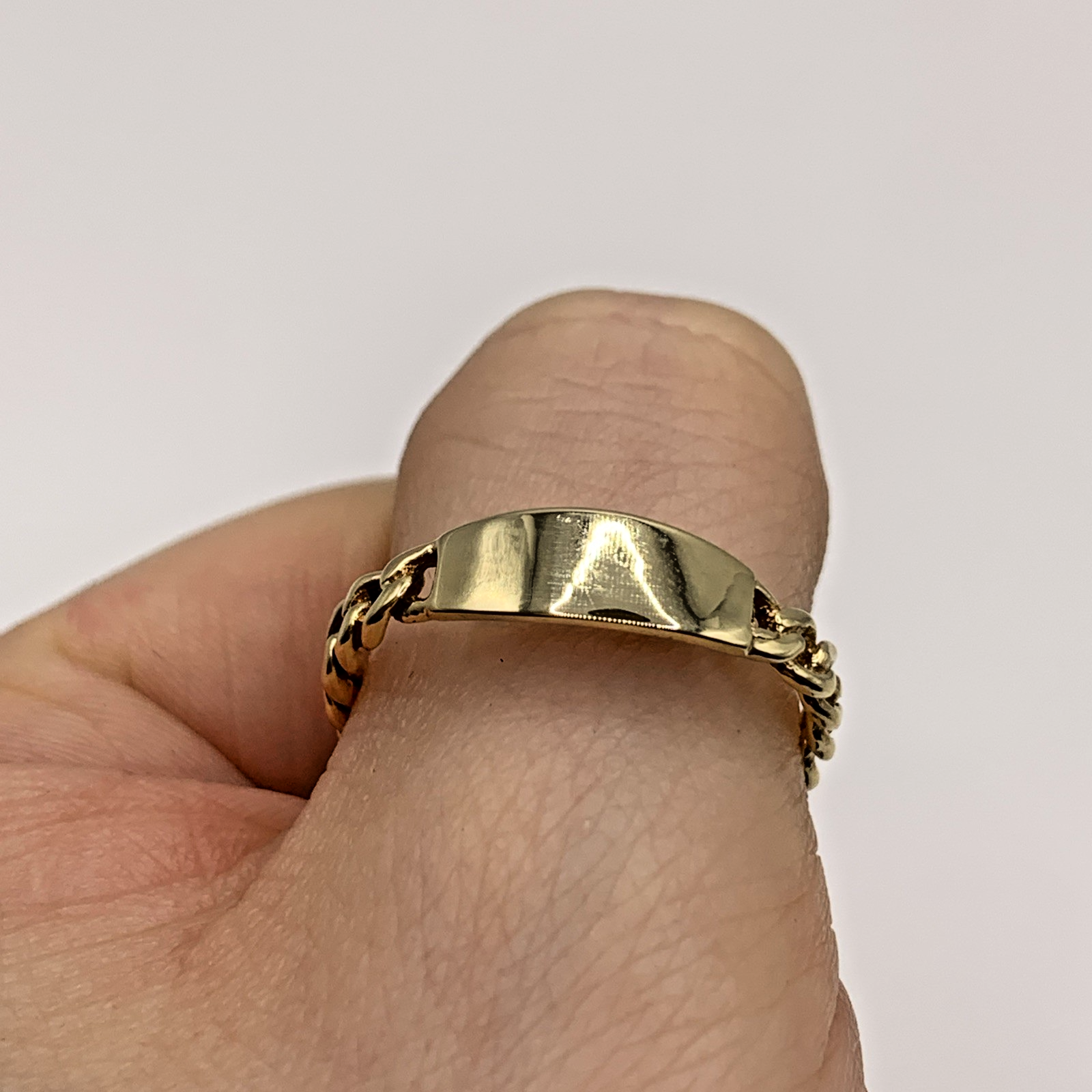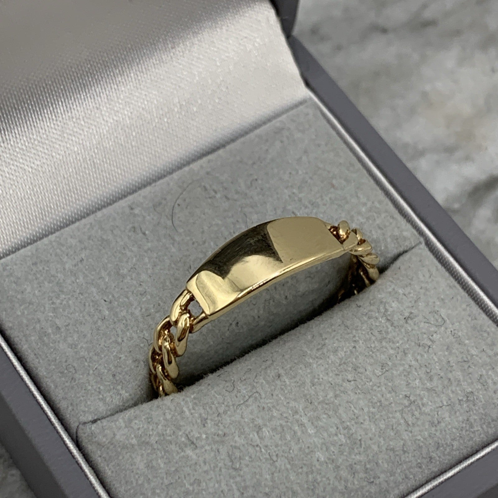 9 ct Gold Curb Chain Style ID Signet Band Ring 375 Yellow Gold - Size W