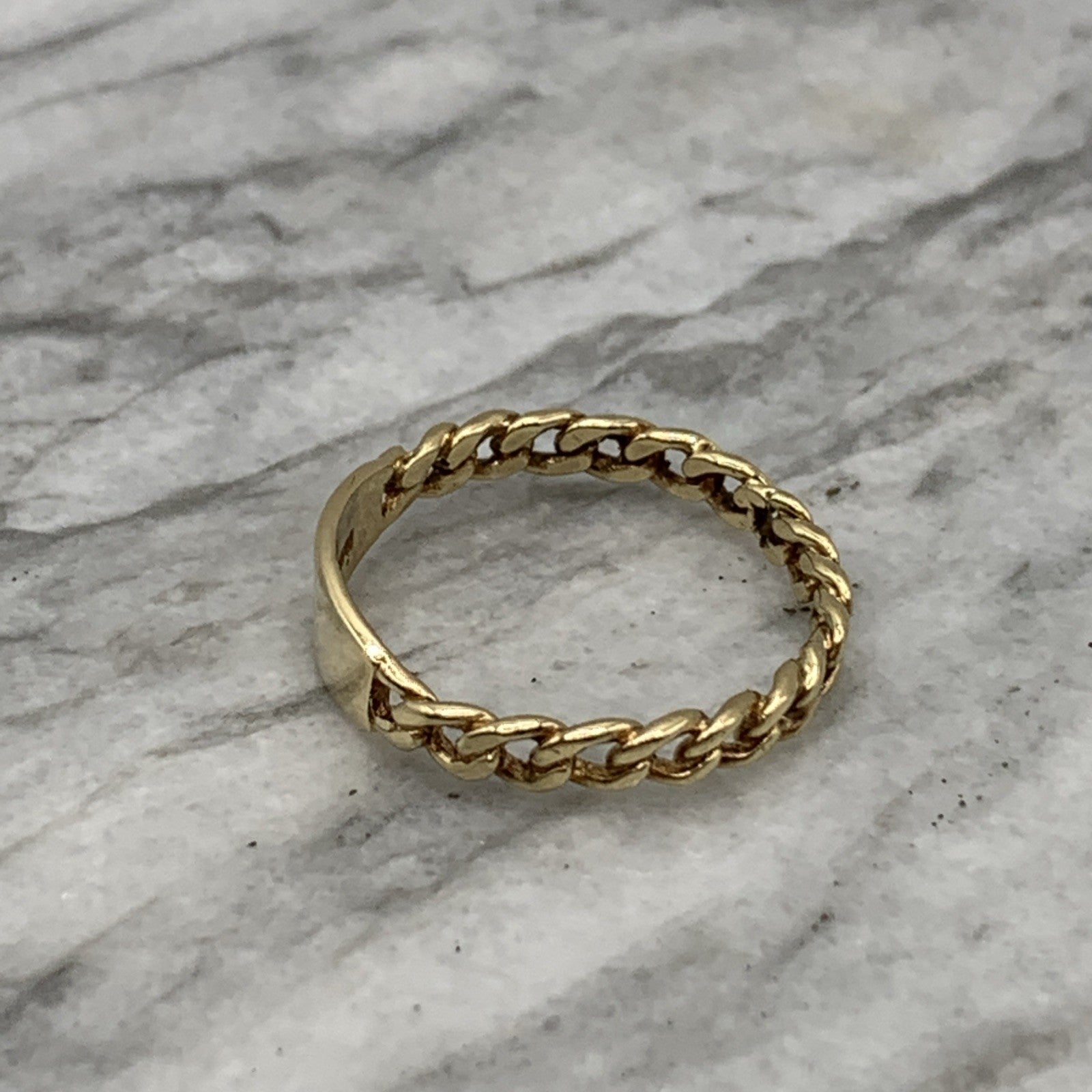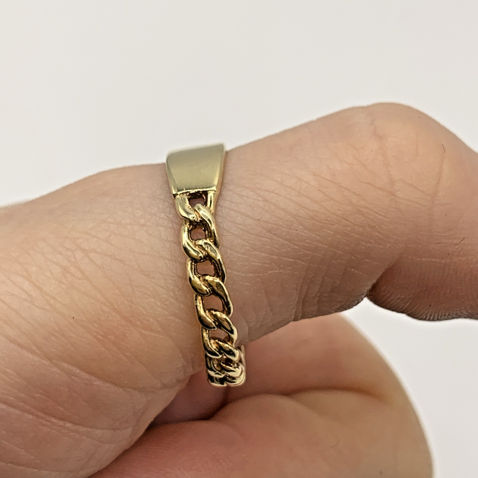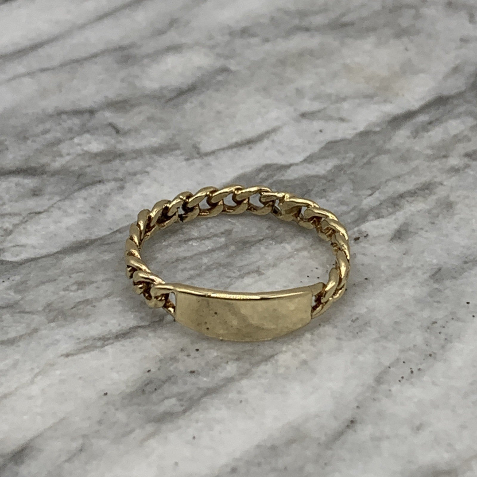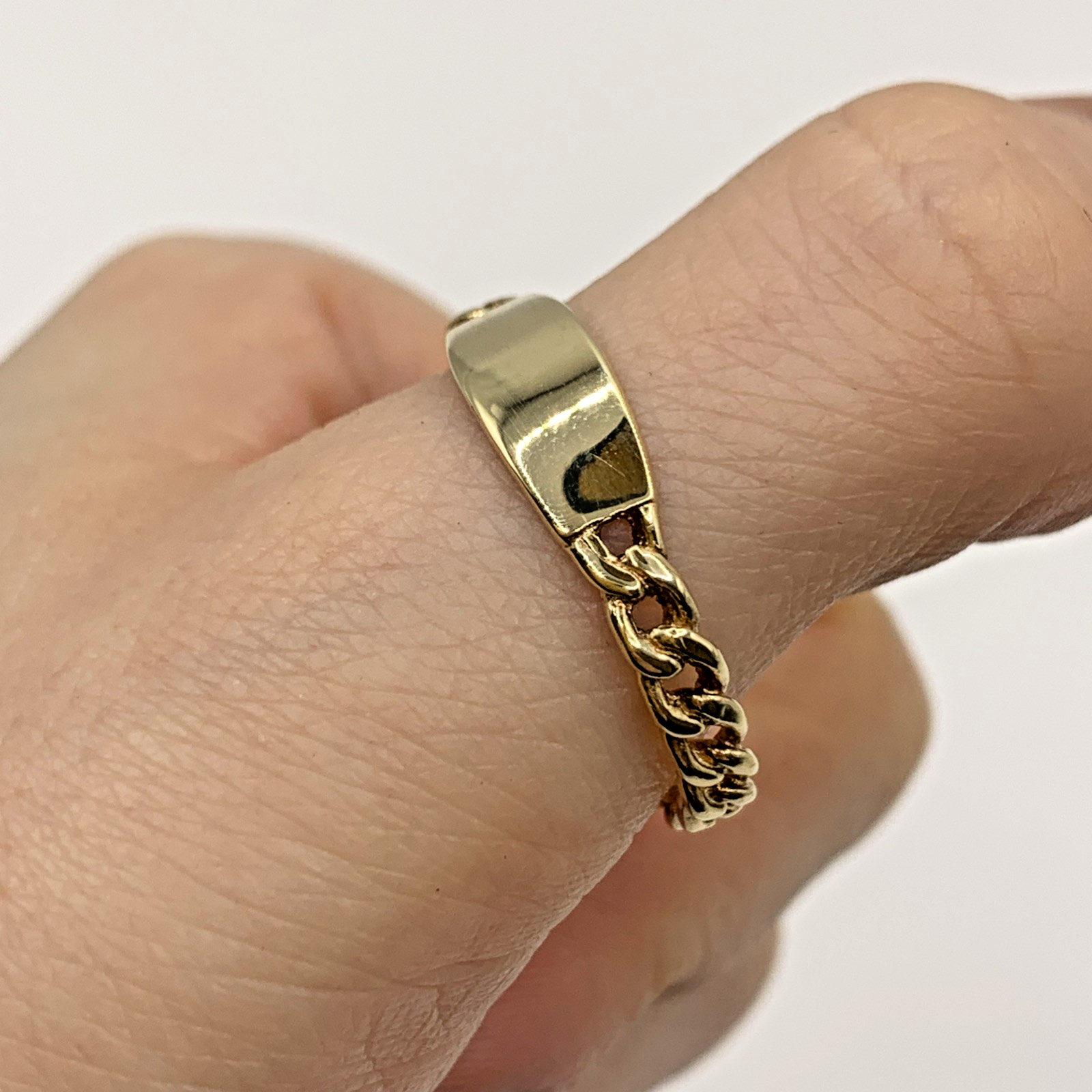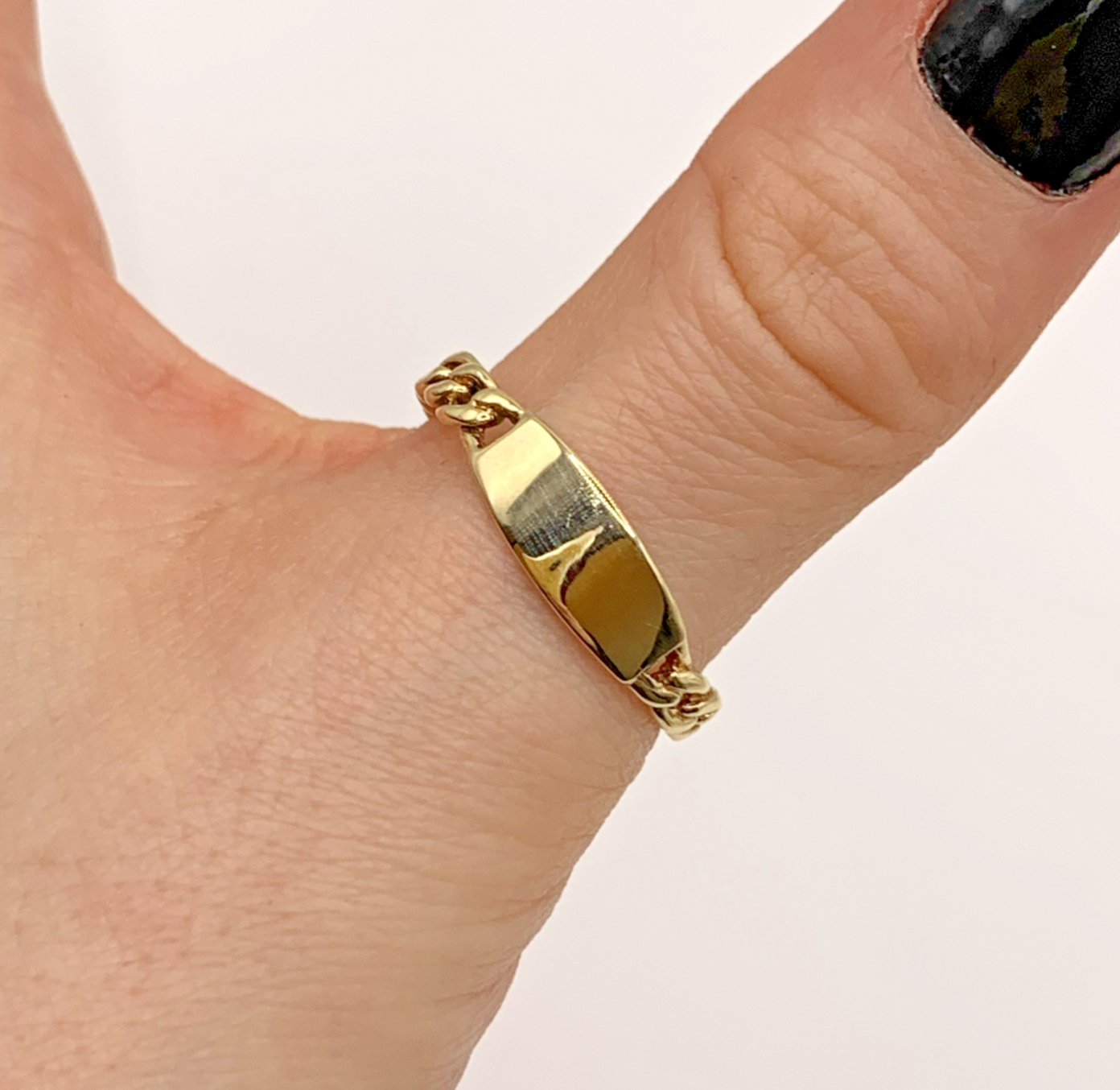 9 ct Gold Curb Chain Style ID Signet Band Ring 375 Yellow Gold - Size W