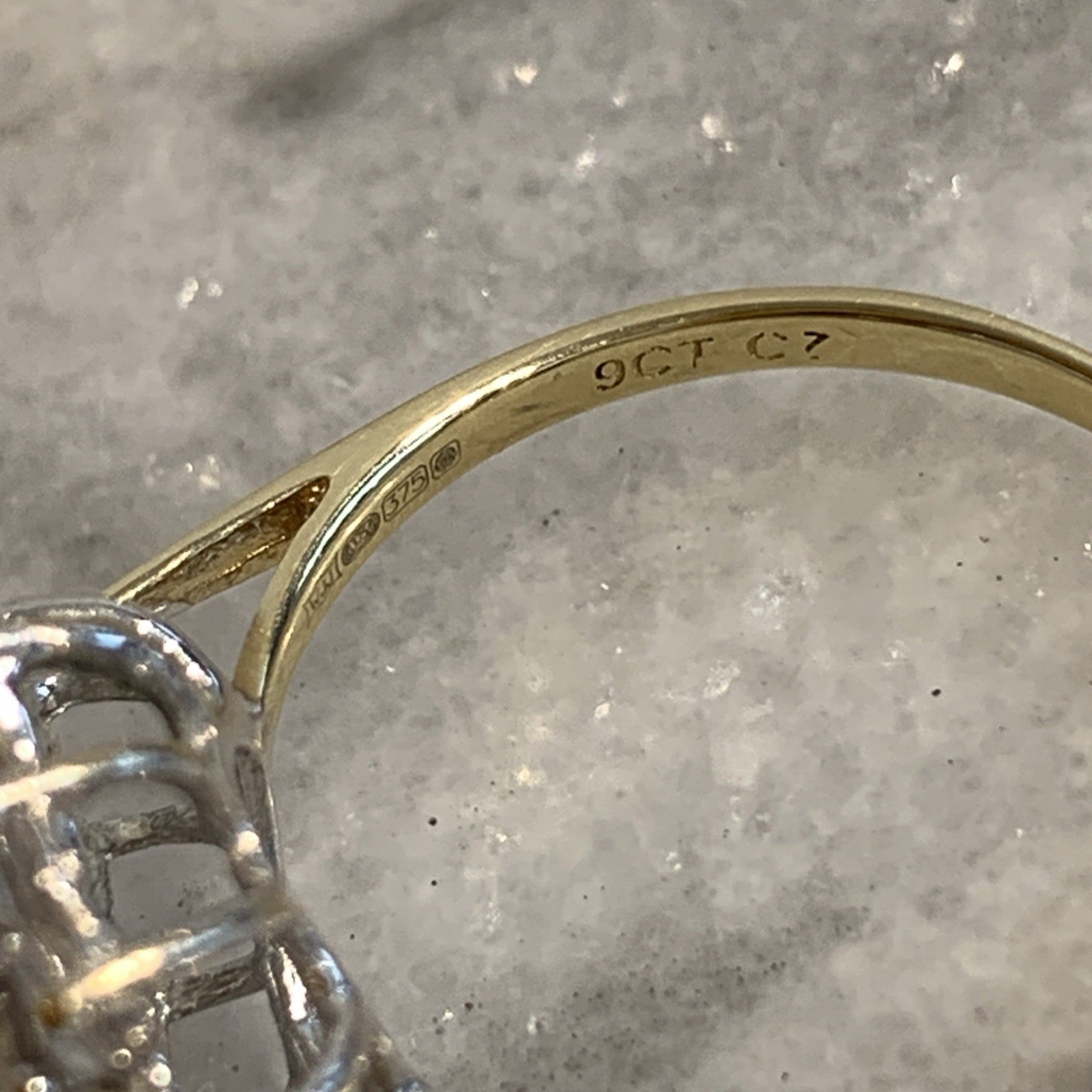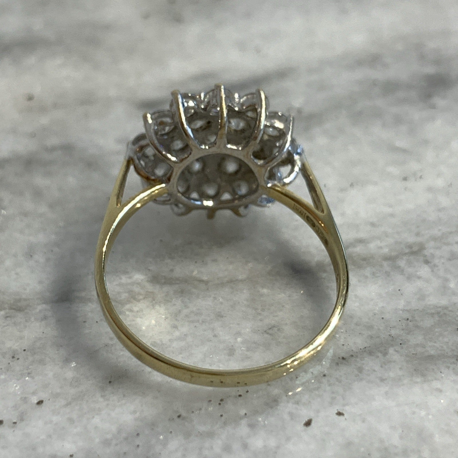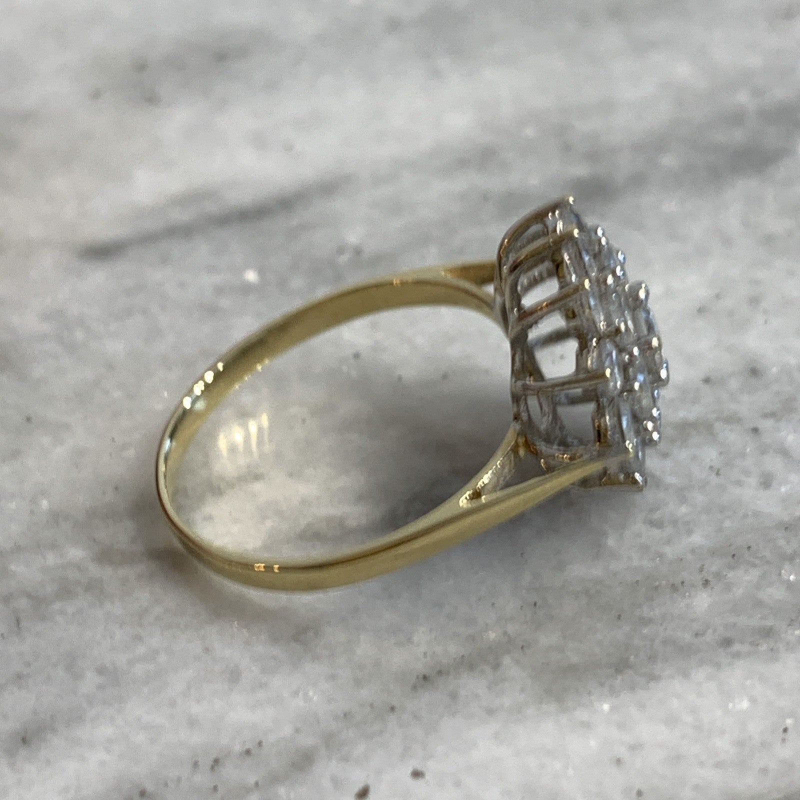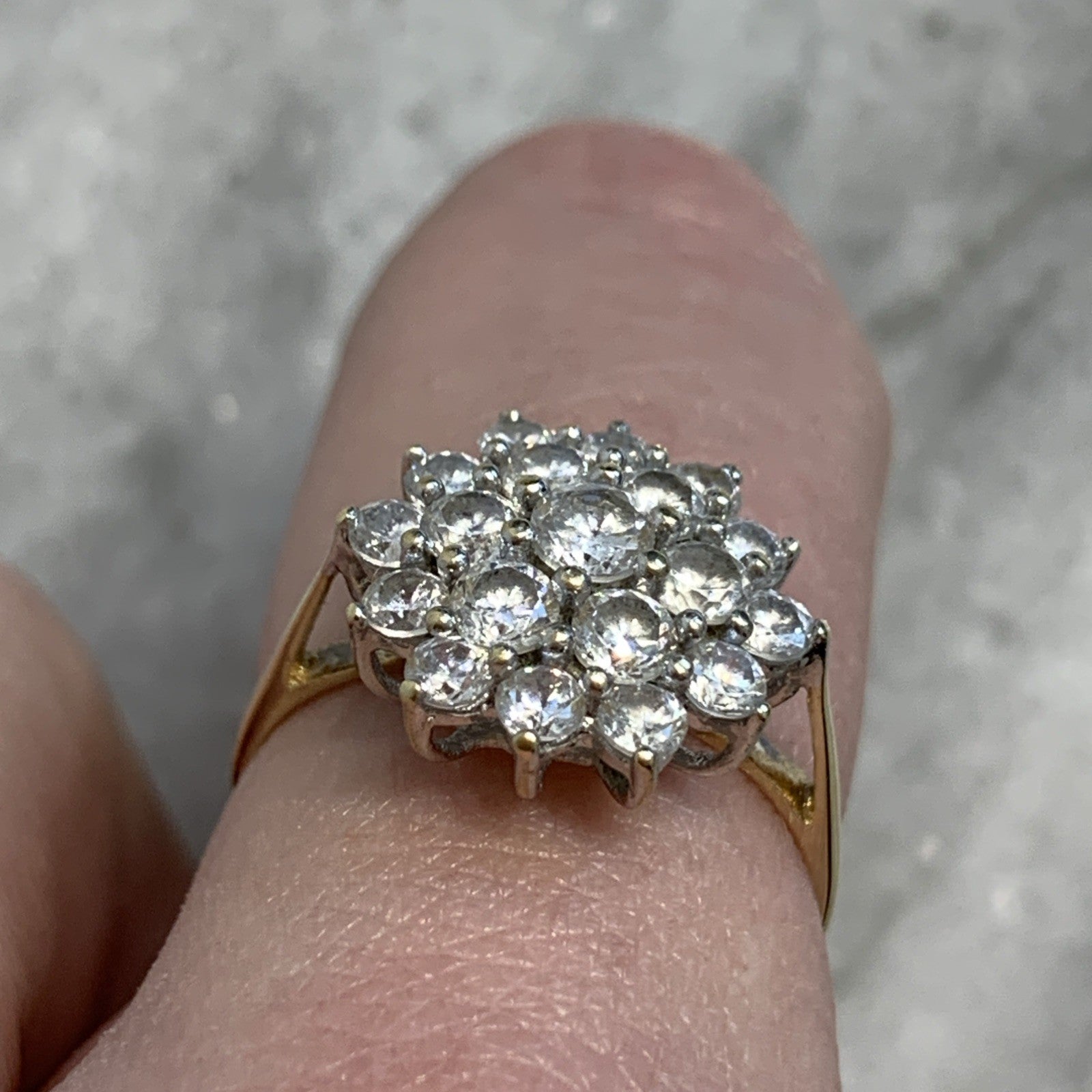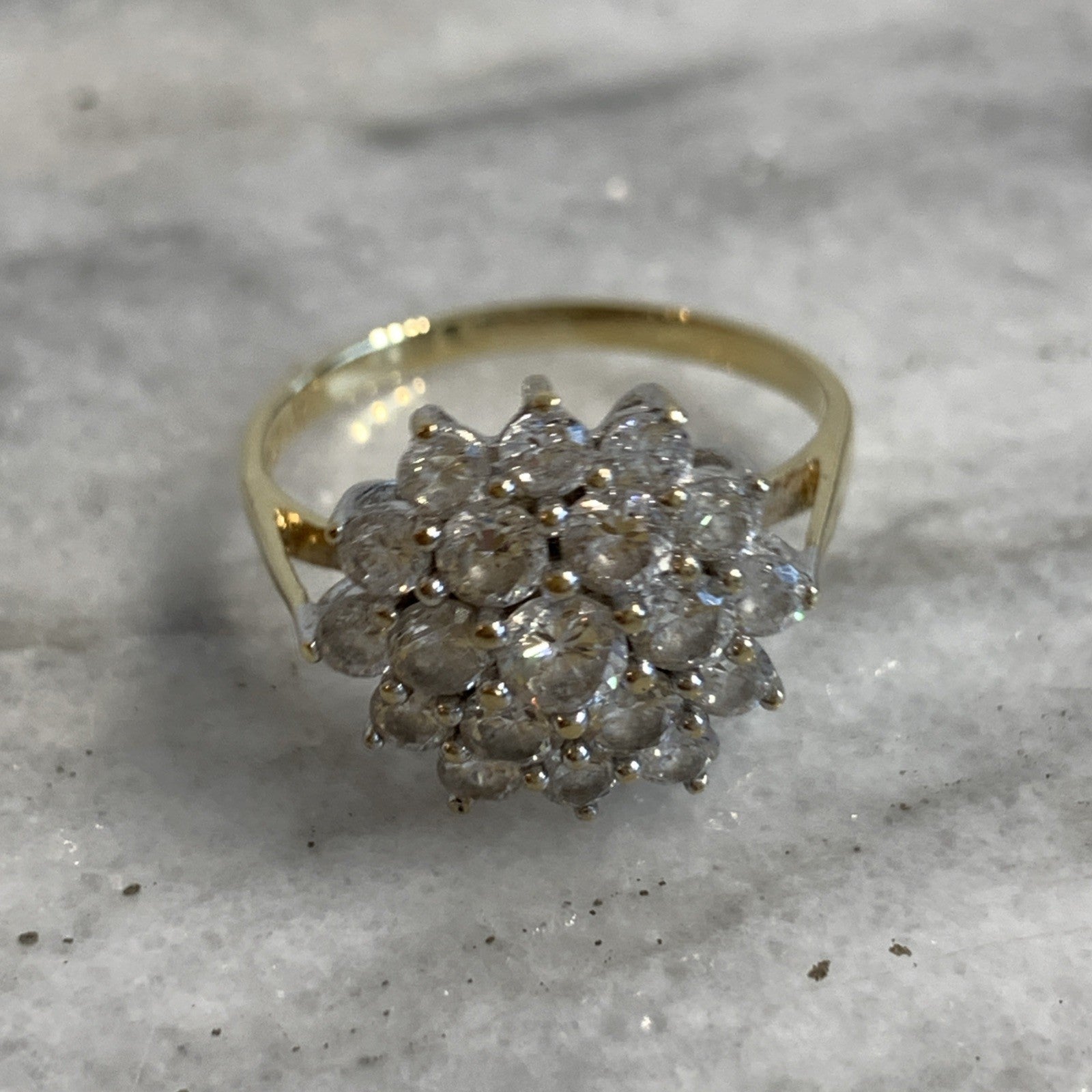 9 ct Gold CZ Cluster Ring 375 9k Yellow Gold - Size N 1/2