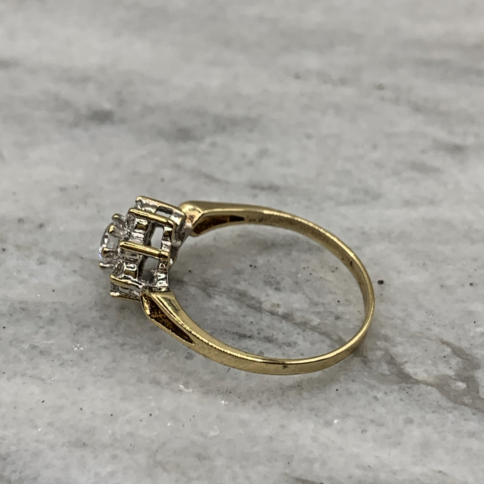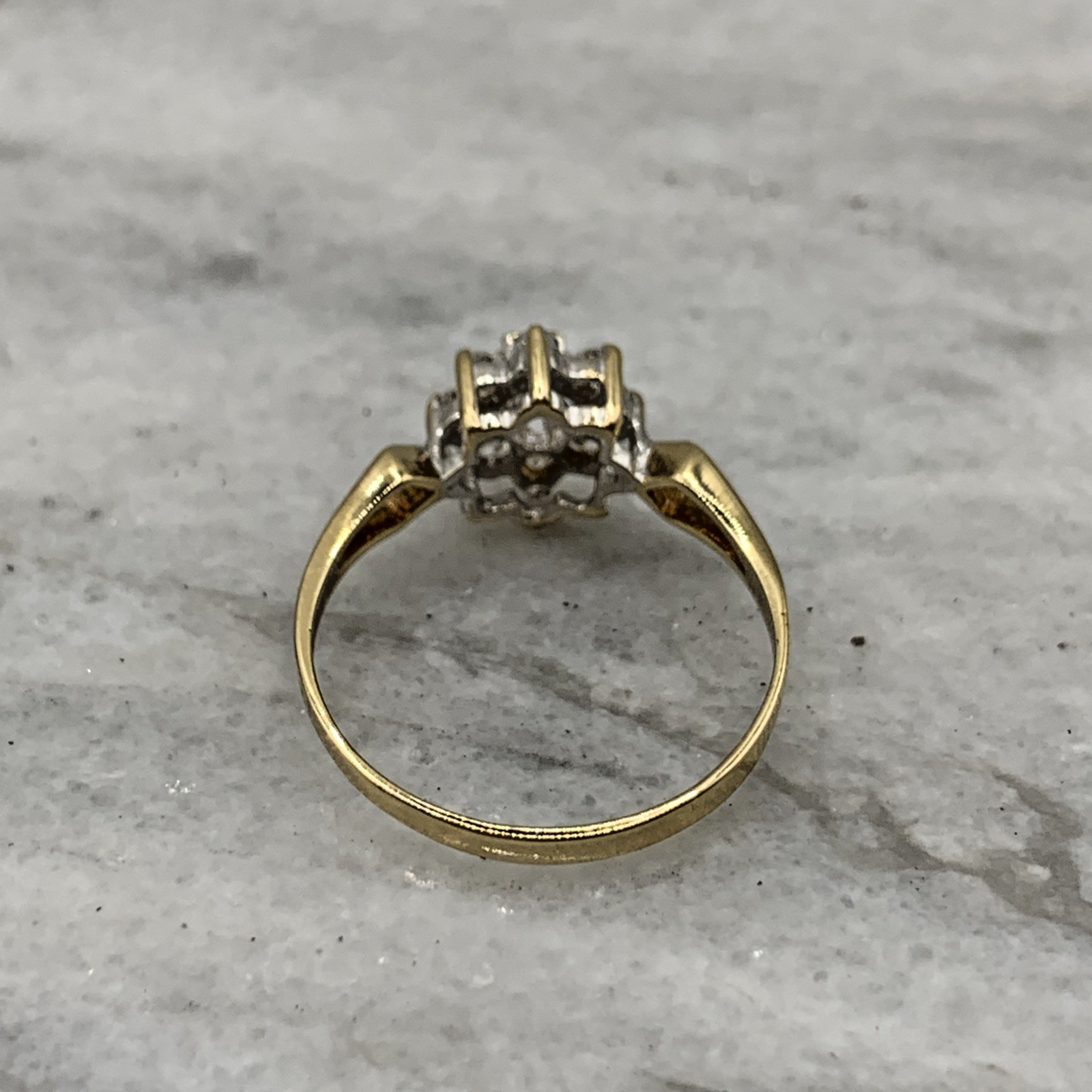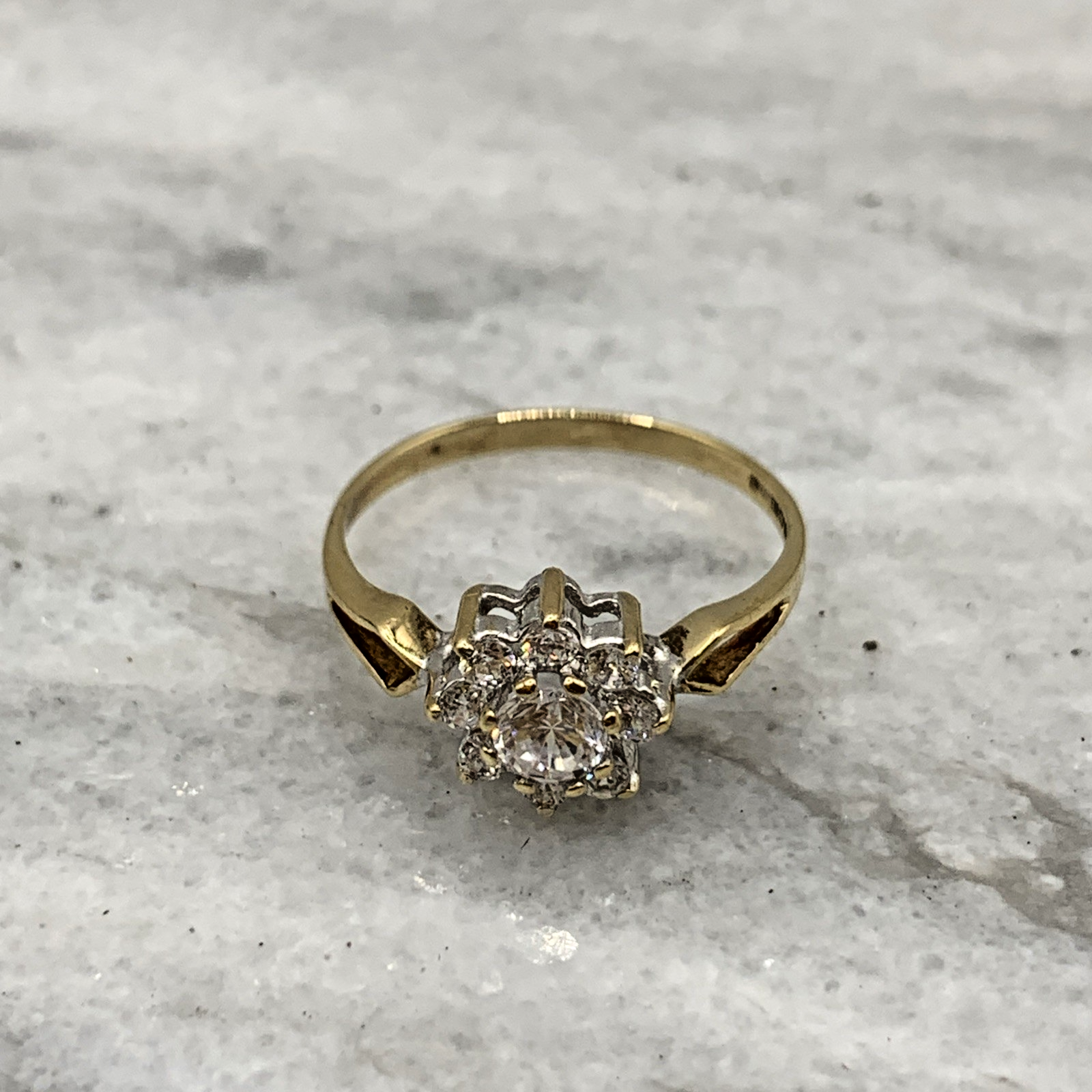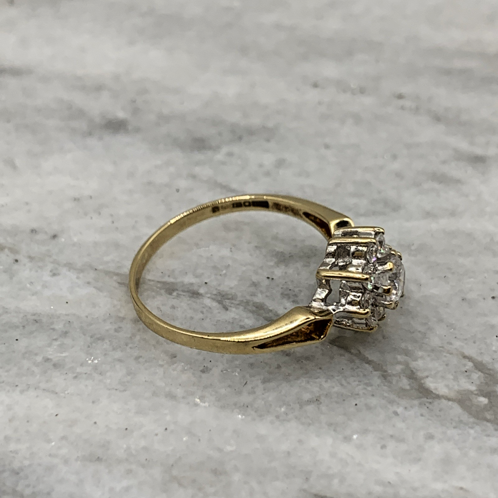 9 ct Gold CZ Daisy Flower Cluster Ring 9k 9ct Yellow Gold - Size O