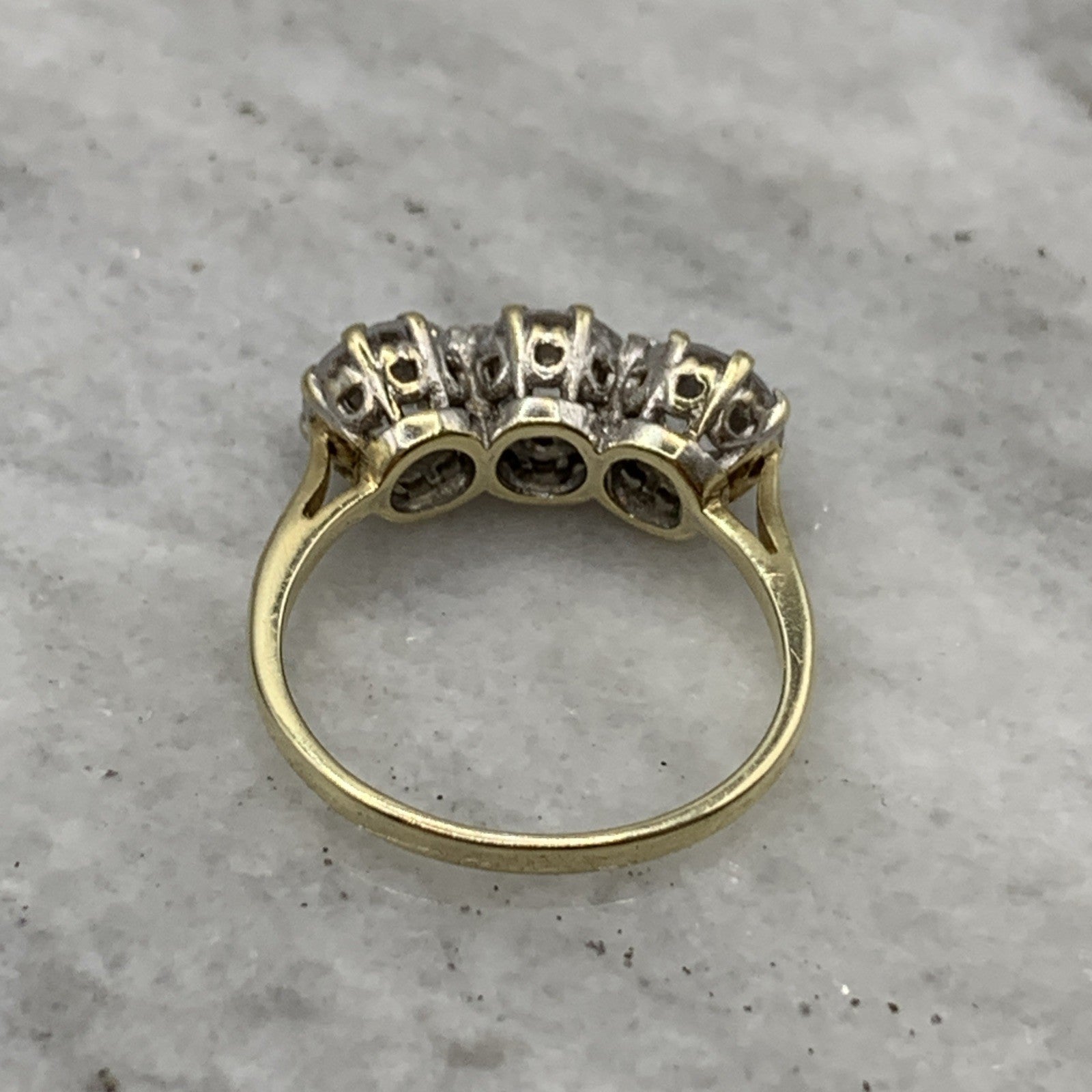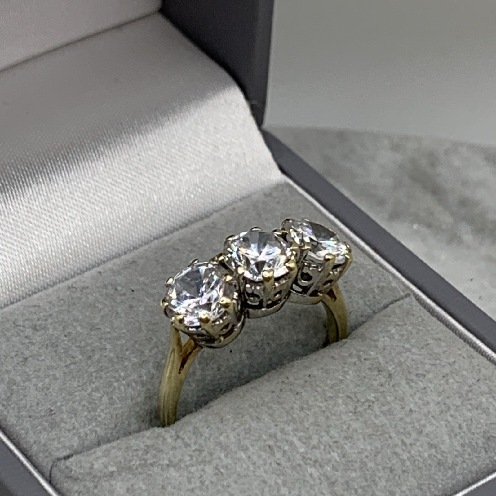 9 ct Gold CZ Round Cut Trilogy Three Stone Ring 375 Yellow Gold - Size L