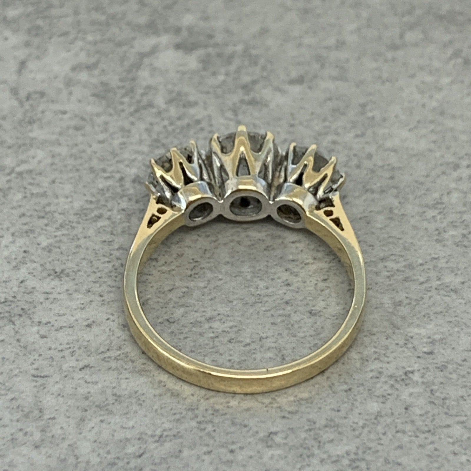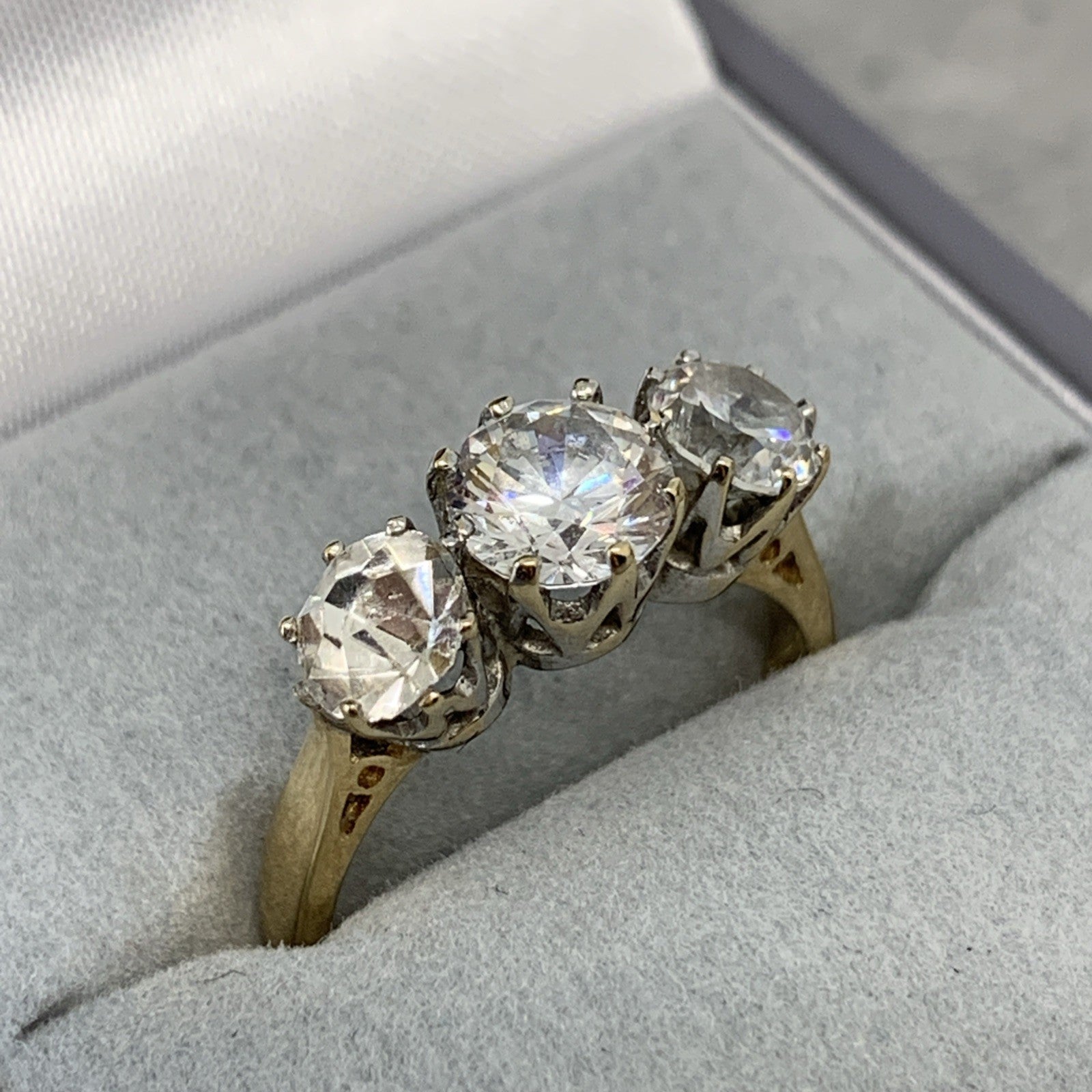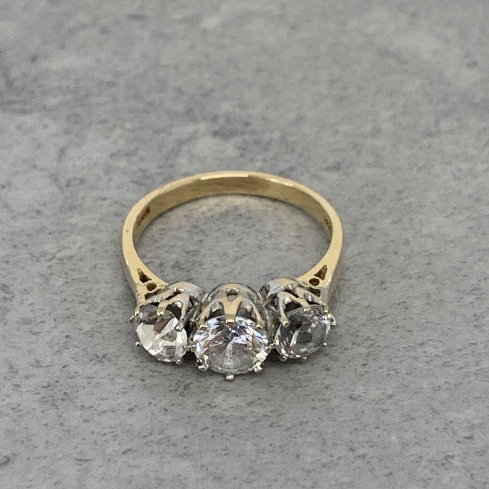 9 ct Gold CZ Trilogy Round Cut Ring 9k 375 Yellow Gold - Size L 1/2