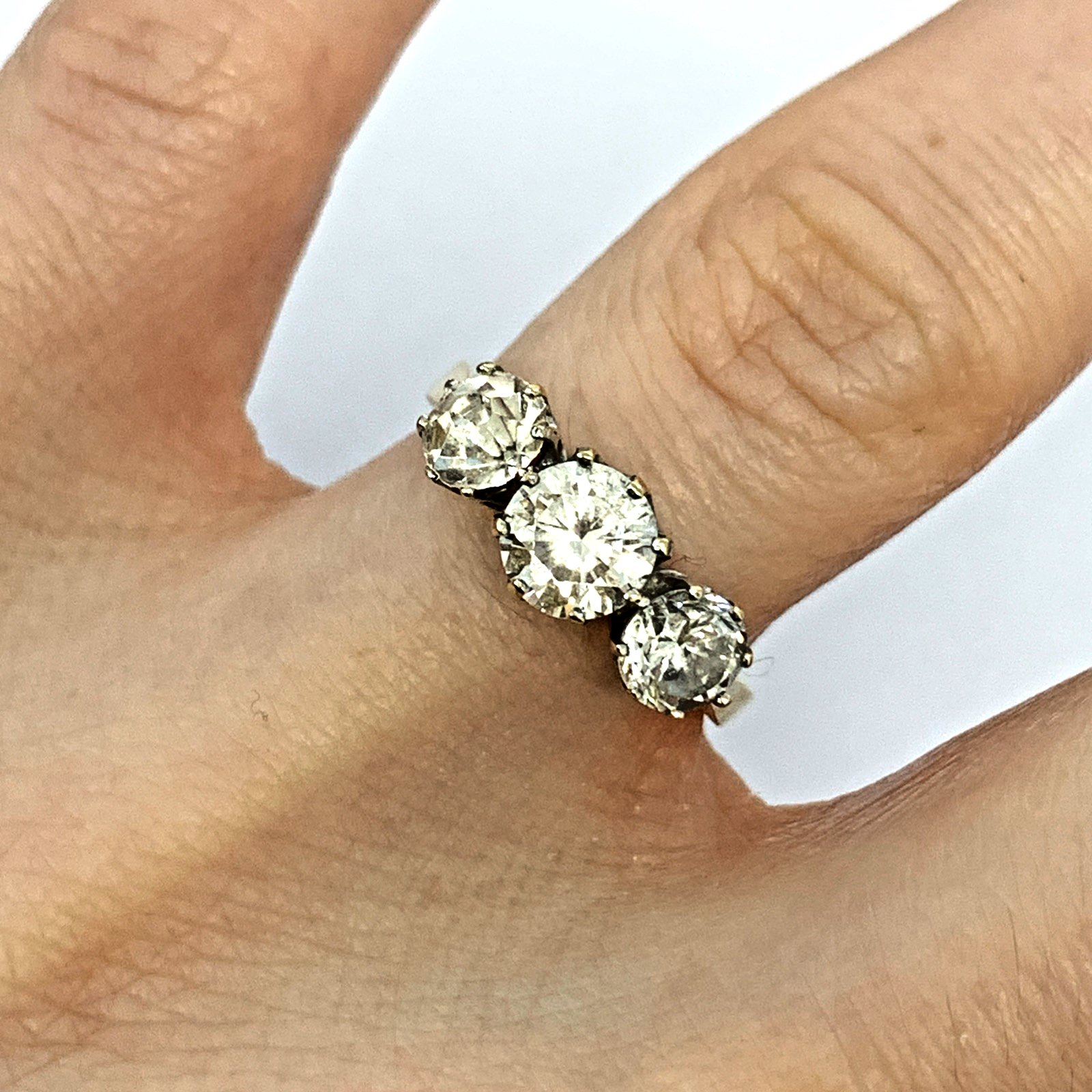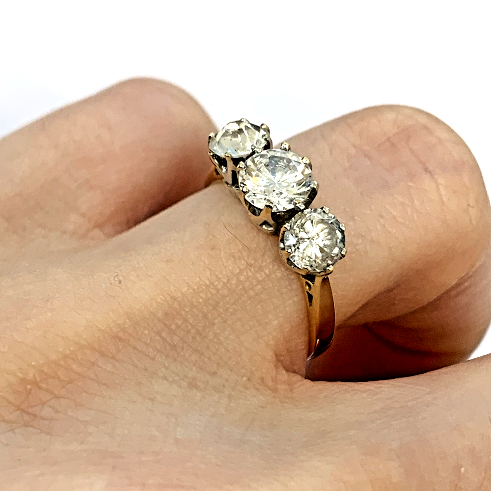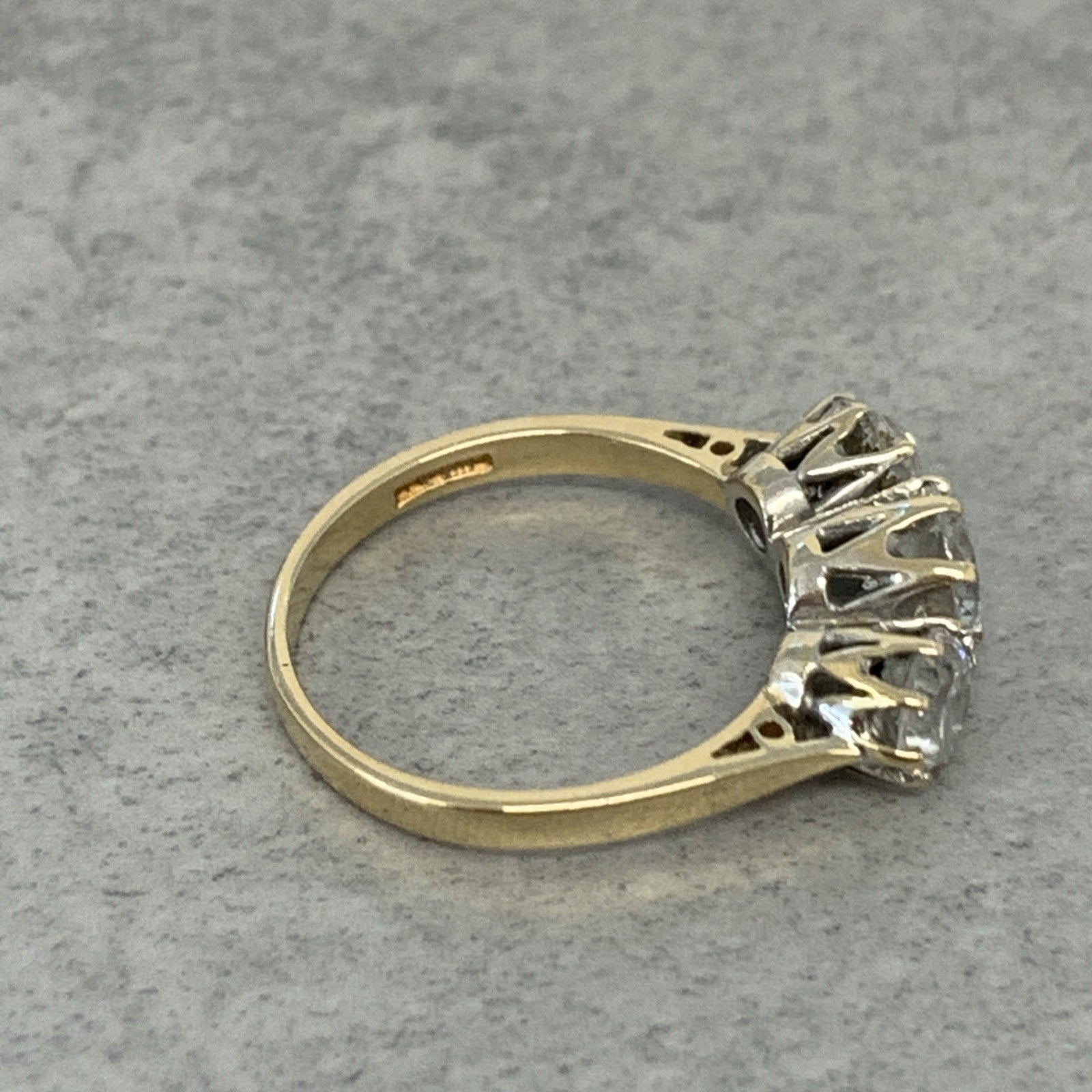 9 ct Gold CZ Trilogy Round Cut Ring 9k 375 Yellow Gold - Size L 1/2