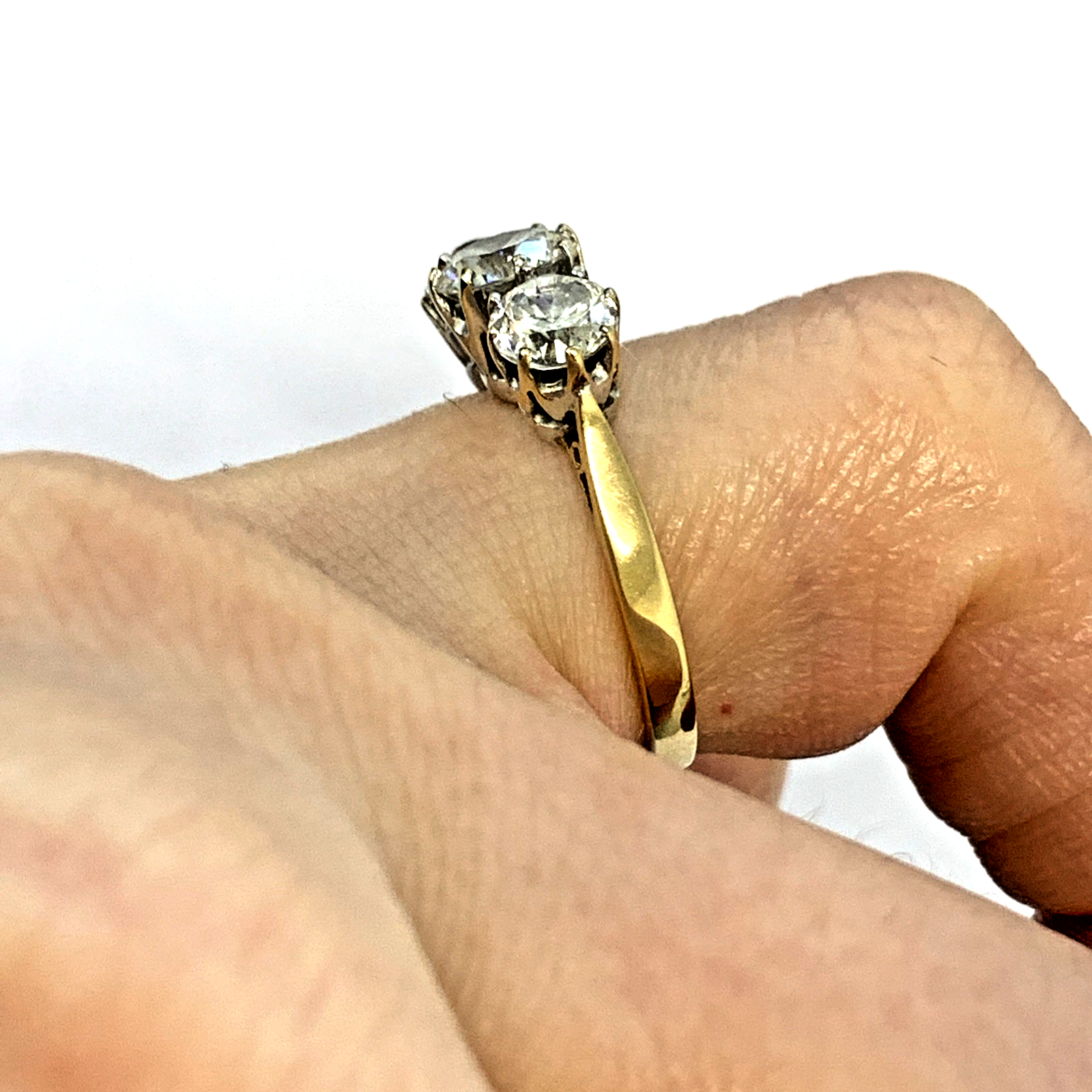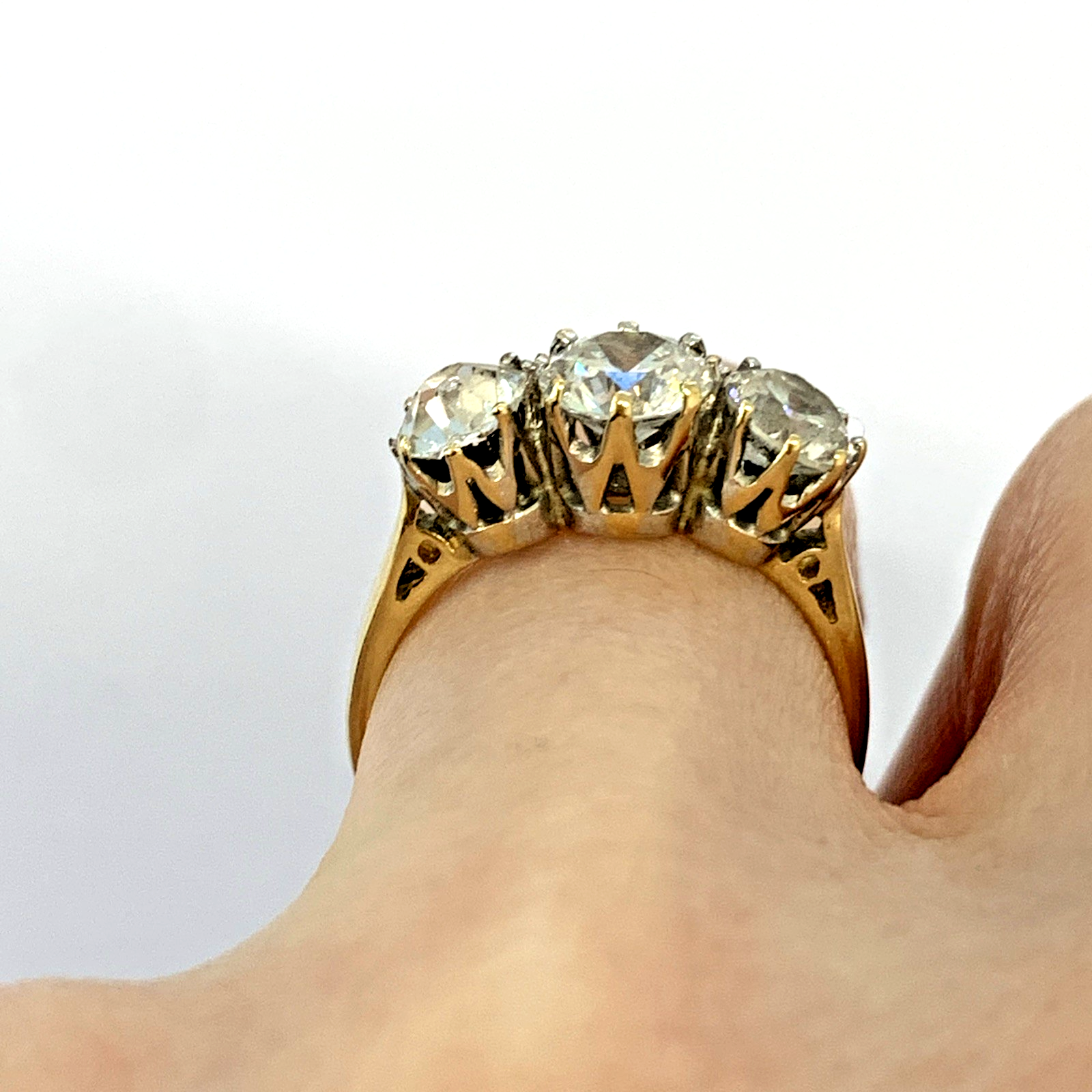 A gorgeous gold ring featuring a trilogy of round cut cubic zirconia.