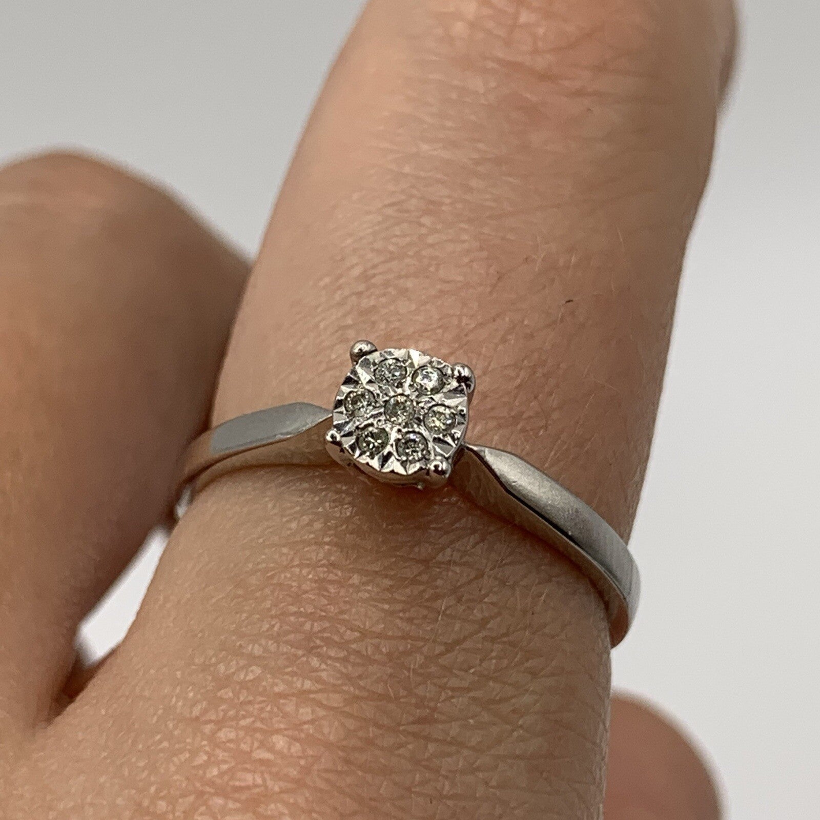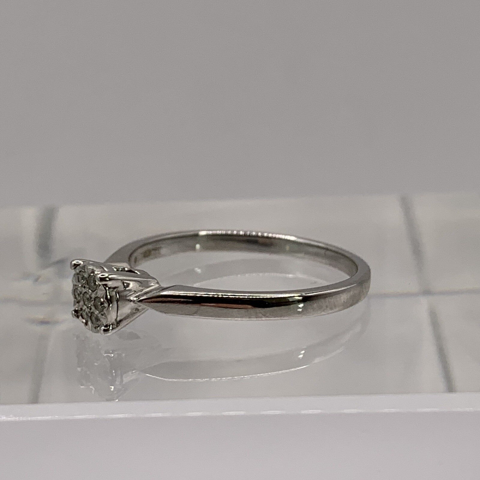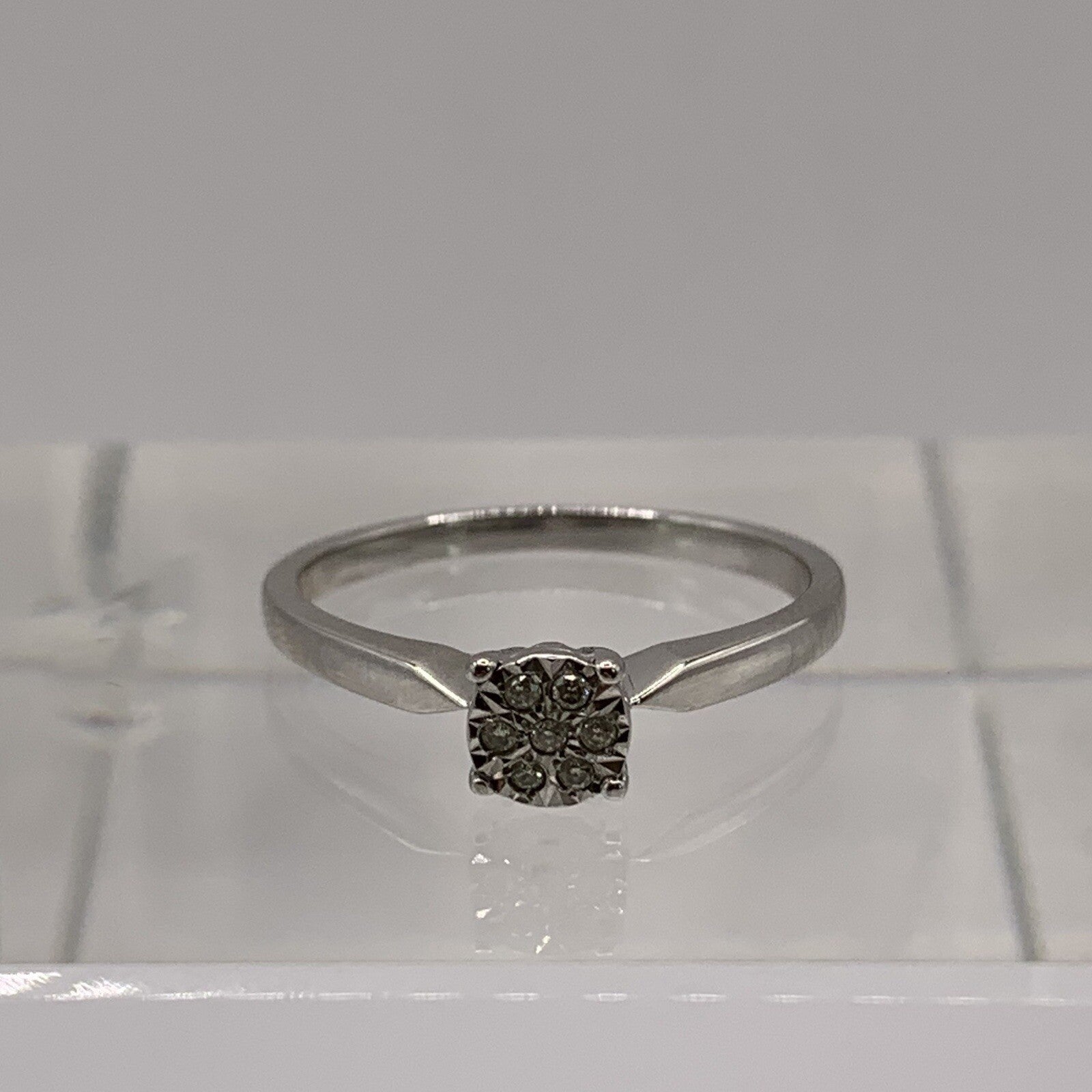 9 ct Gold Diamond .05ct Invisible Cluster Ring 9ct 9k White Gold - Size P