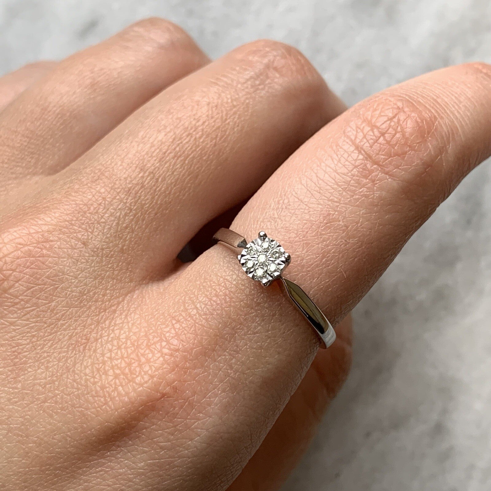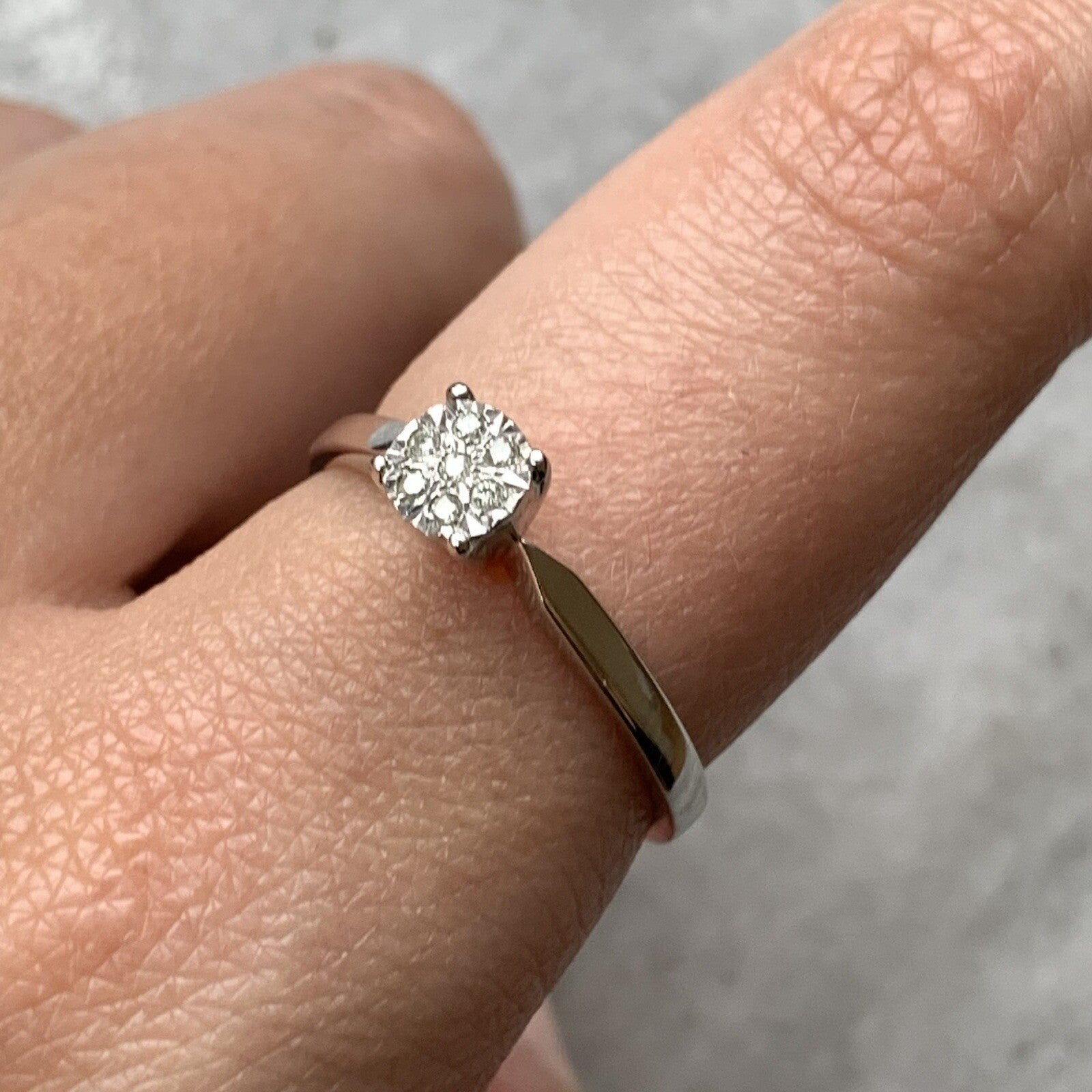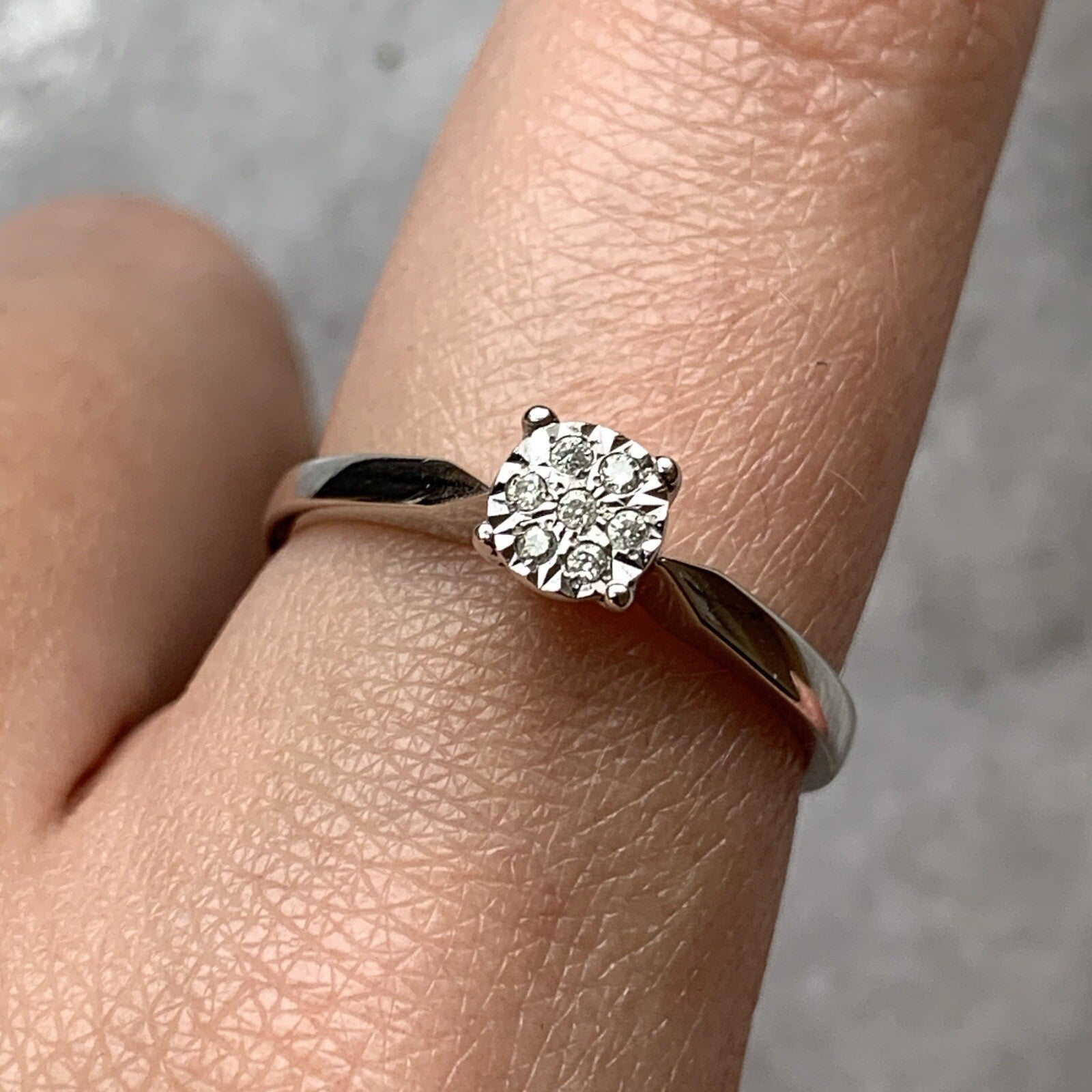 9 ct Gold Diamond .05ct Invisible Cluster Ring 9ct 9k White Gold - Size P
