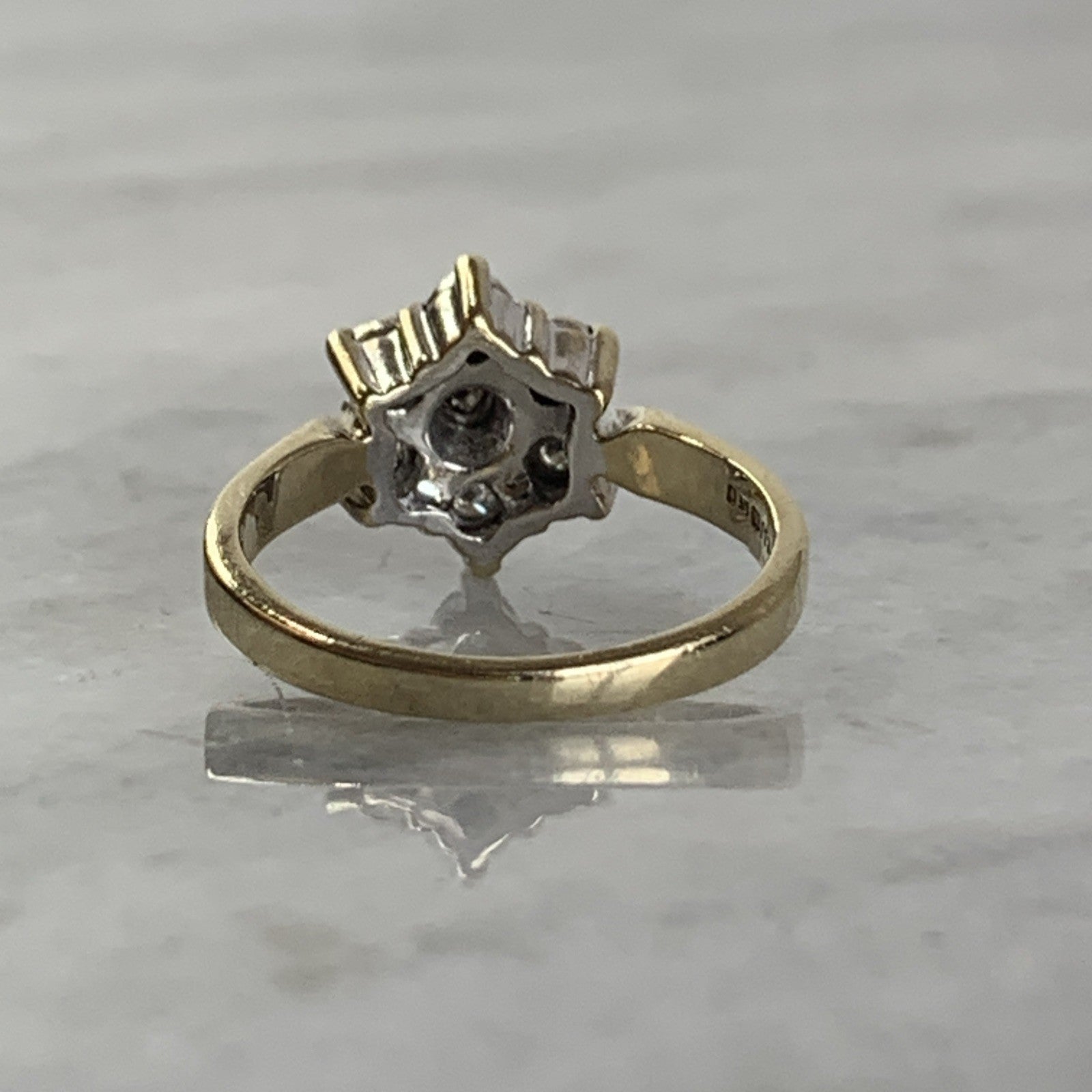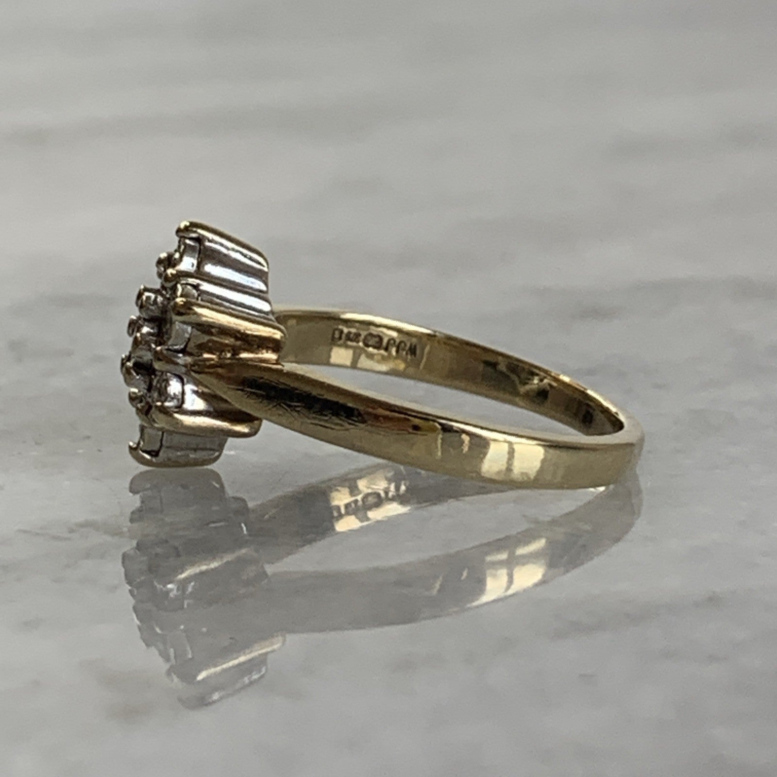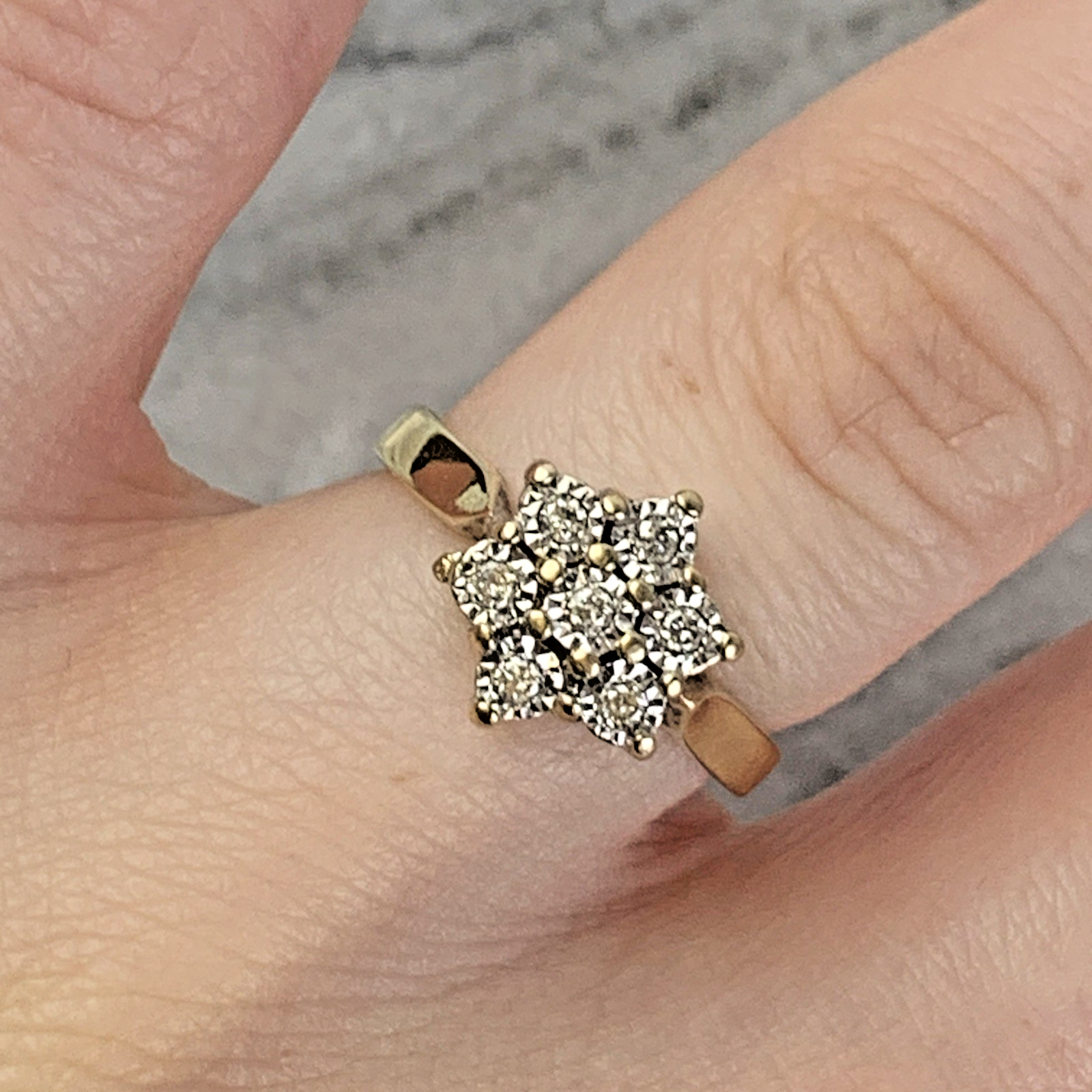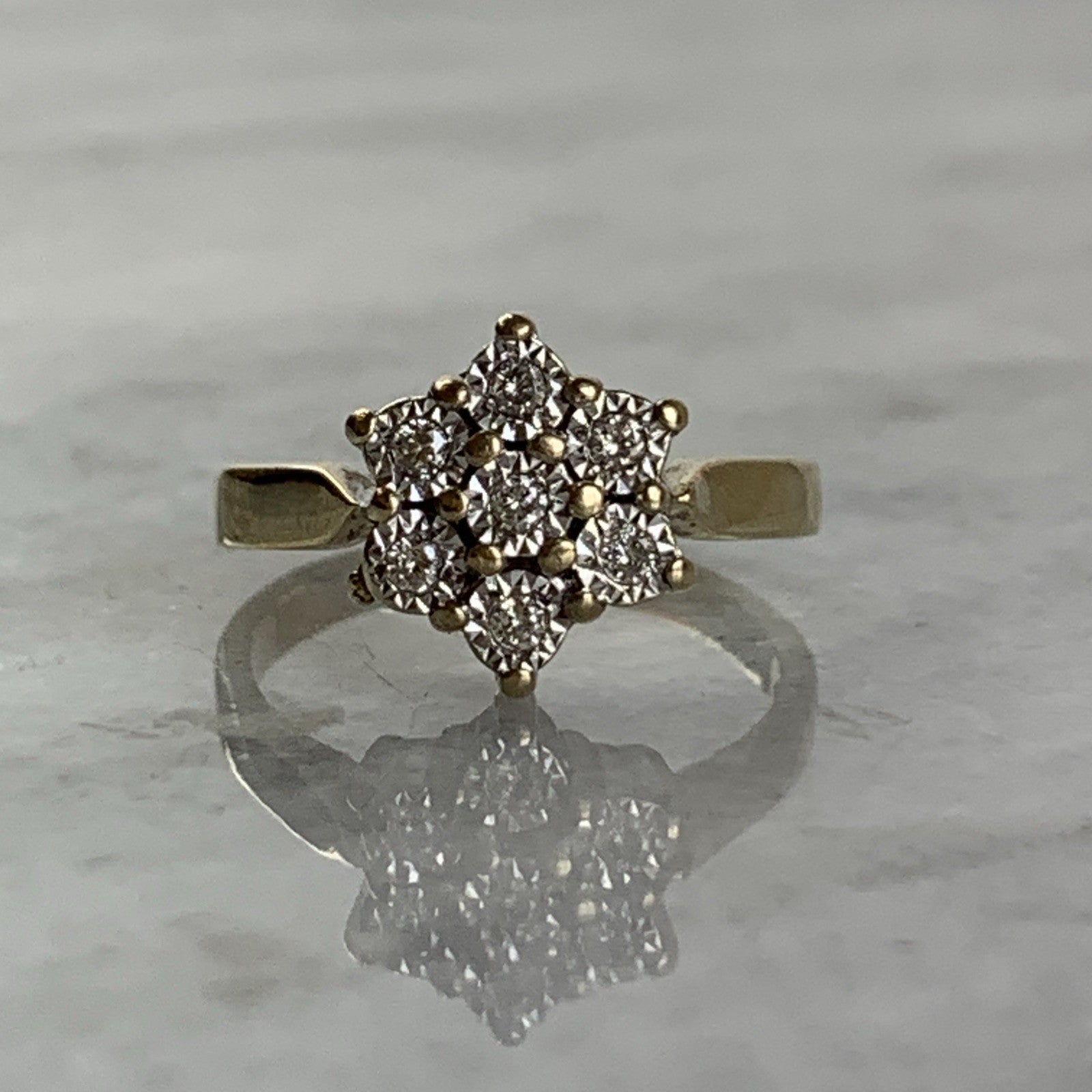 9 ct Gold Diamond .10ct Daisy Flower Ring 9ct 375 Yellow Gold - Size J 1/2