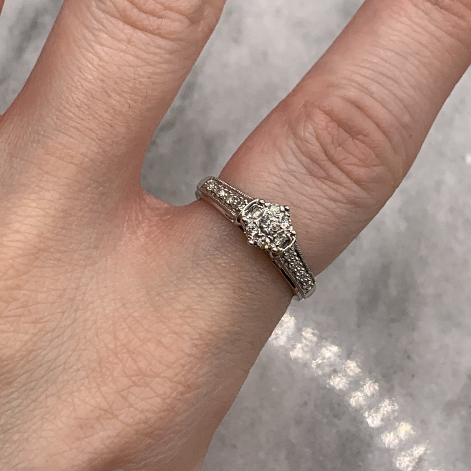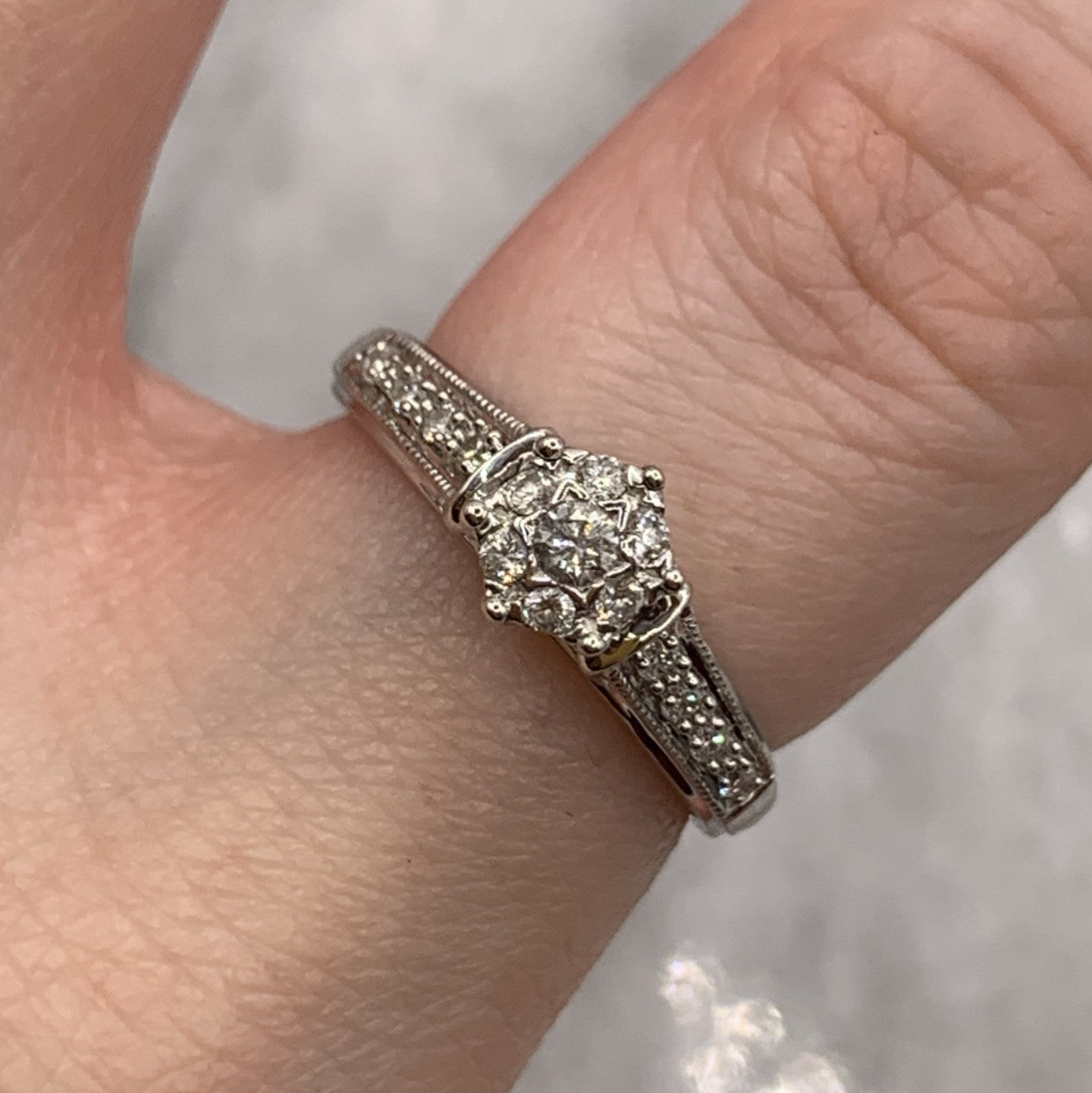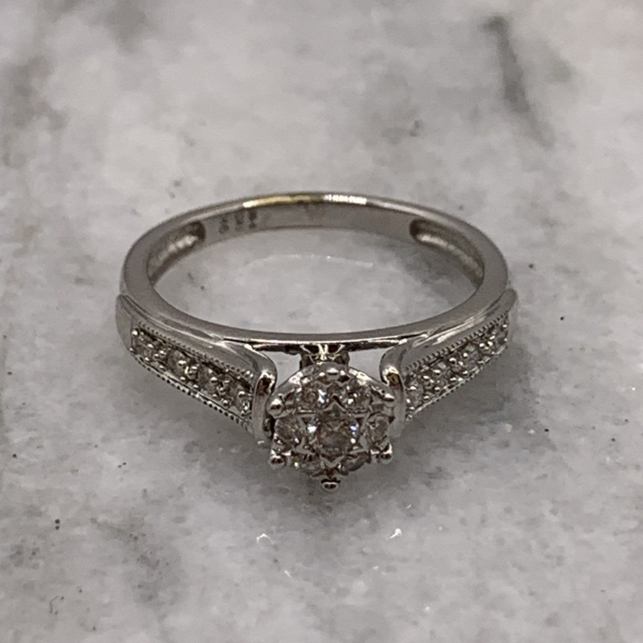 9 ct Gold Diamond .195ct Cluster Accent Ring 375 White Gold - Size L 1/2