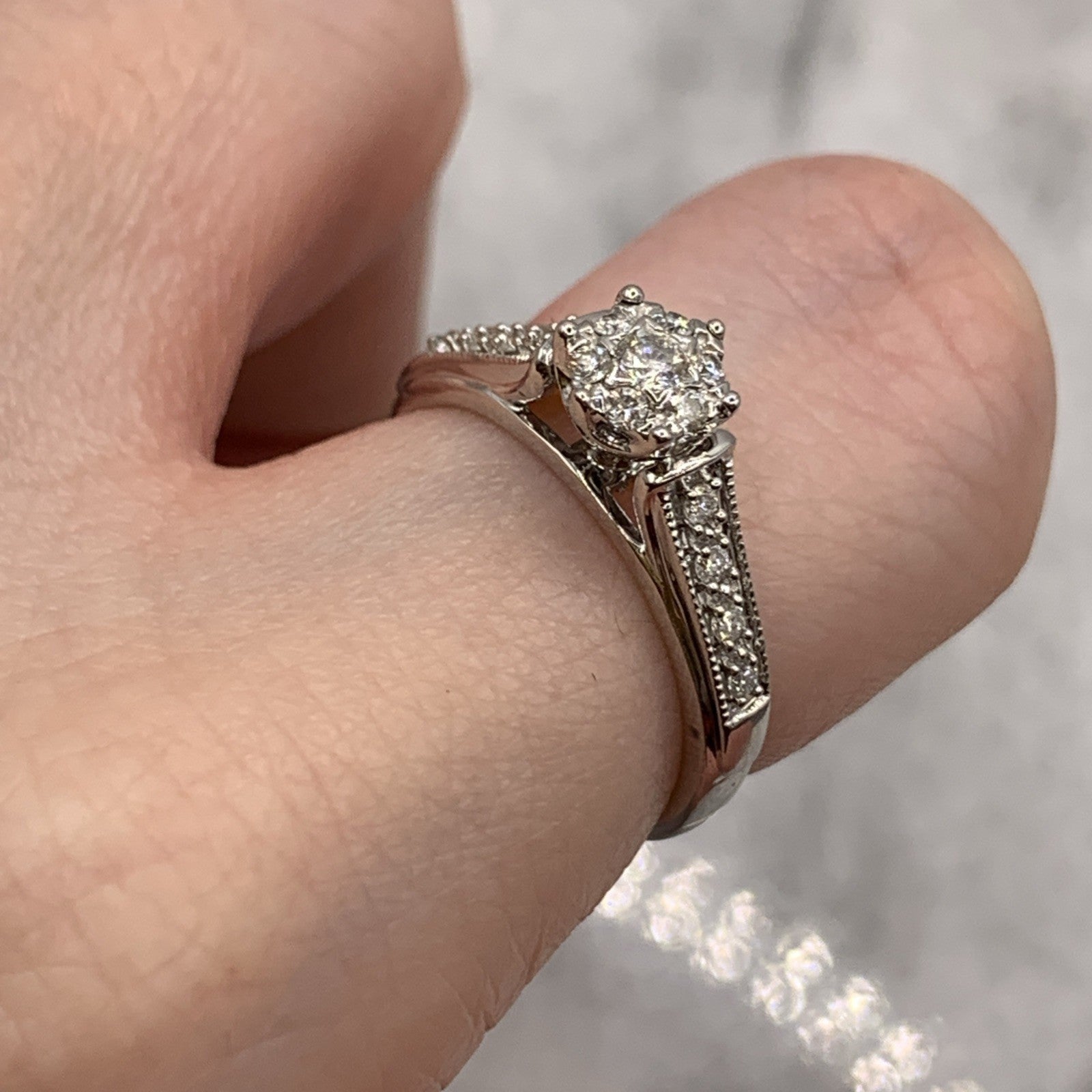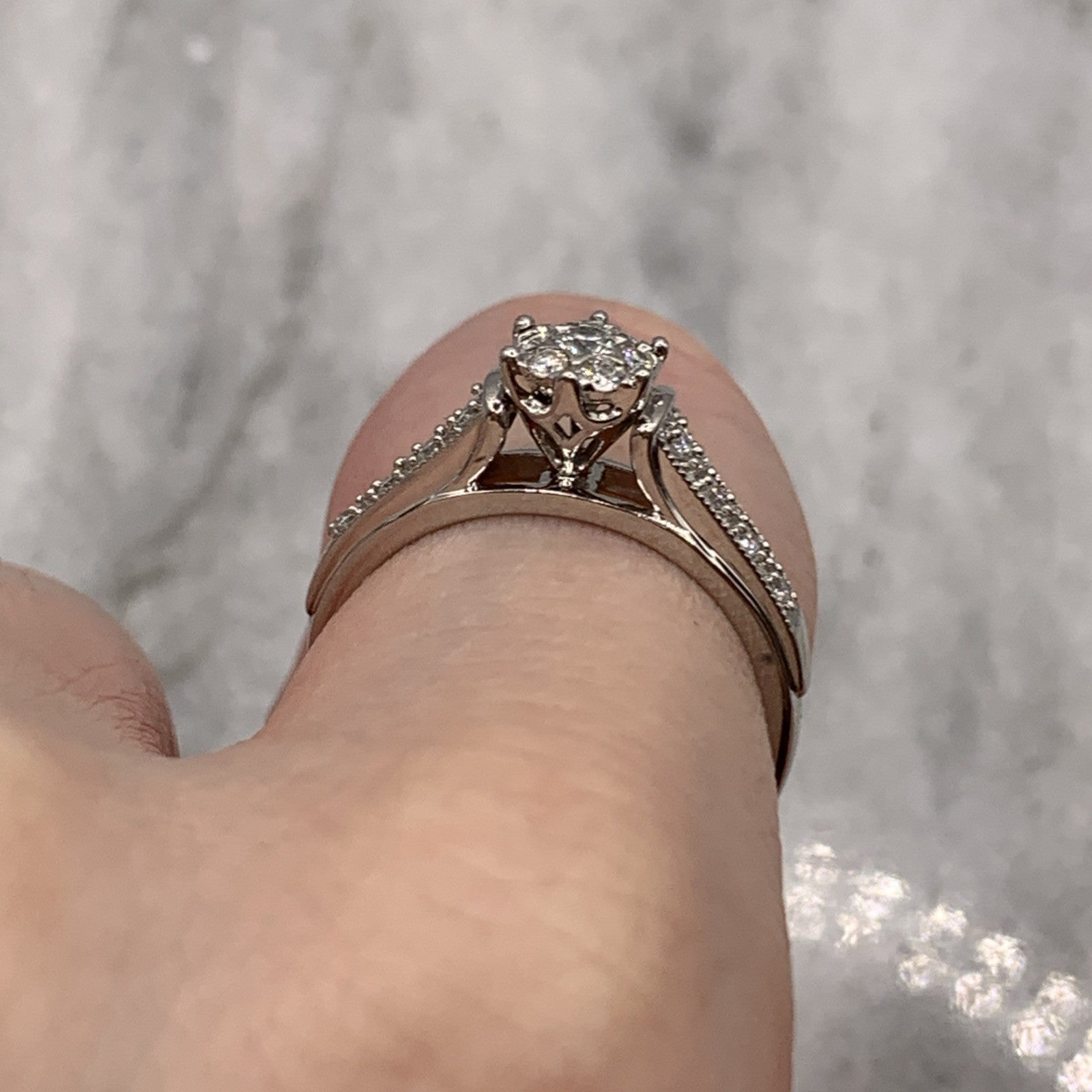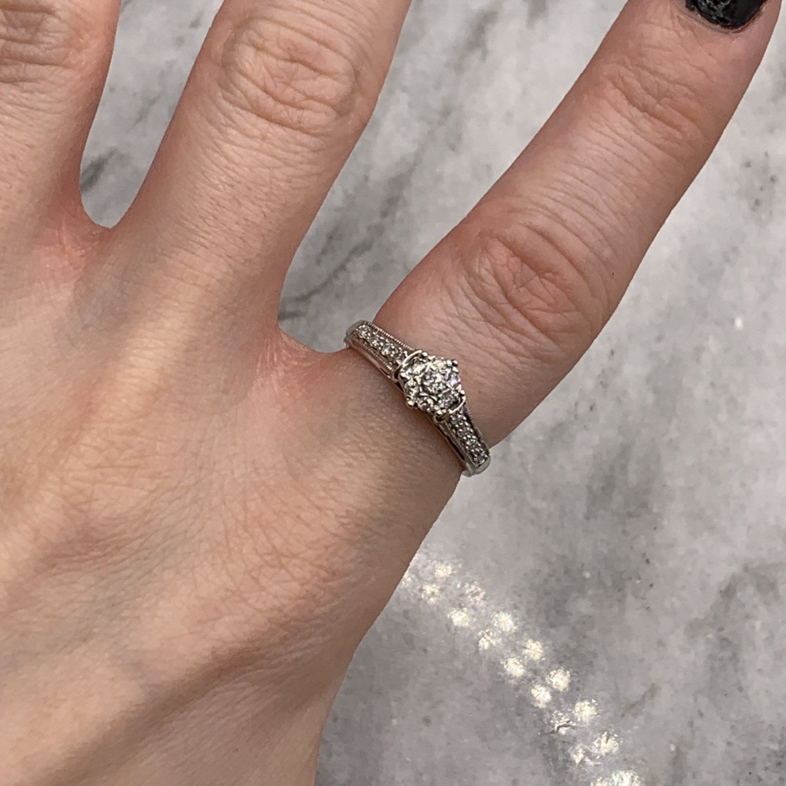 9 ct Gold Diamond .195ct Cluster Accent Ring 375 White Gold - Size L 1/2