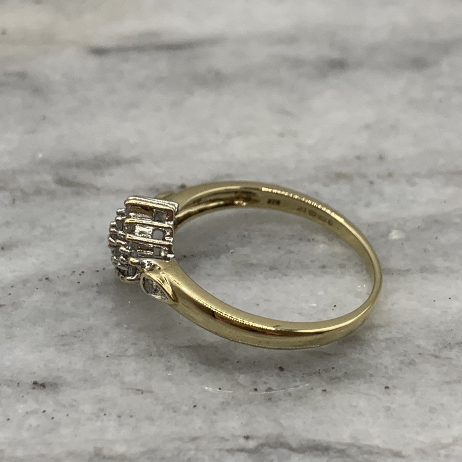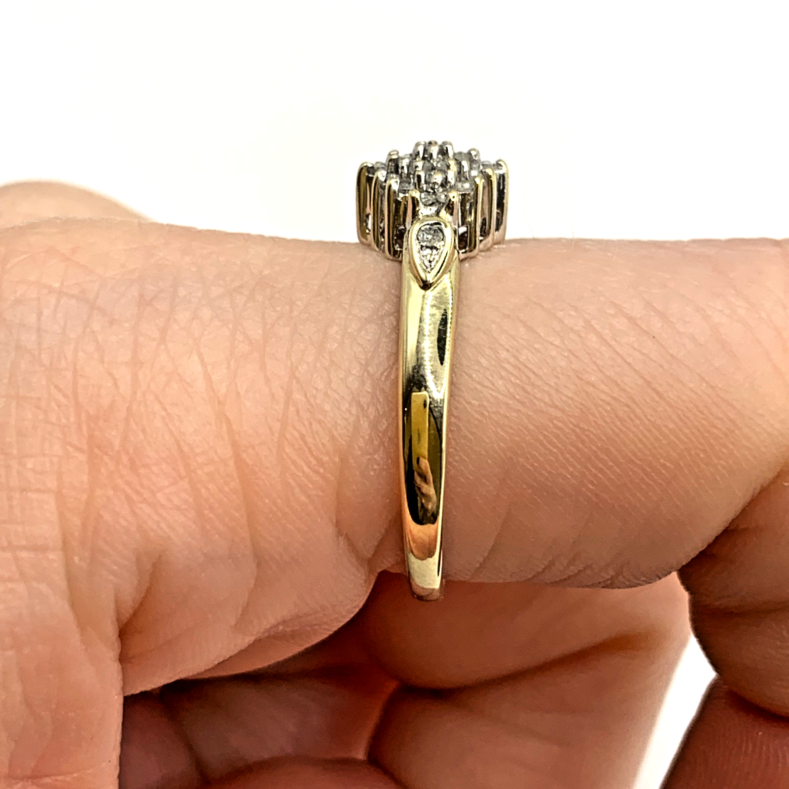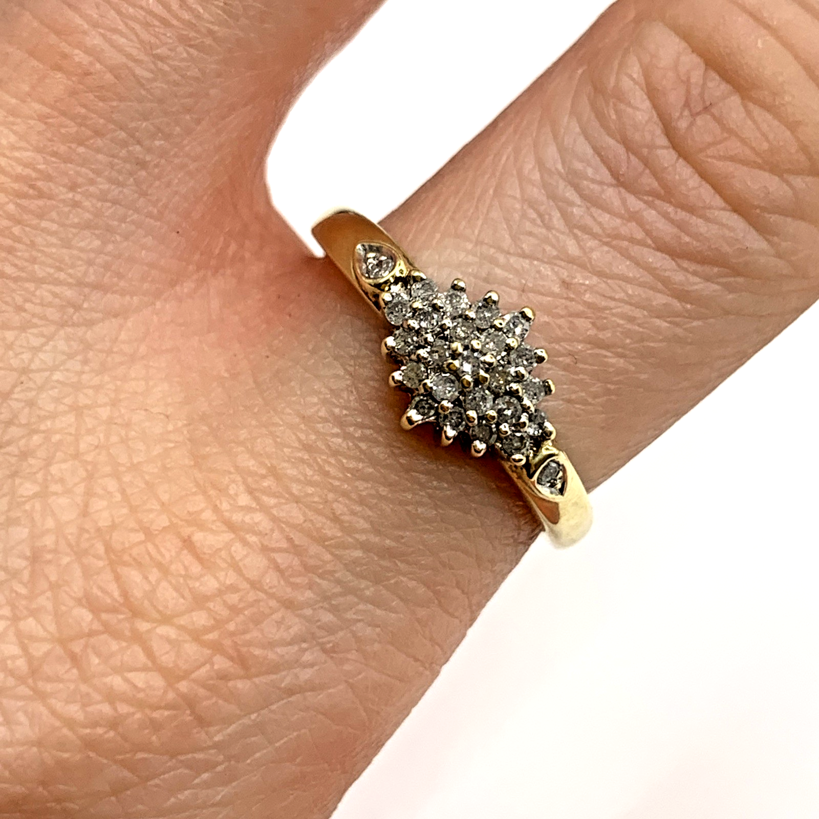 9 ct Gold Diamond .25ct Cluster Ring 9k 375 Yellow Gold - Size Q 1/2