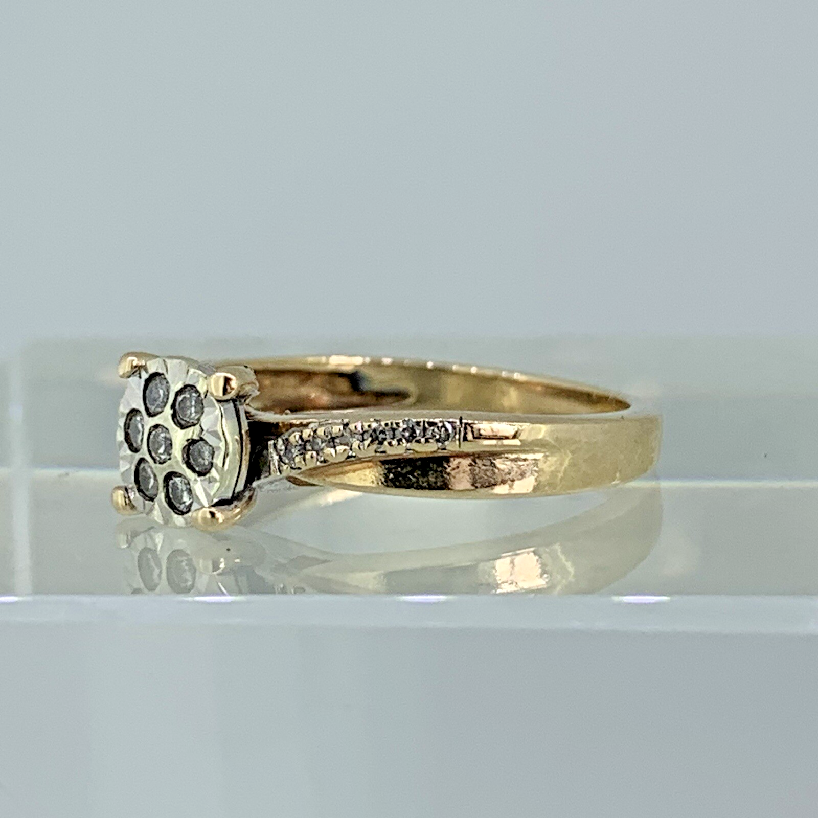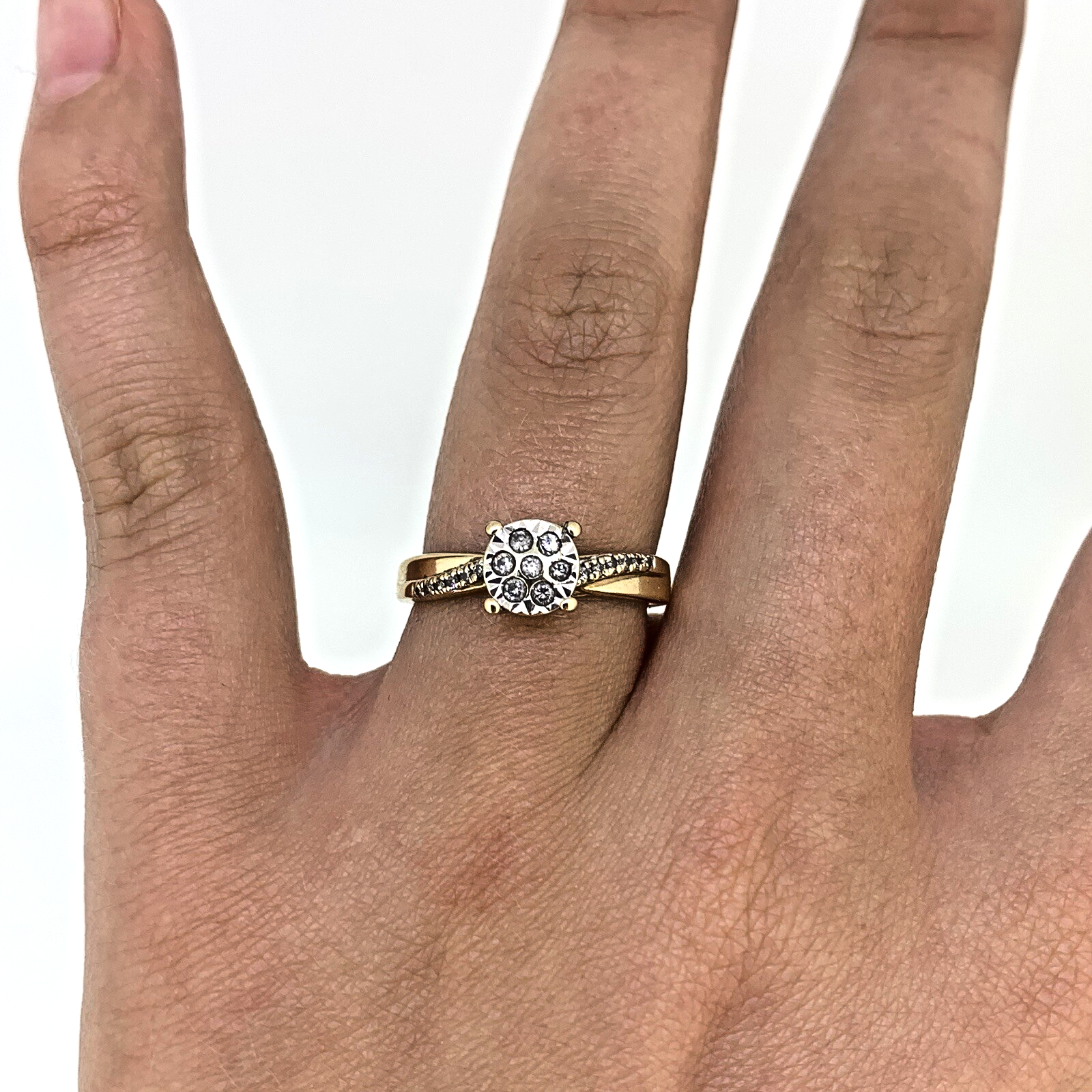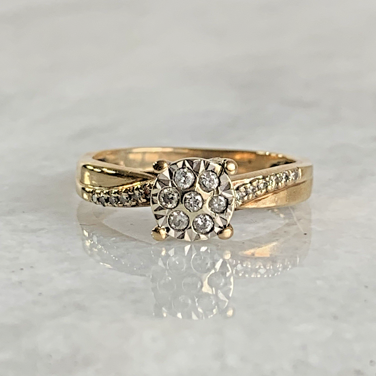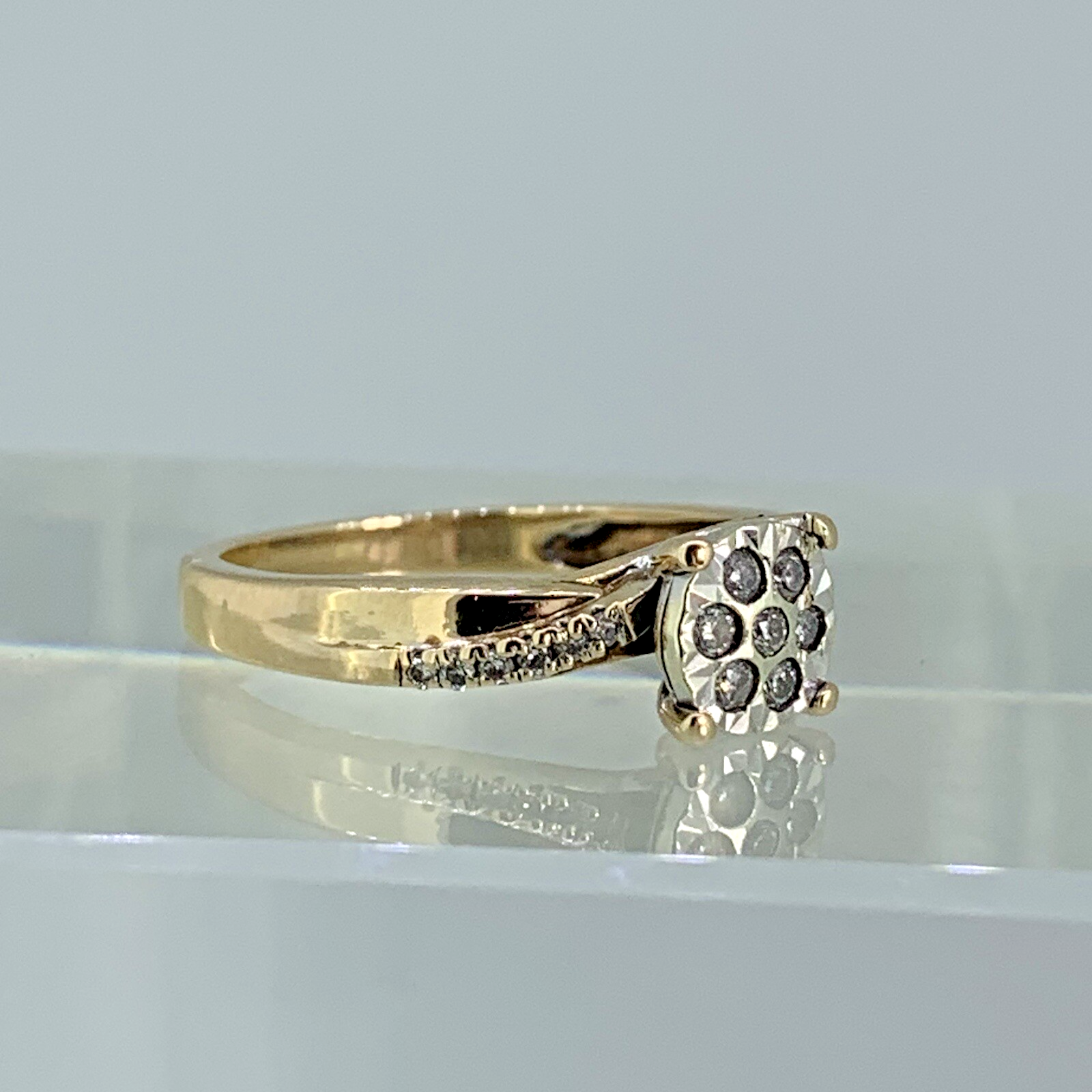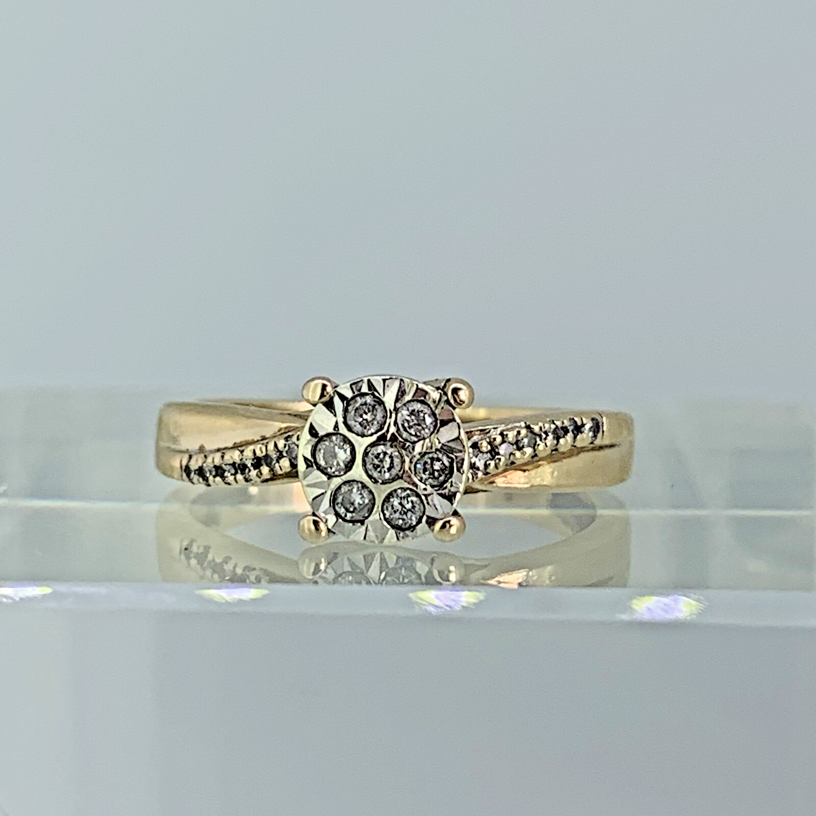 9 ct Gold Diamond Cluster .20ct Solitaire Ring 9k 375 Yellow Gold - Size L 1/2