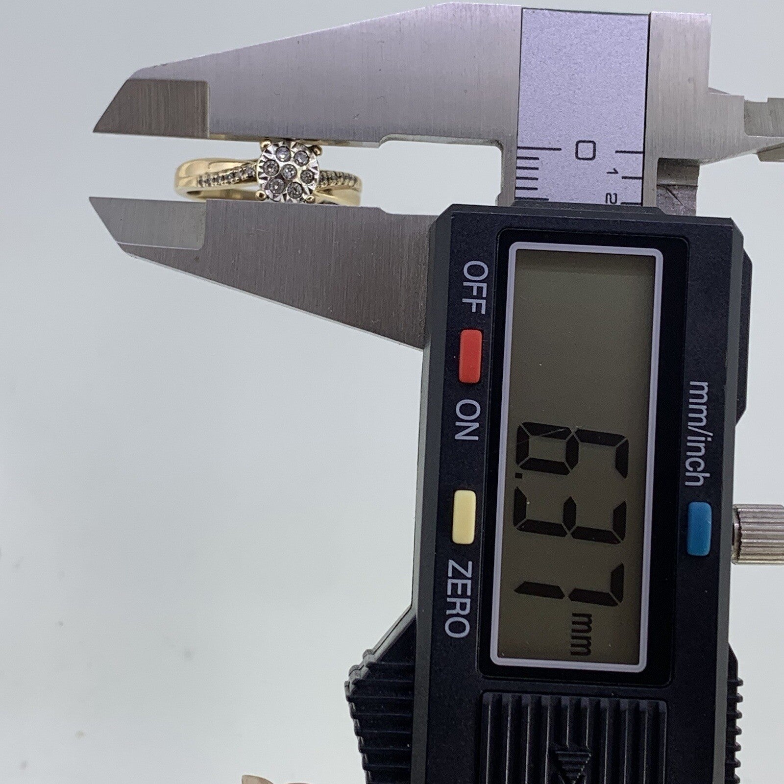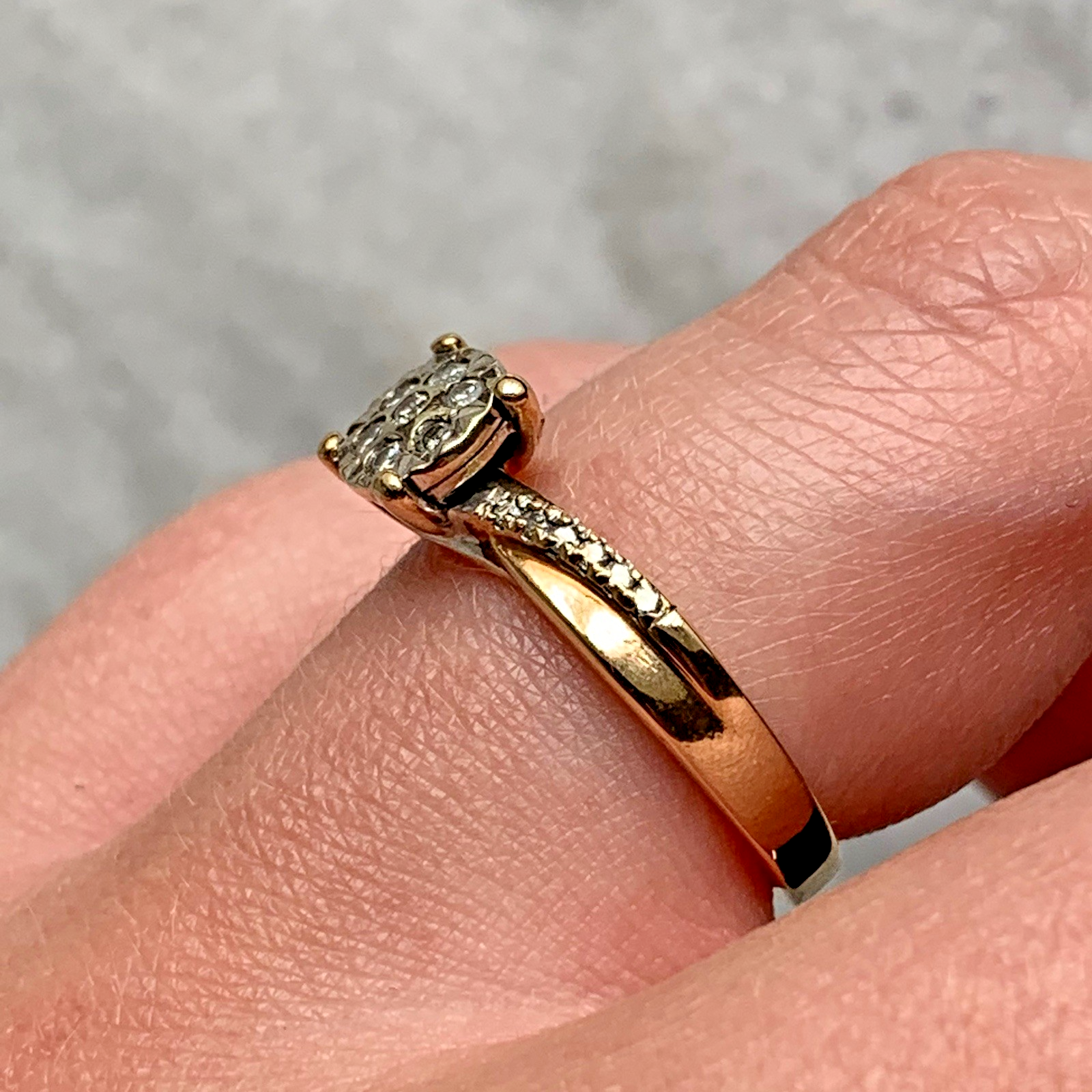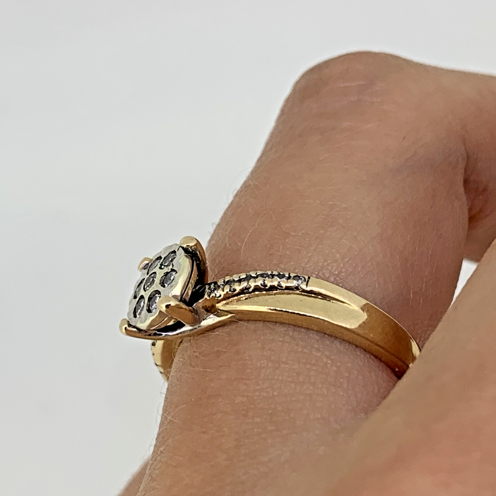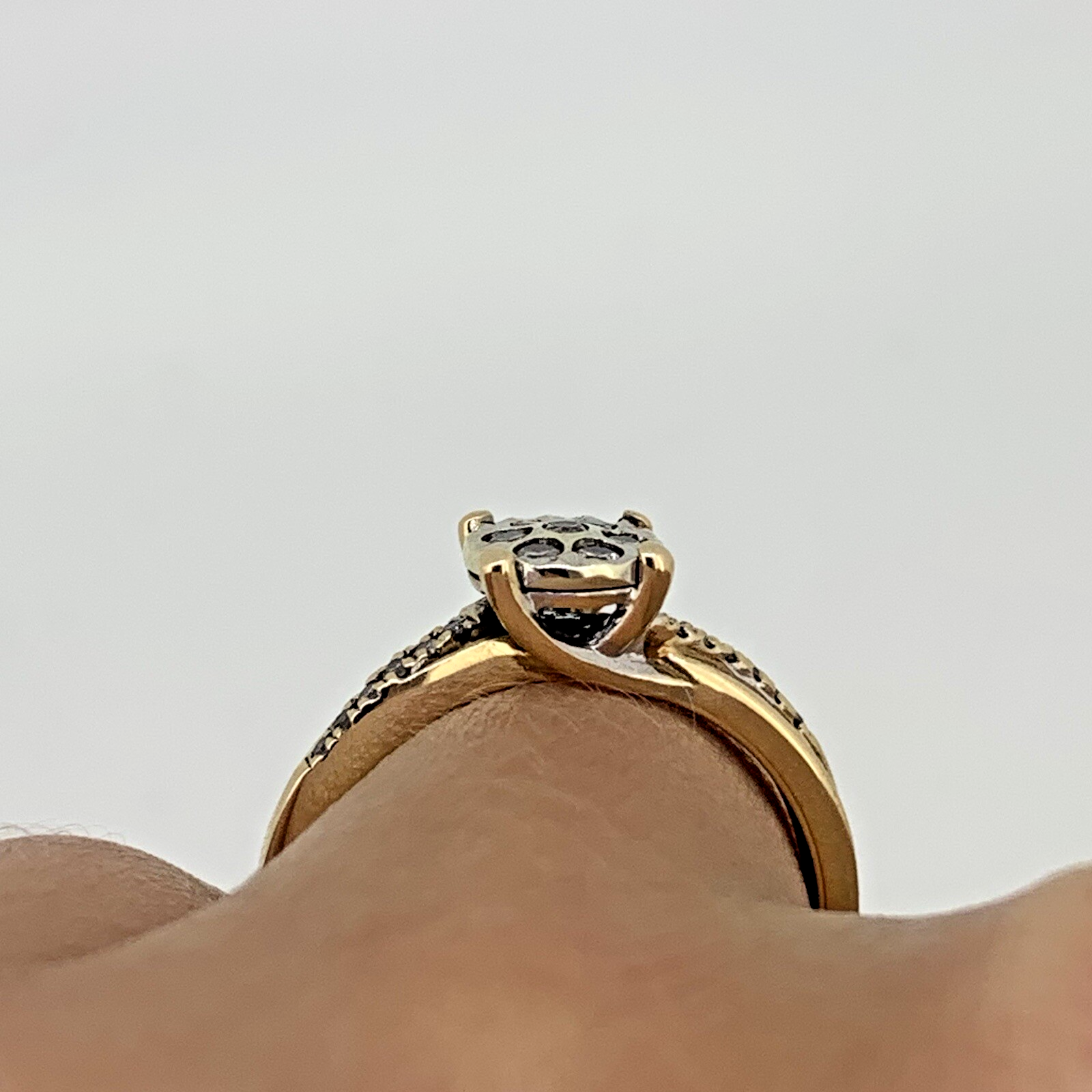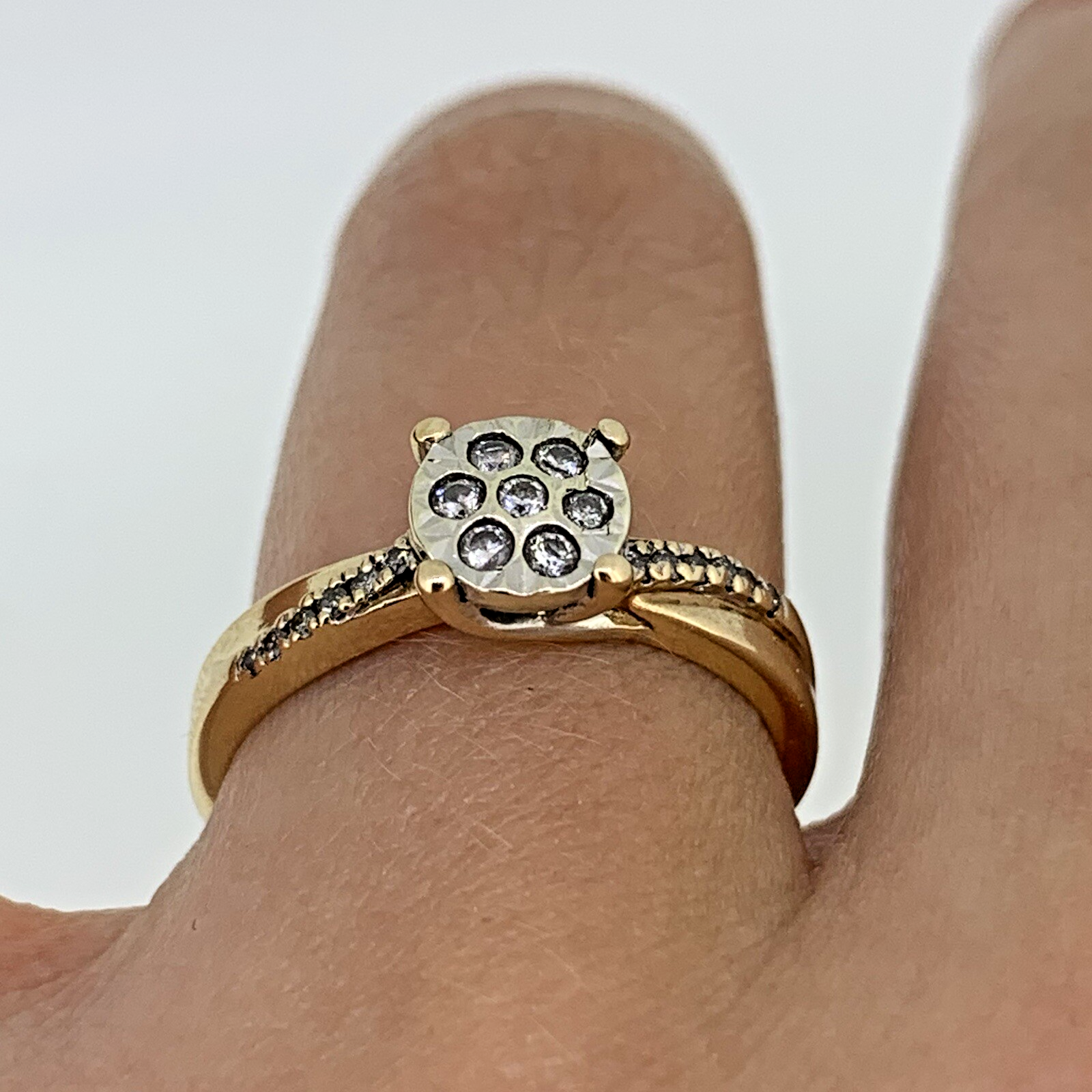 9 ct Gold Diamond Cluster .20ct Solitaire Ring 9k 375 Yellow Gold - Size L 1/2