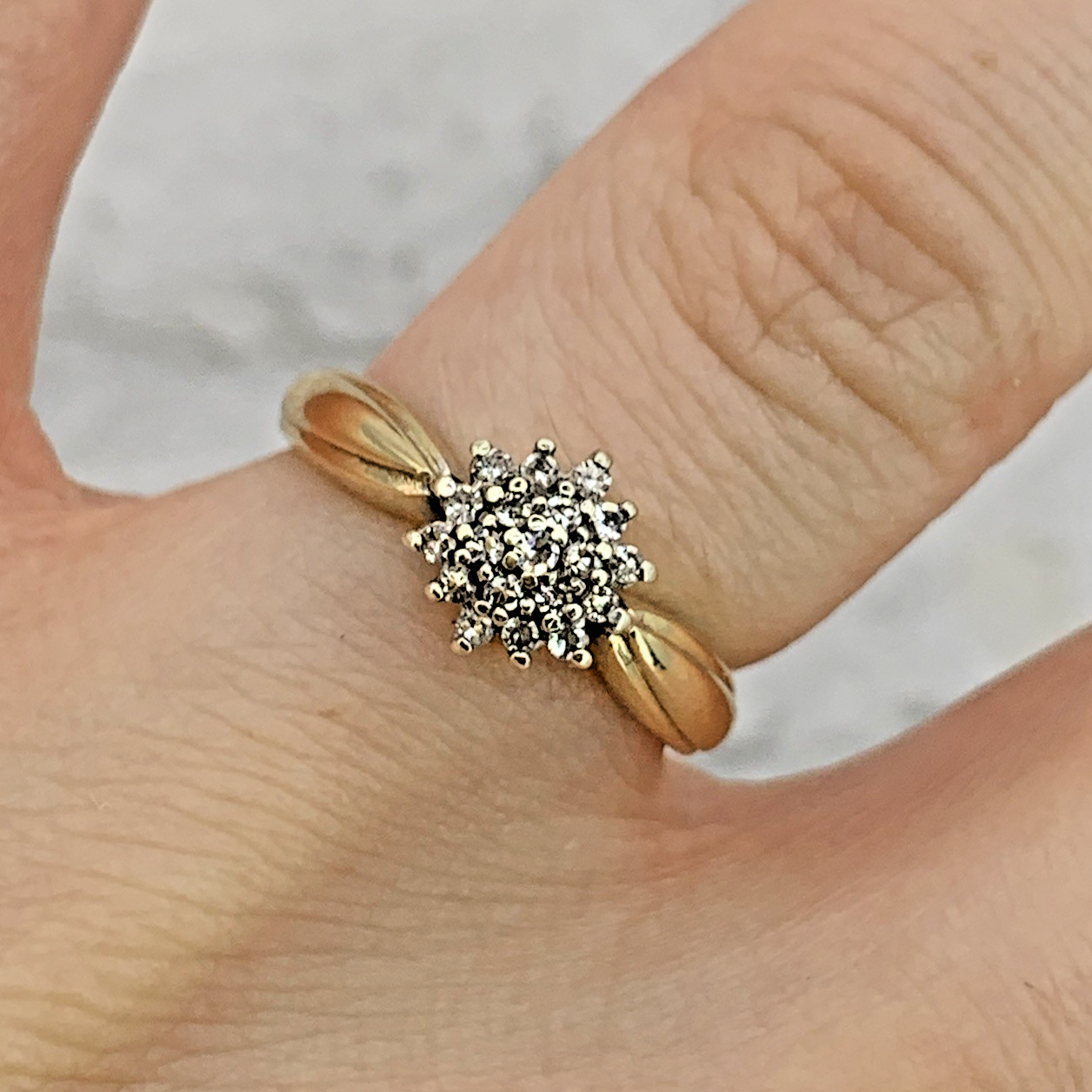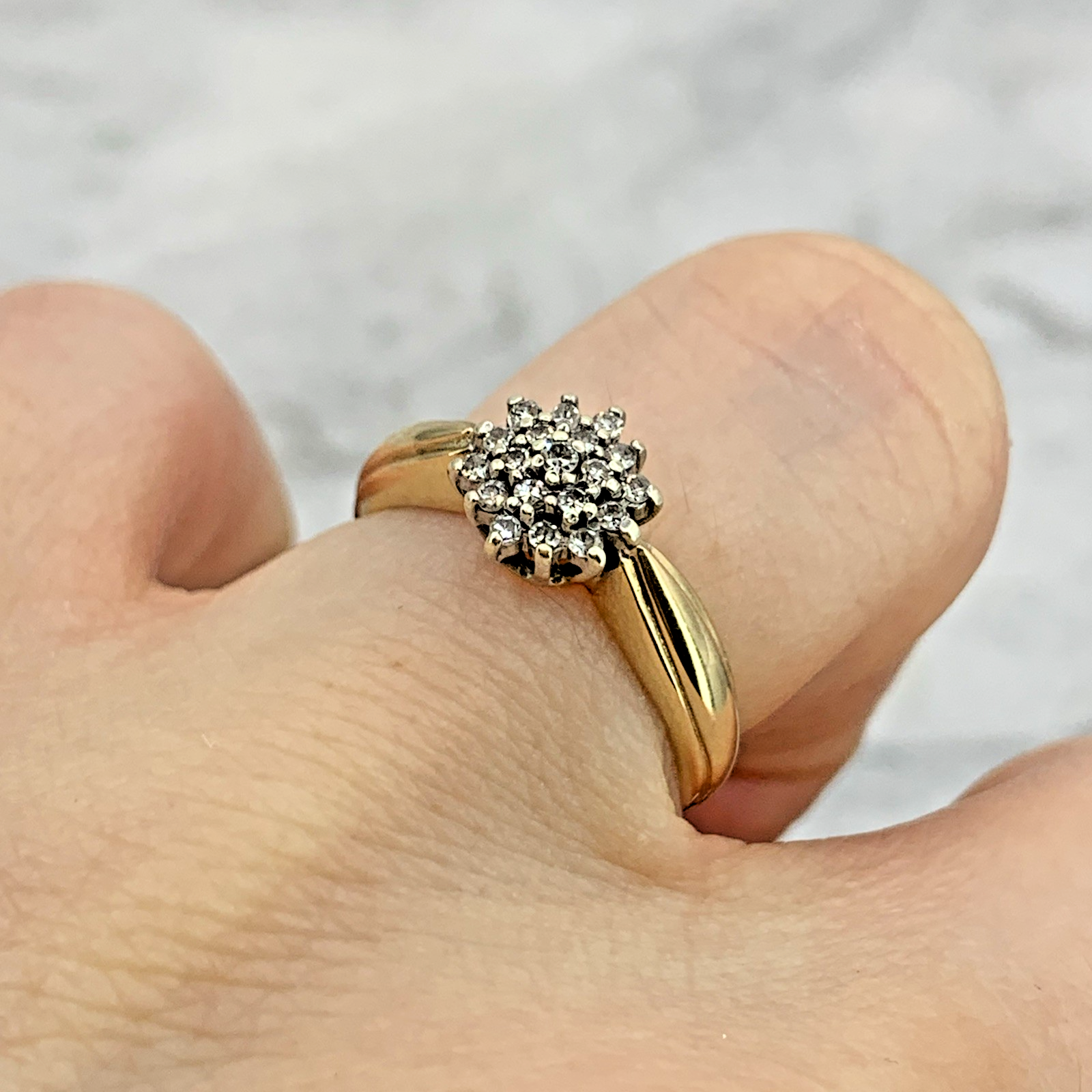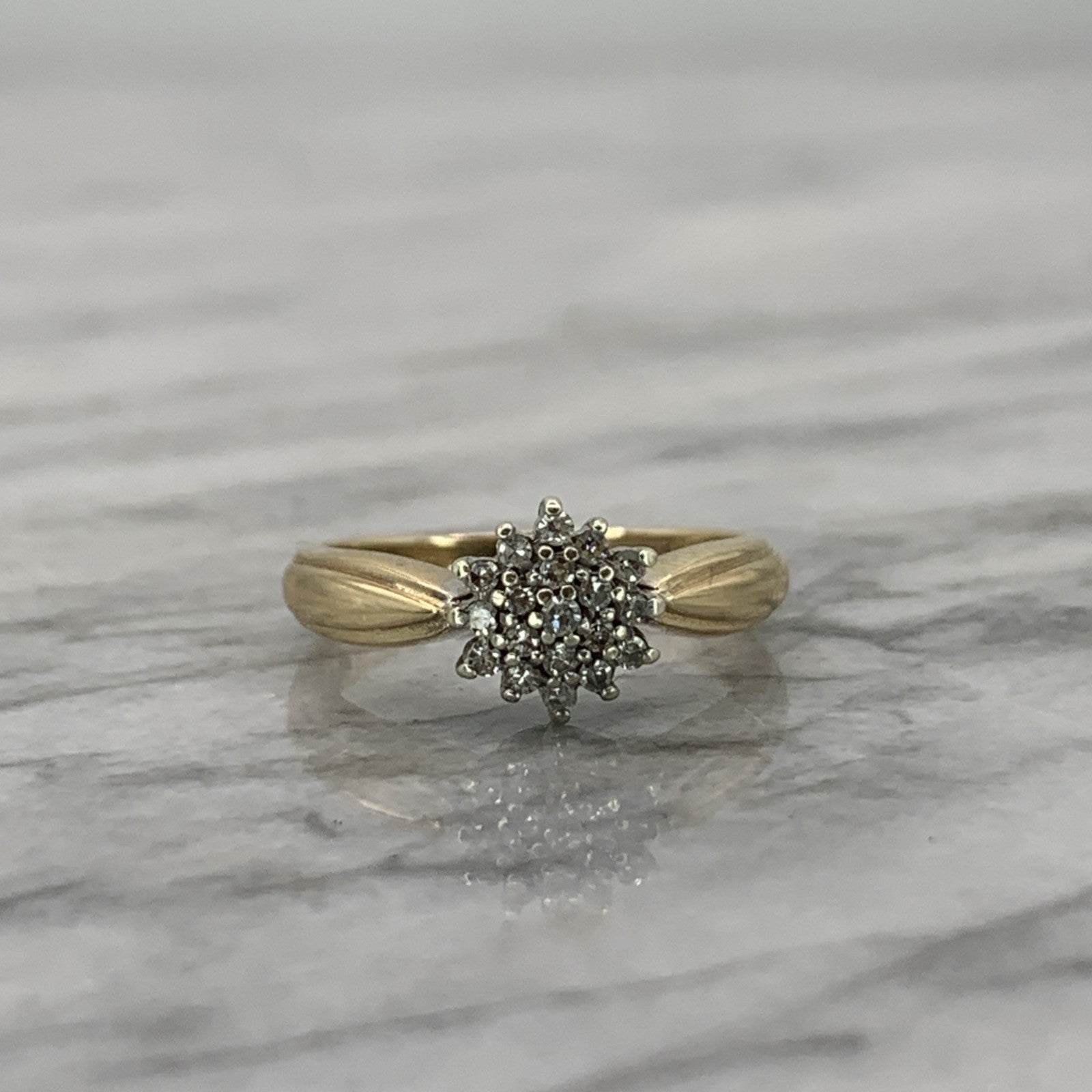 9 ct Gold Diamond Cluster Ring 9ct 9k 375 Yellow Gold - Size J