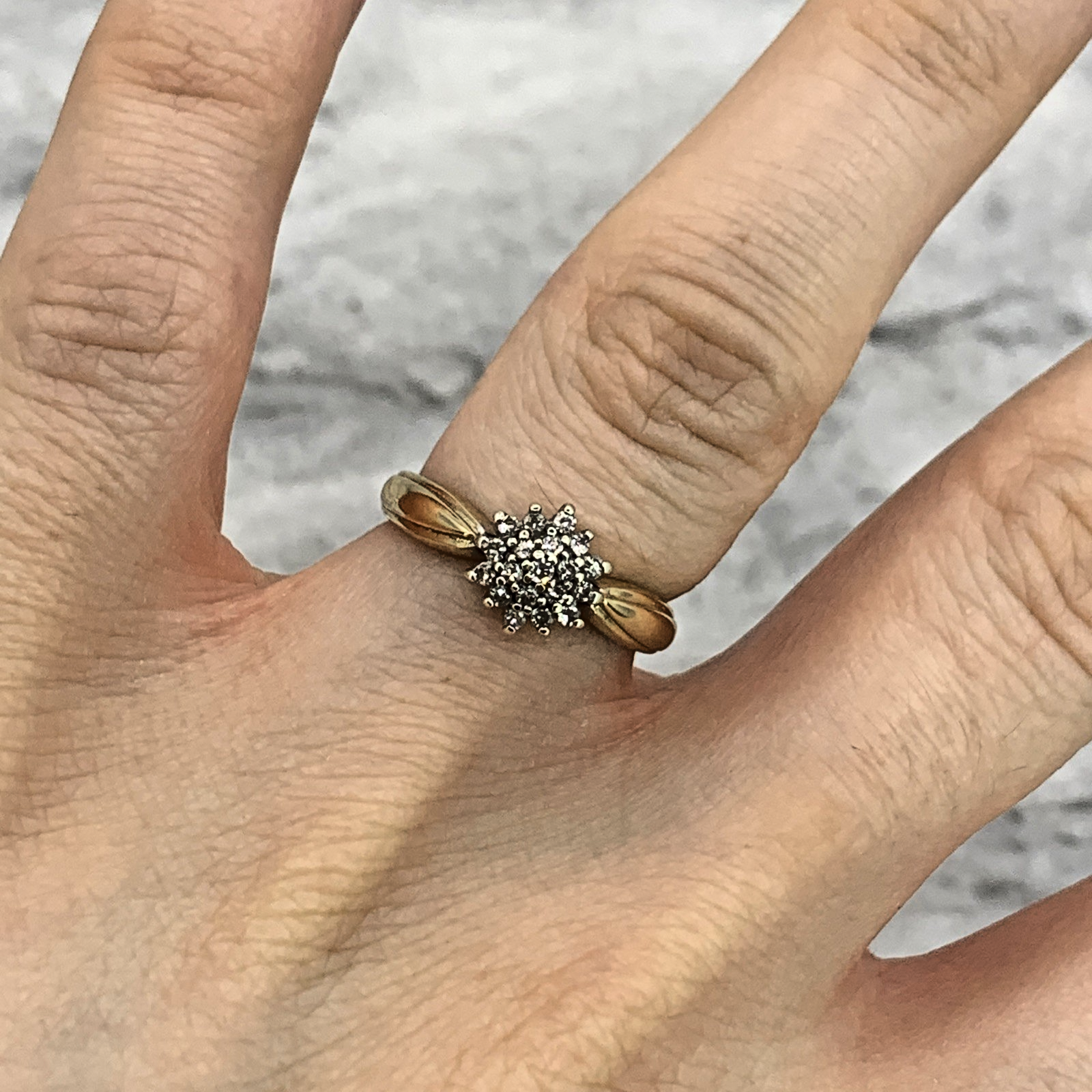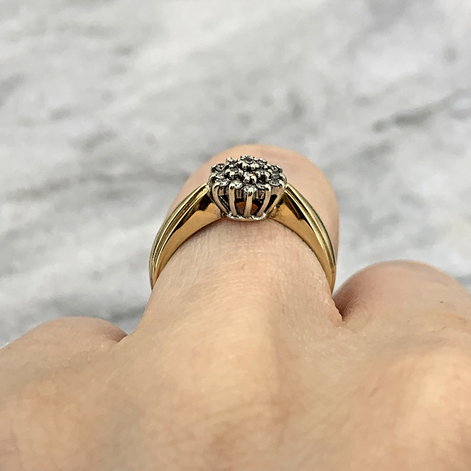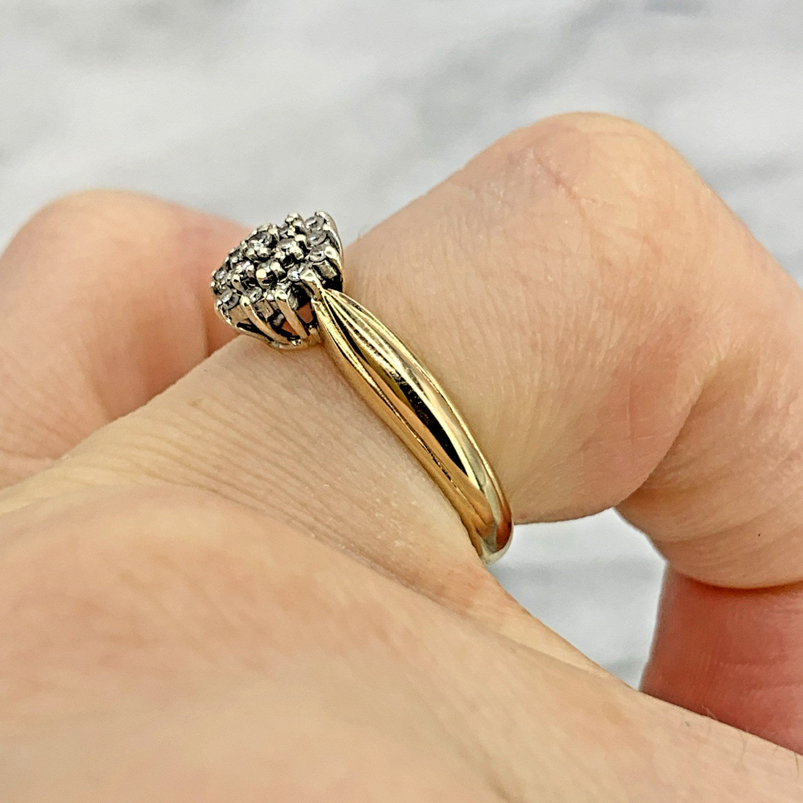 9 ct Gold Diamond Cluster Ring 9ct 9k 375 Yellow Gold - Size J