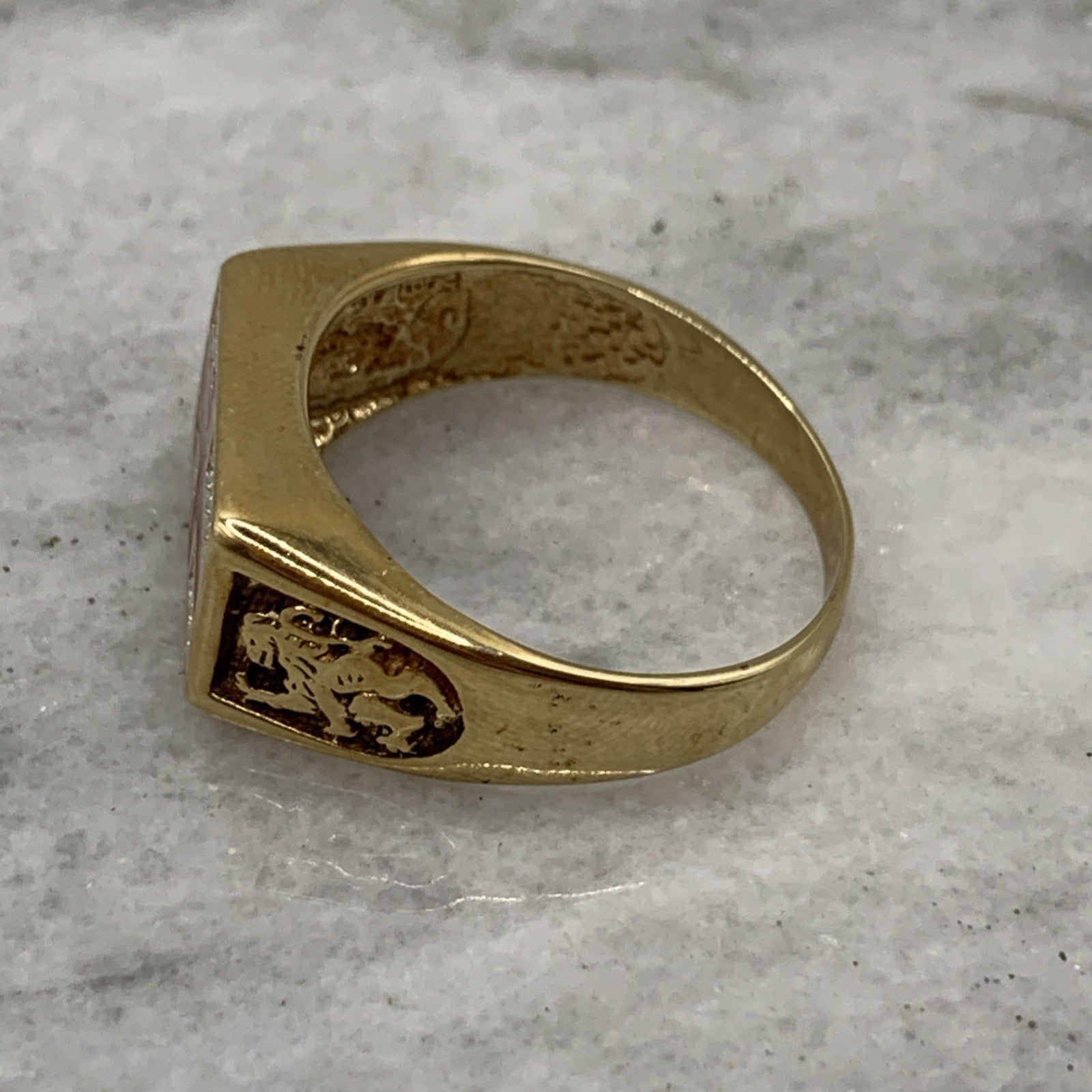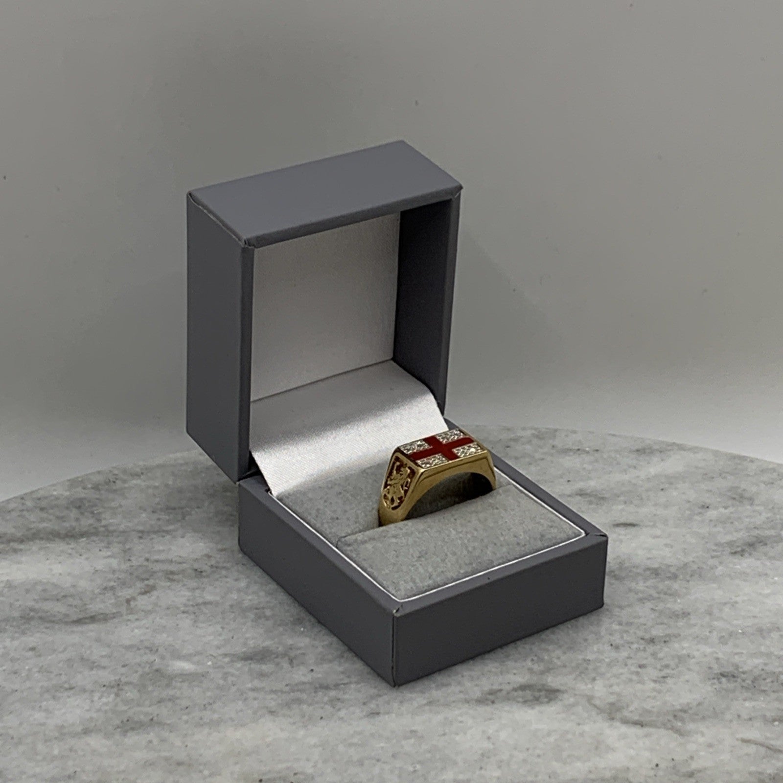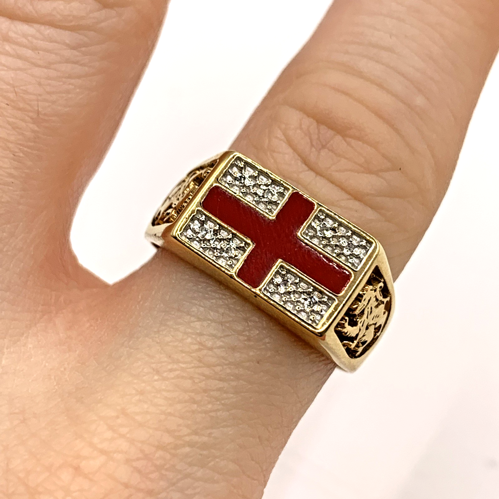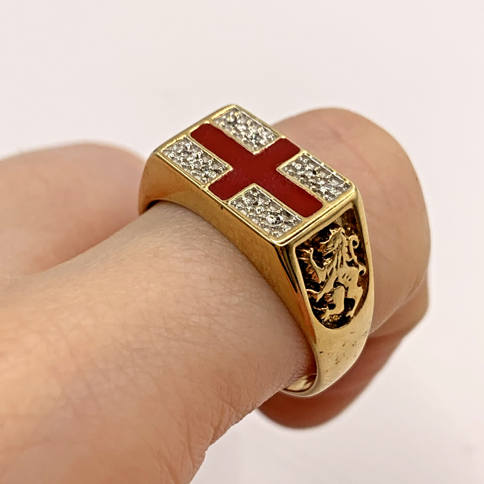 9 ct Gold Diamond England Flag Signet Ring 375 Yellow Gold - Size V