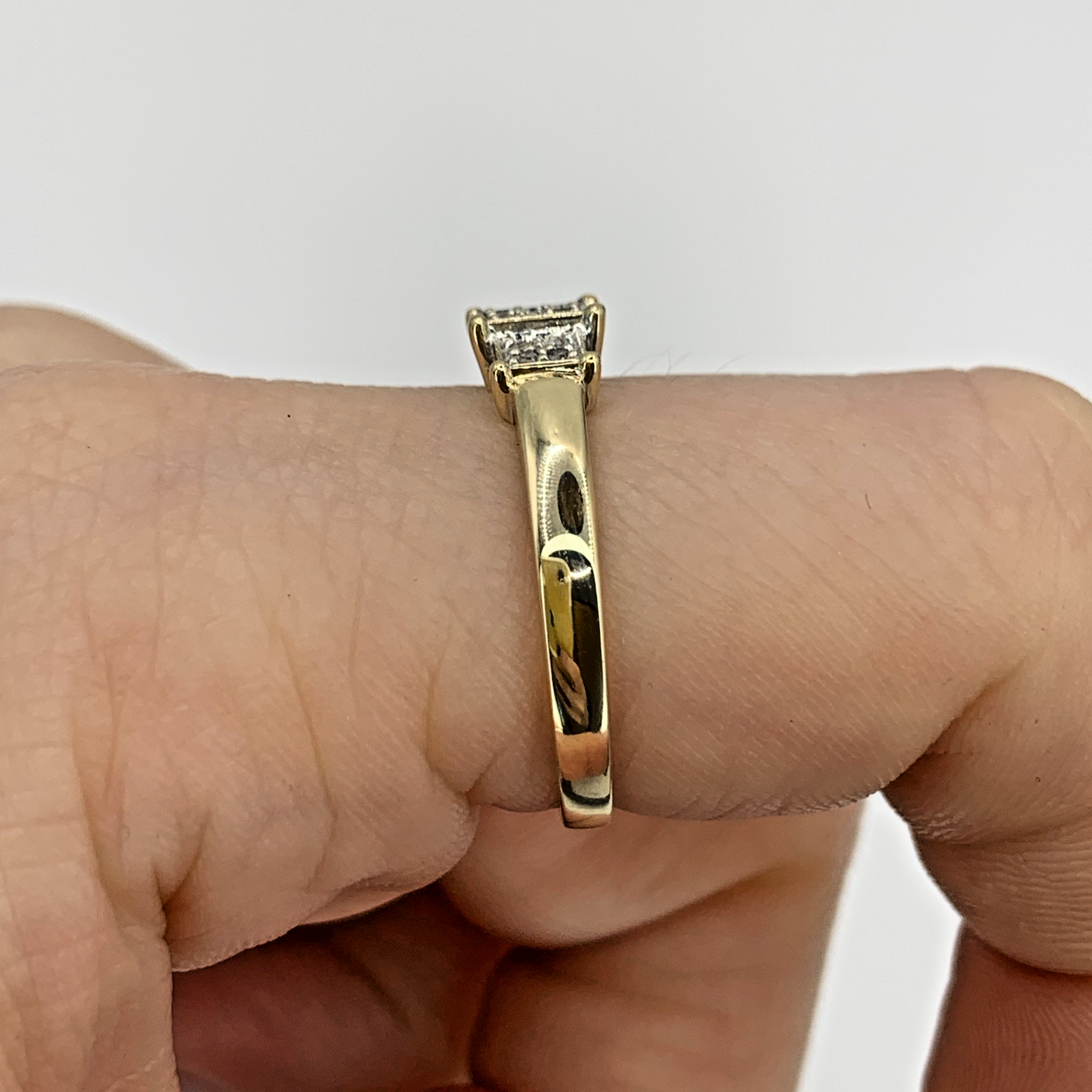 9 ct Gold Diamond Invisible Square Cluster Ring 9k 375 Yellow Gold - Size O