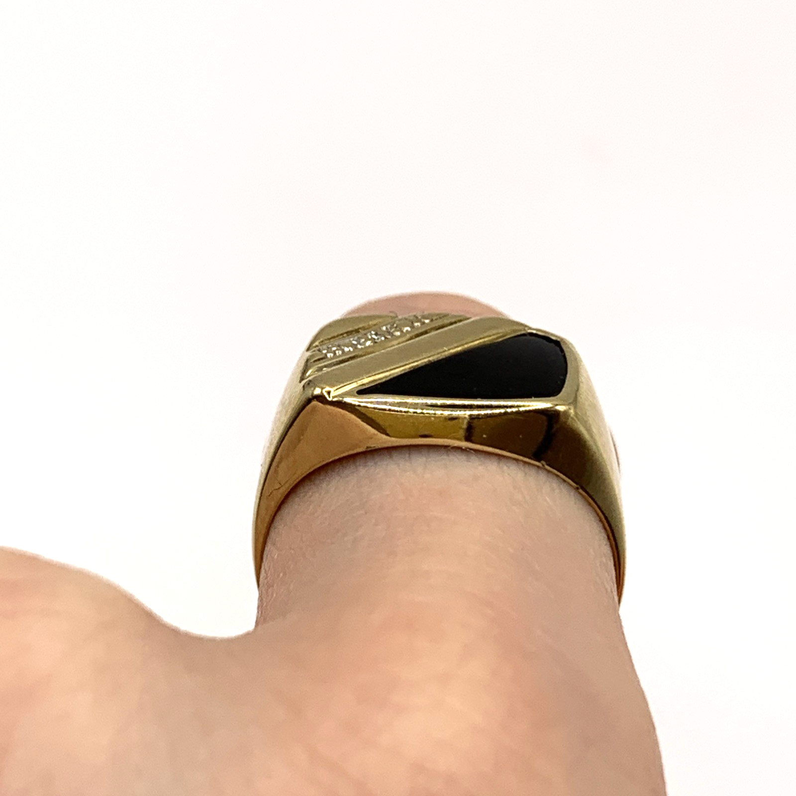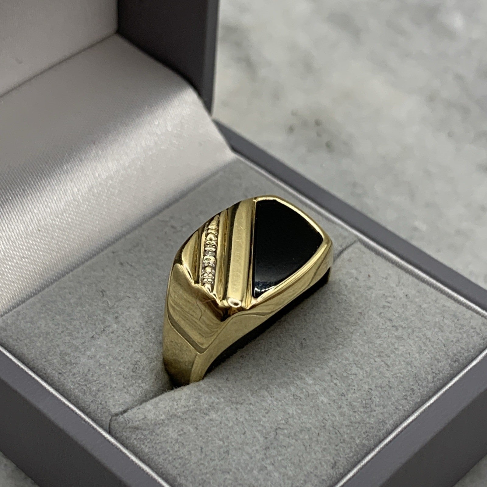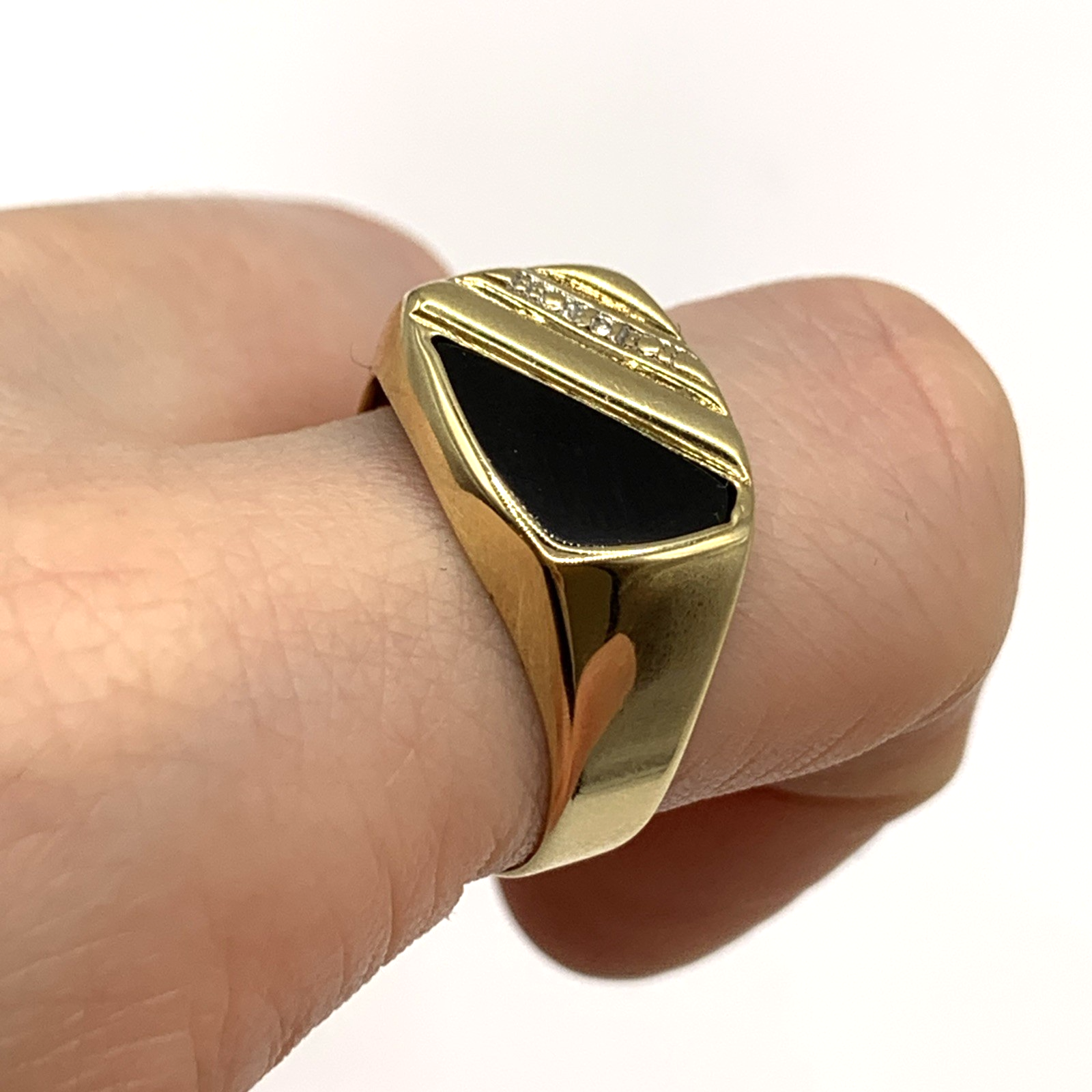 9 ct Gold Diamond & Onyx Stripe Signet Ring 9k 9ct Yellow Gold - Size S 1/2