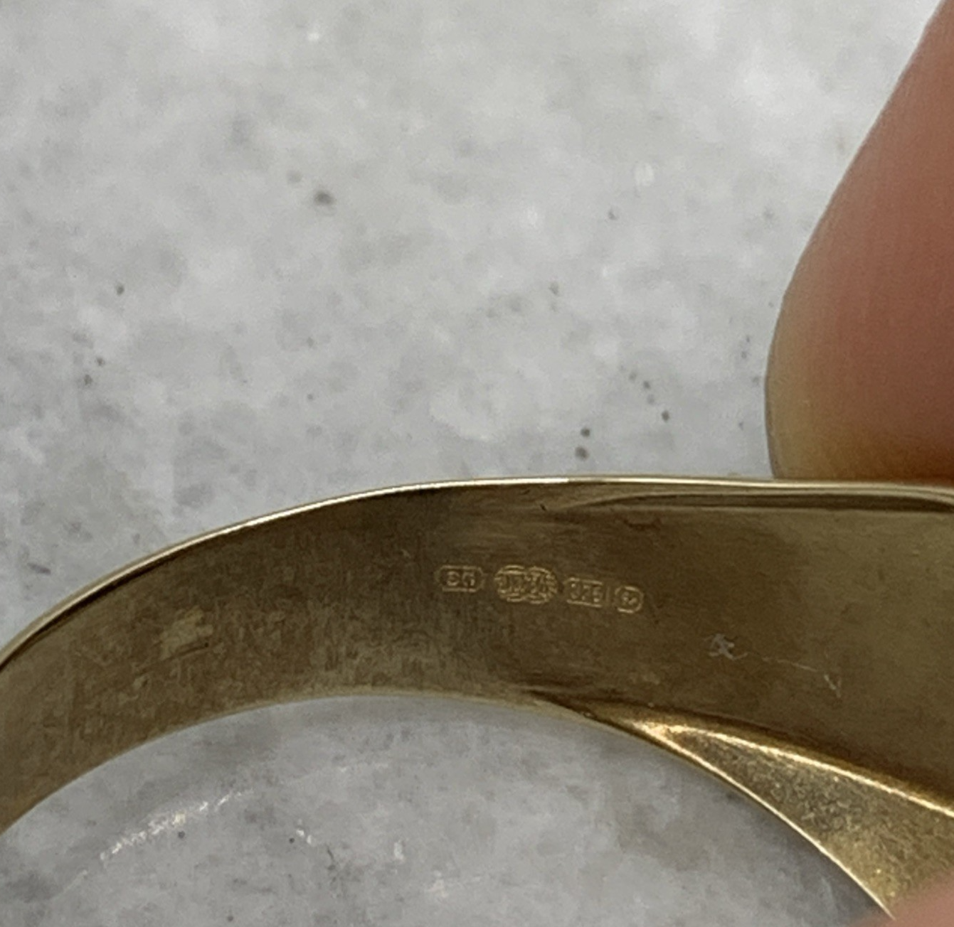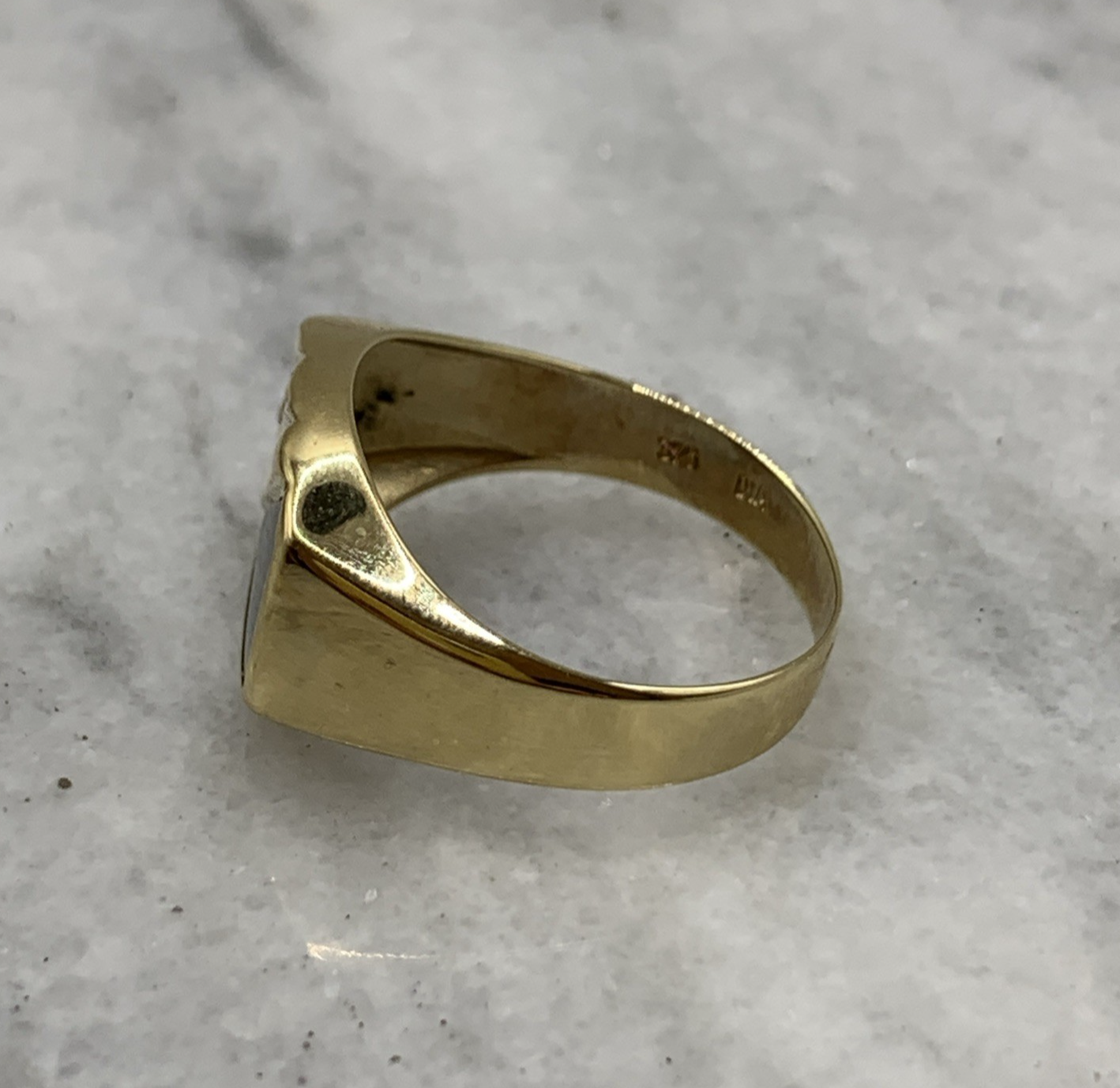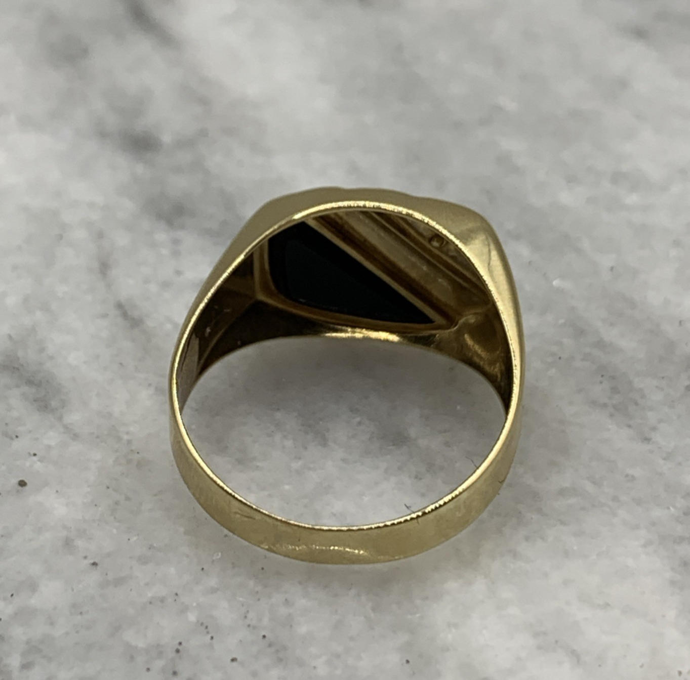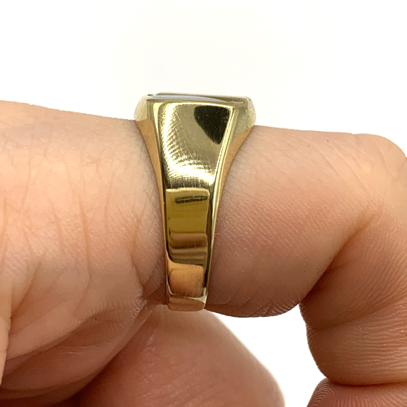 9 ct Gold Diamond & Onyx Stripe Signet Ring 9k 9ct Yellow Gold - Size S 1/2