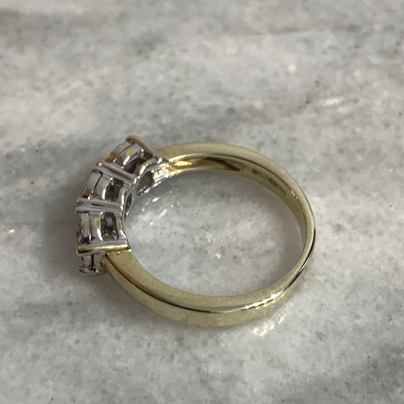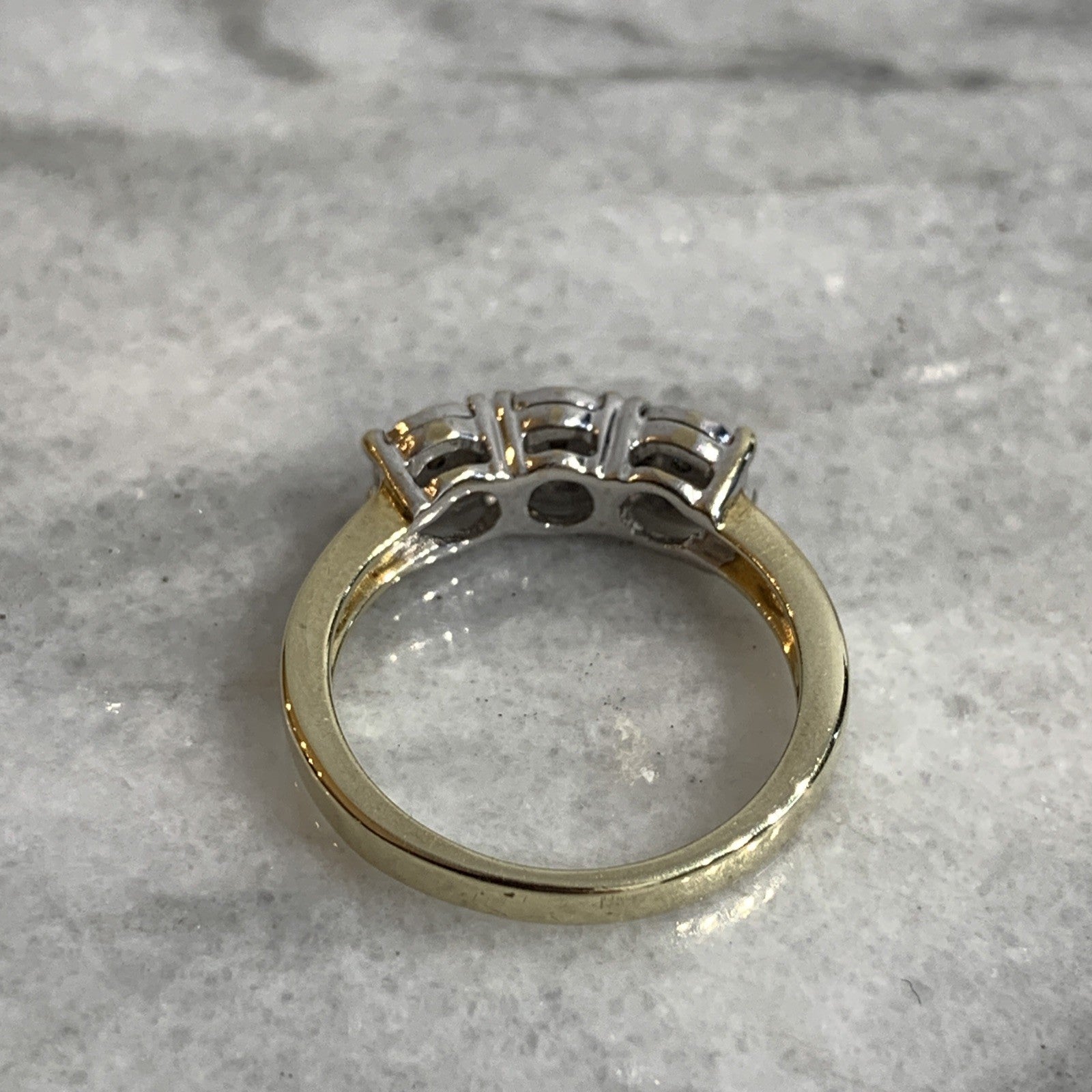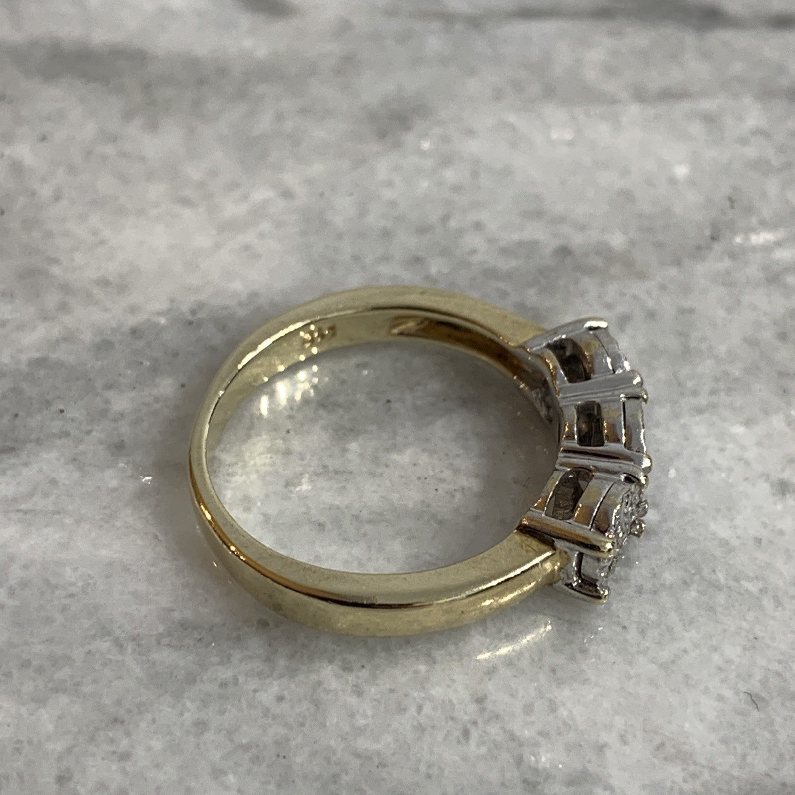 - A stunning gold trilogy ring showcasing a collection of petite illusion set diamonds amounting to .10ct.