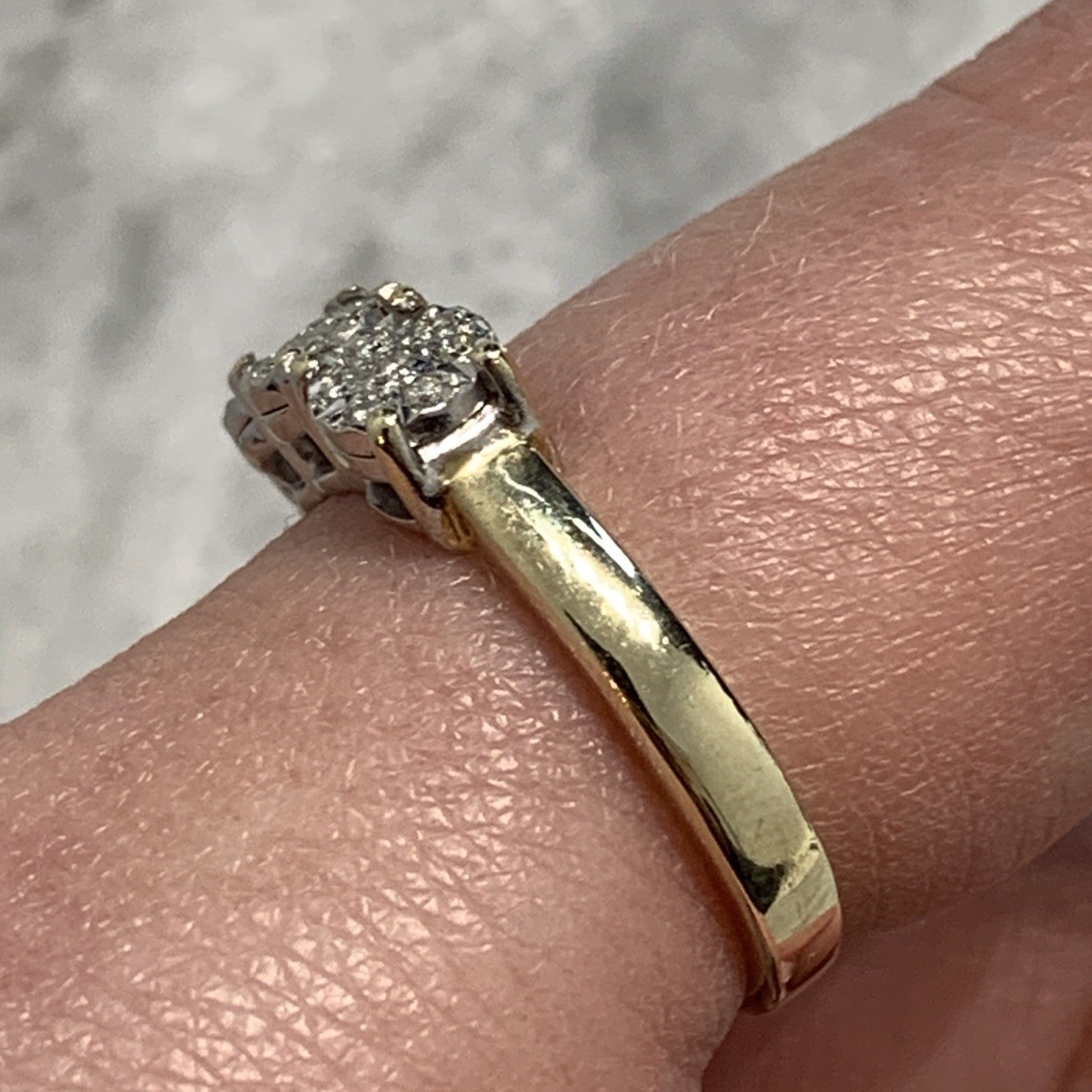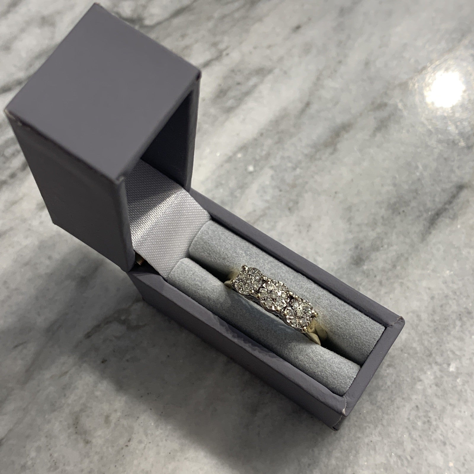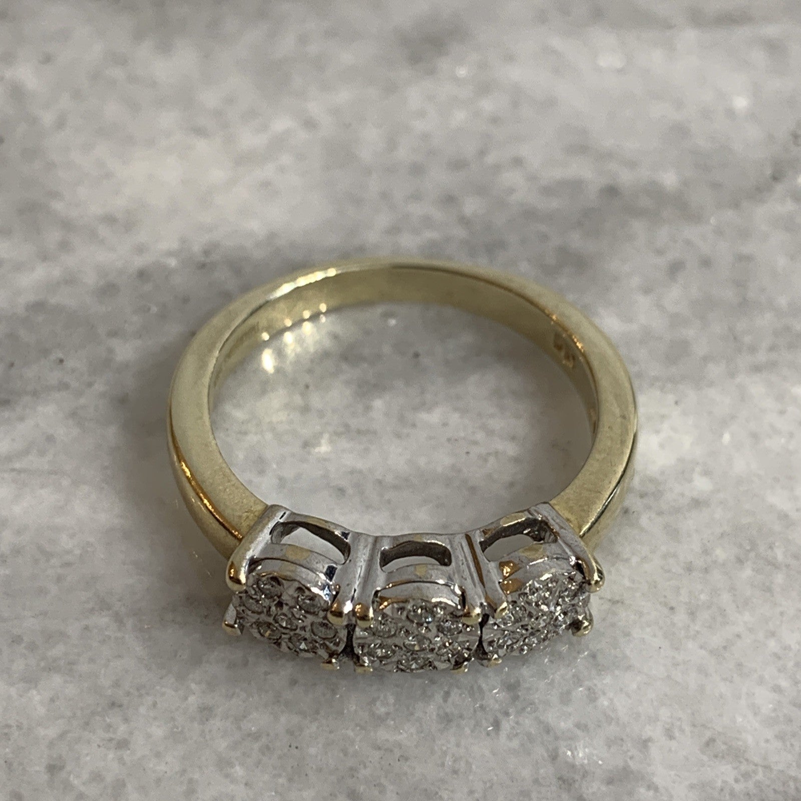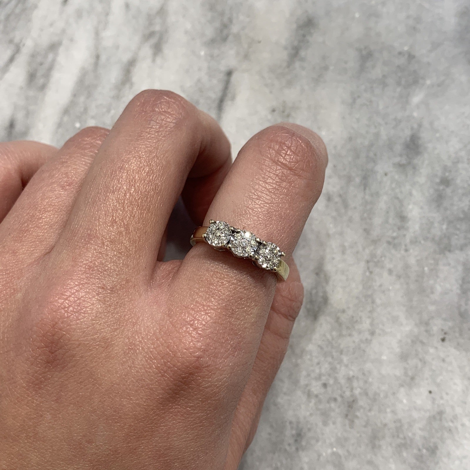 9 ct Gold Diamond Ring .10ct Illusion Cluster Trilogy 375 Yellow Gold - Size N