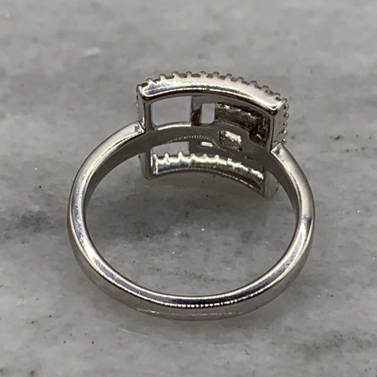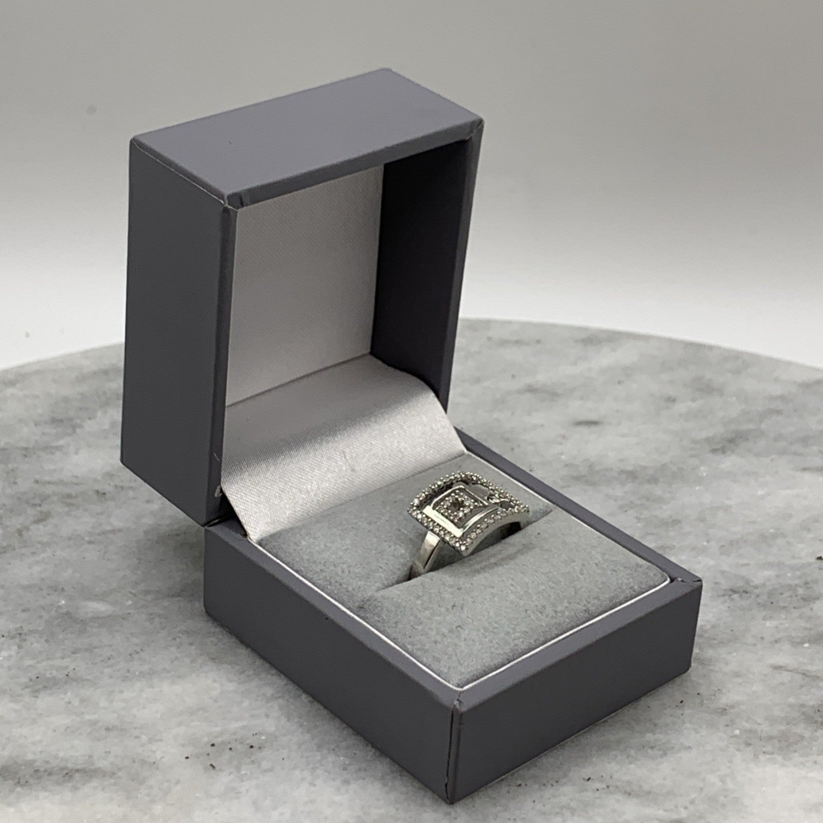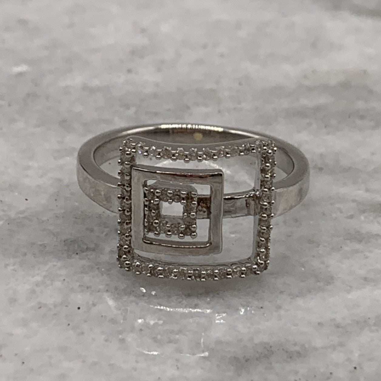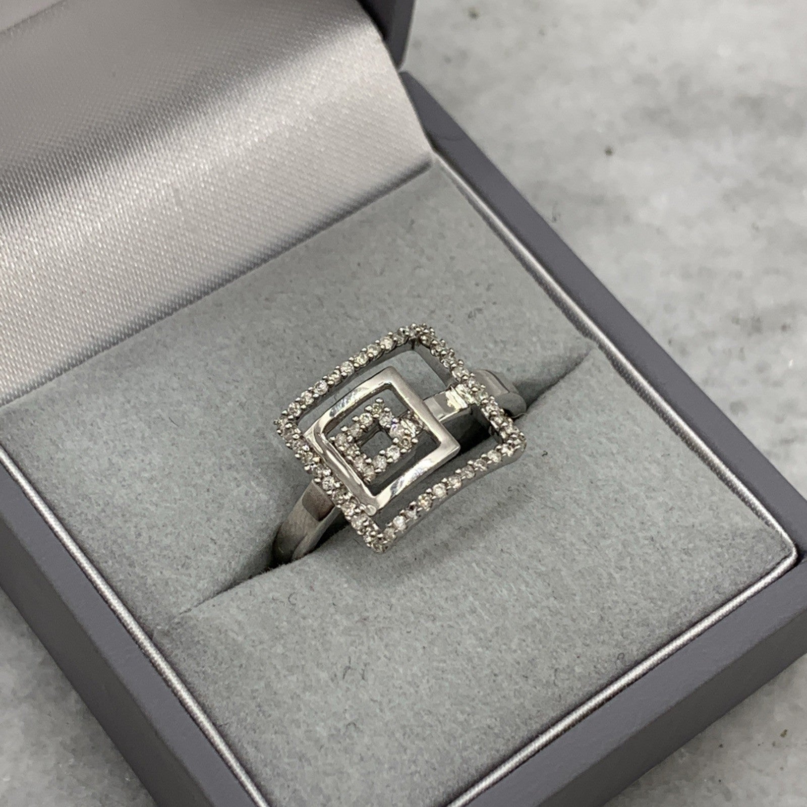 9 ct Gold Diamond Ring Abstract Squares Set In 375 White Gold - Size N