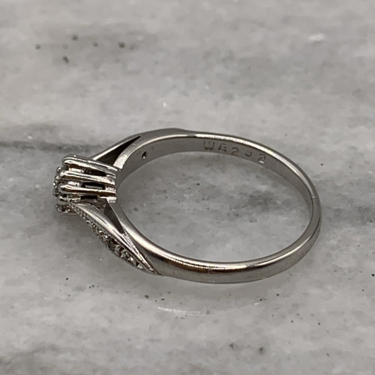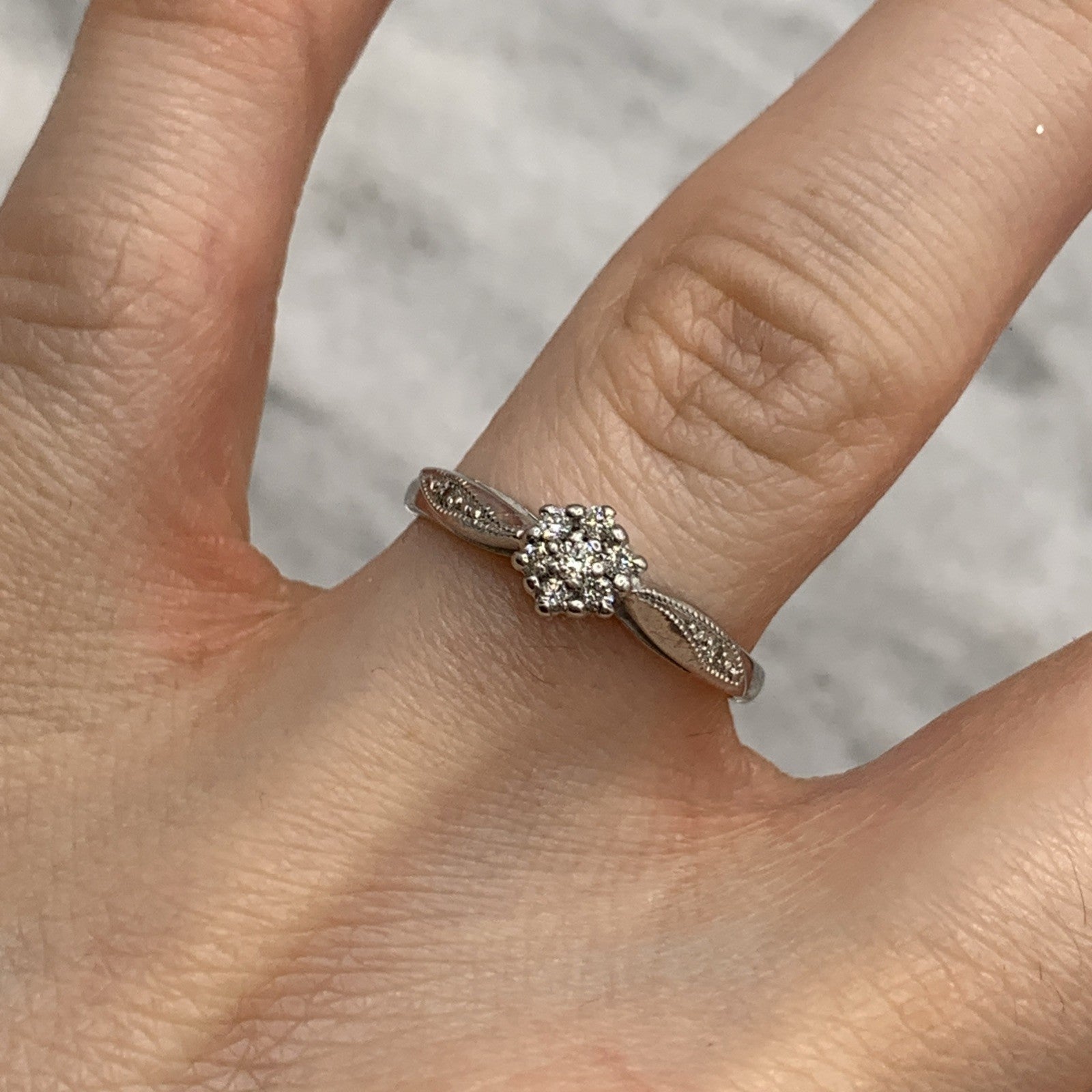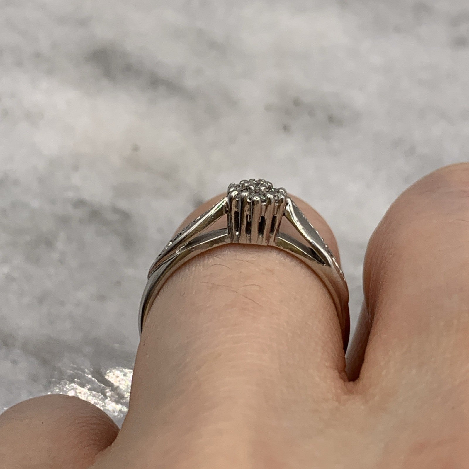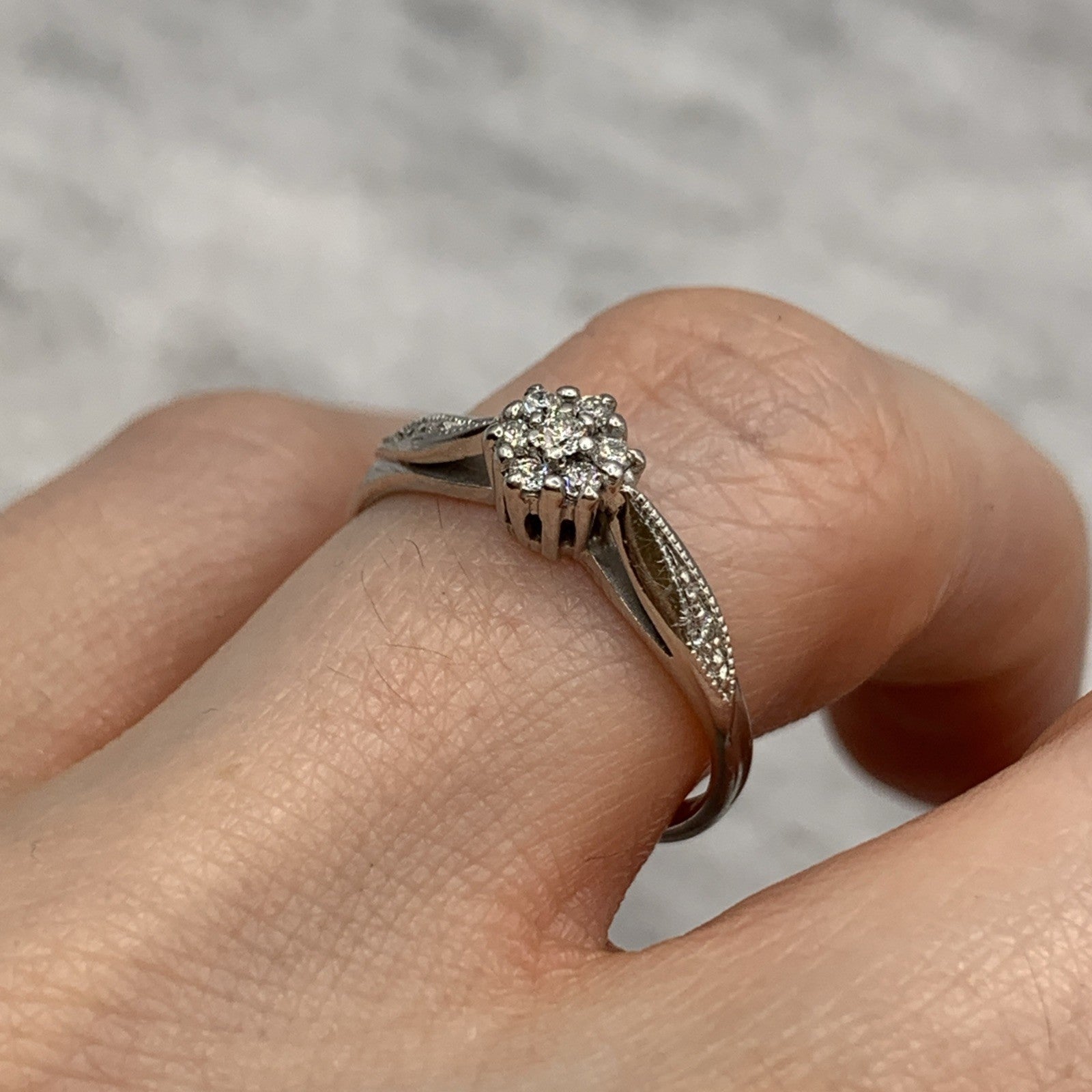 9 ct Gold Diamond Ring Cluster Milgrain Shoulder 375 White Gold - Size M