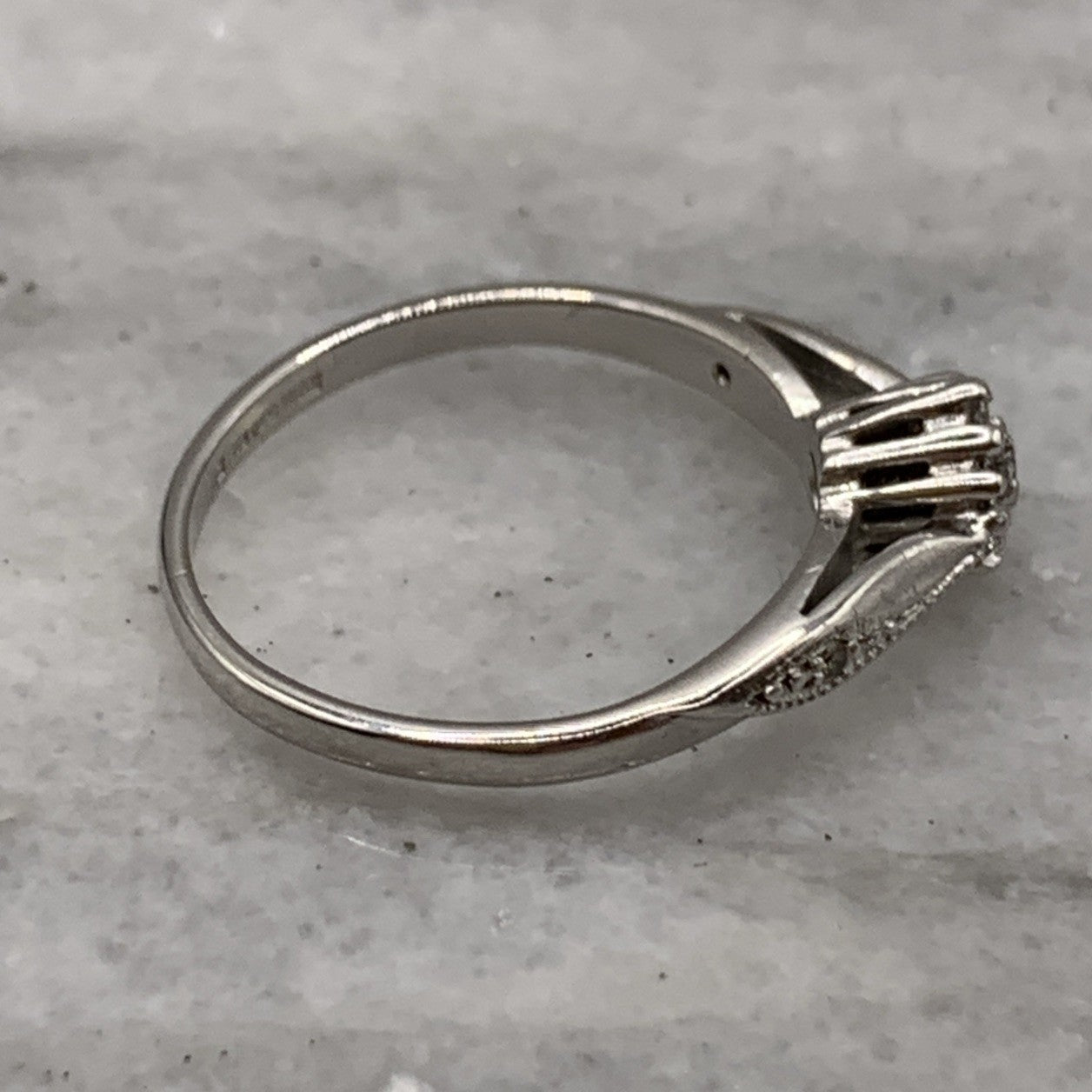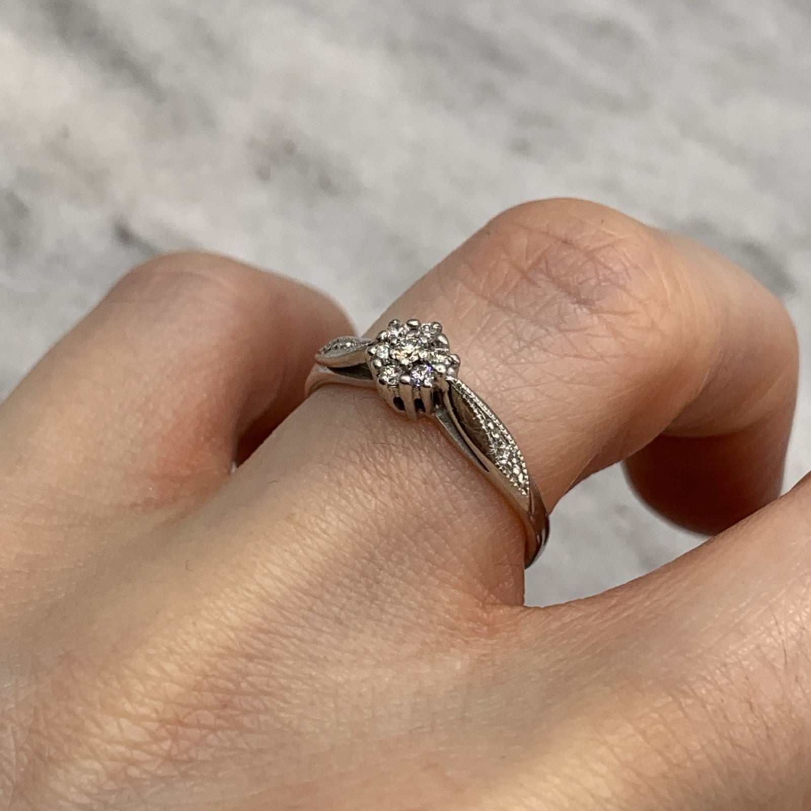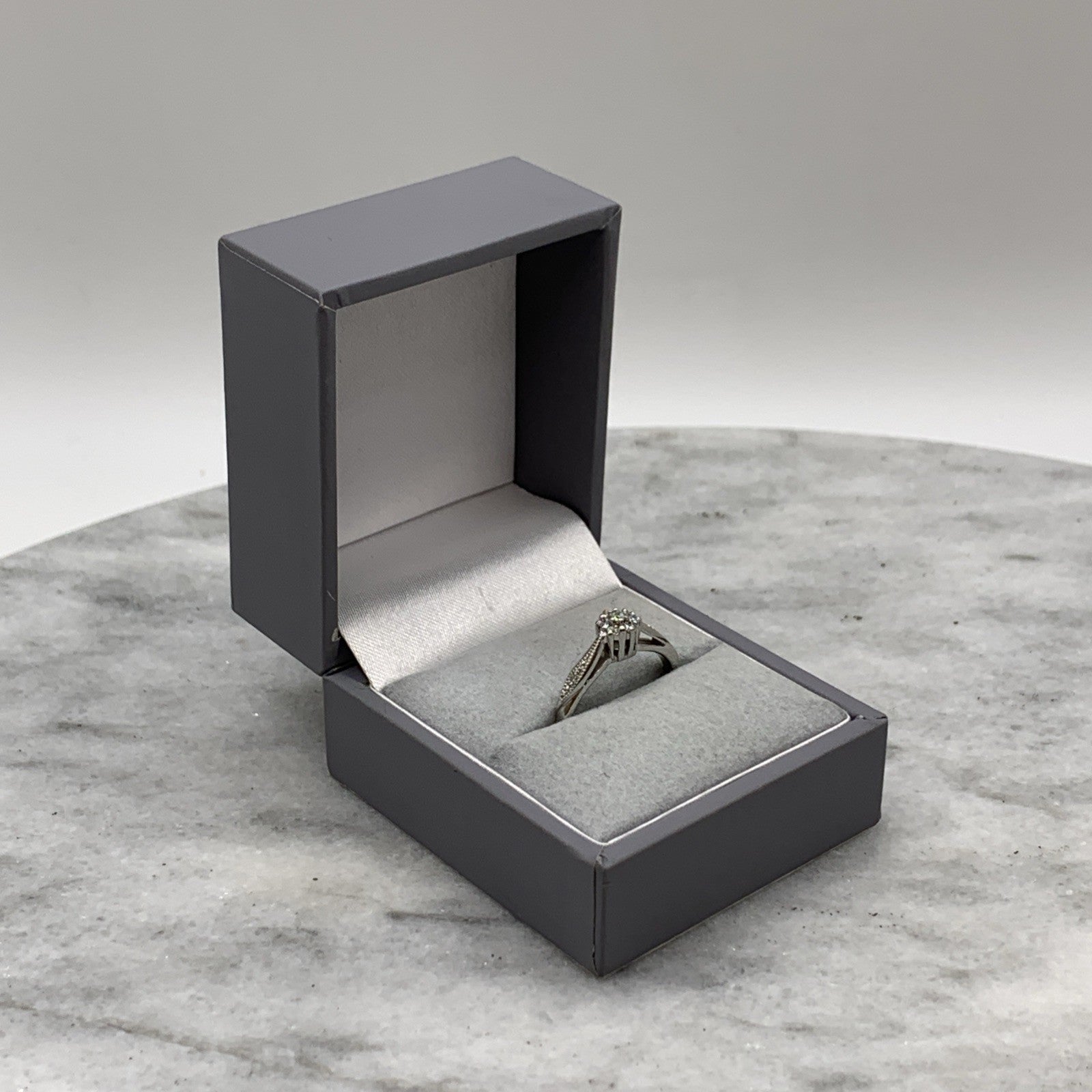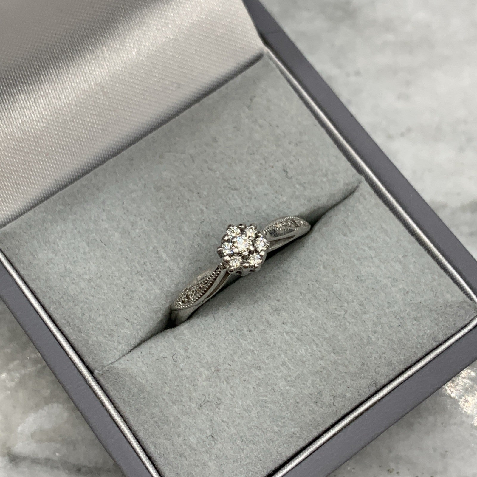 9 ct Gold Diamond Ring Cluster Milgrain Shoulder 375 White Gold - Size M