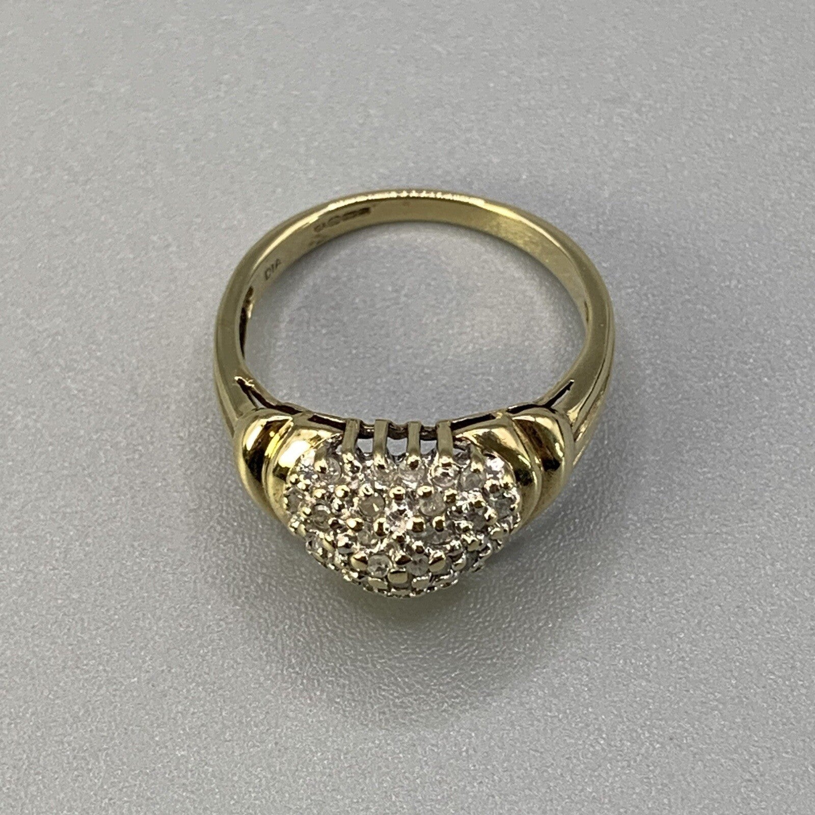 9 ct Gold Diamond Ring Heart Shape Cluster Yellow Gold - Size O
