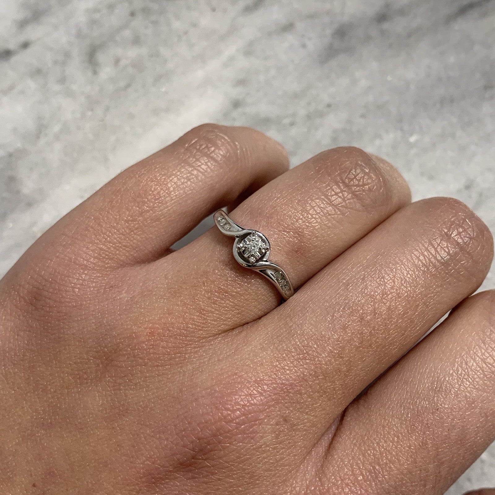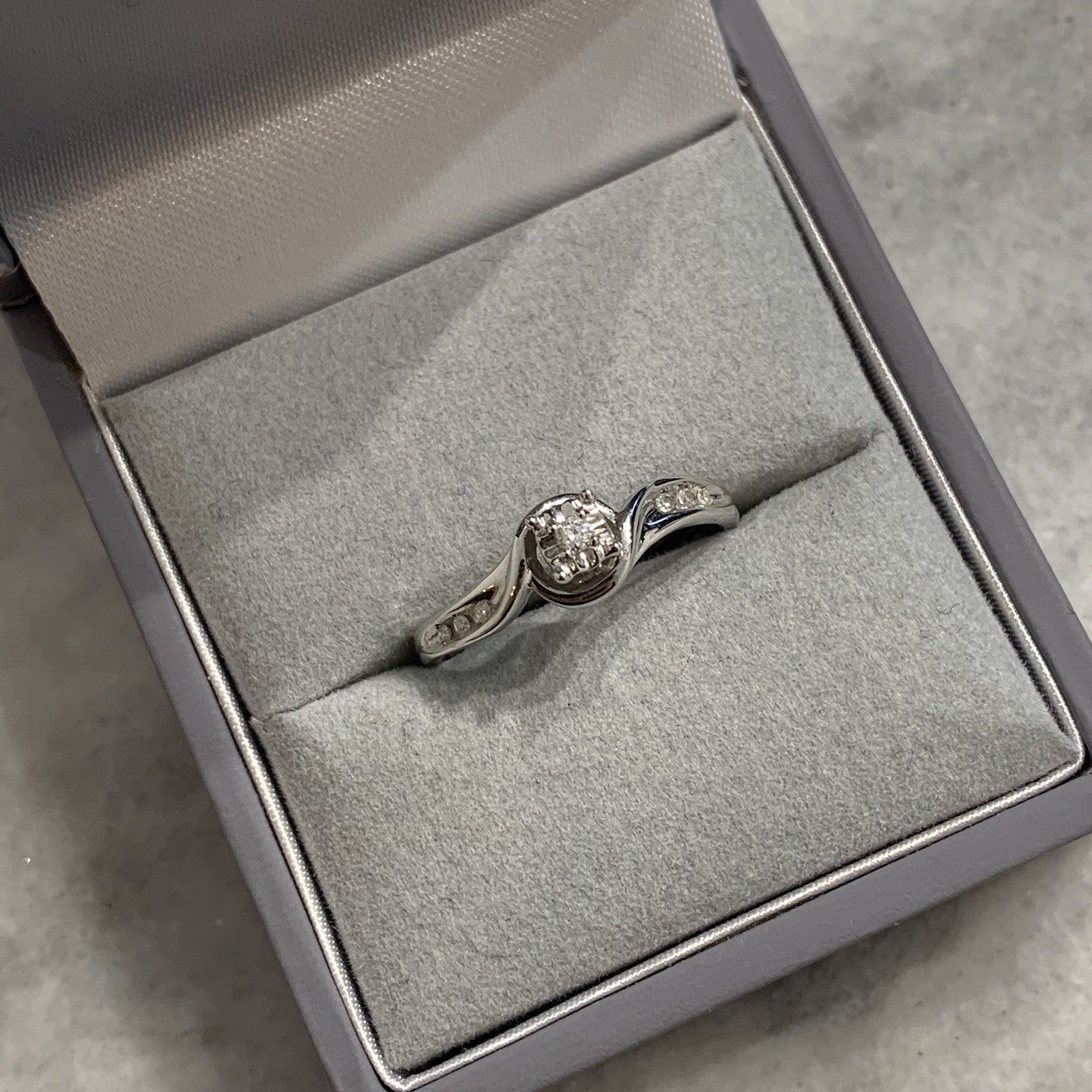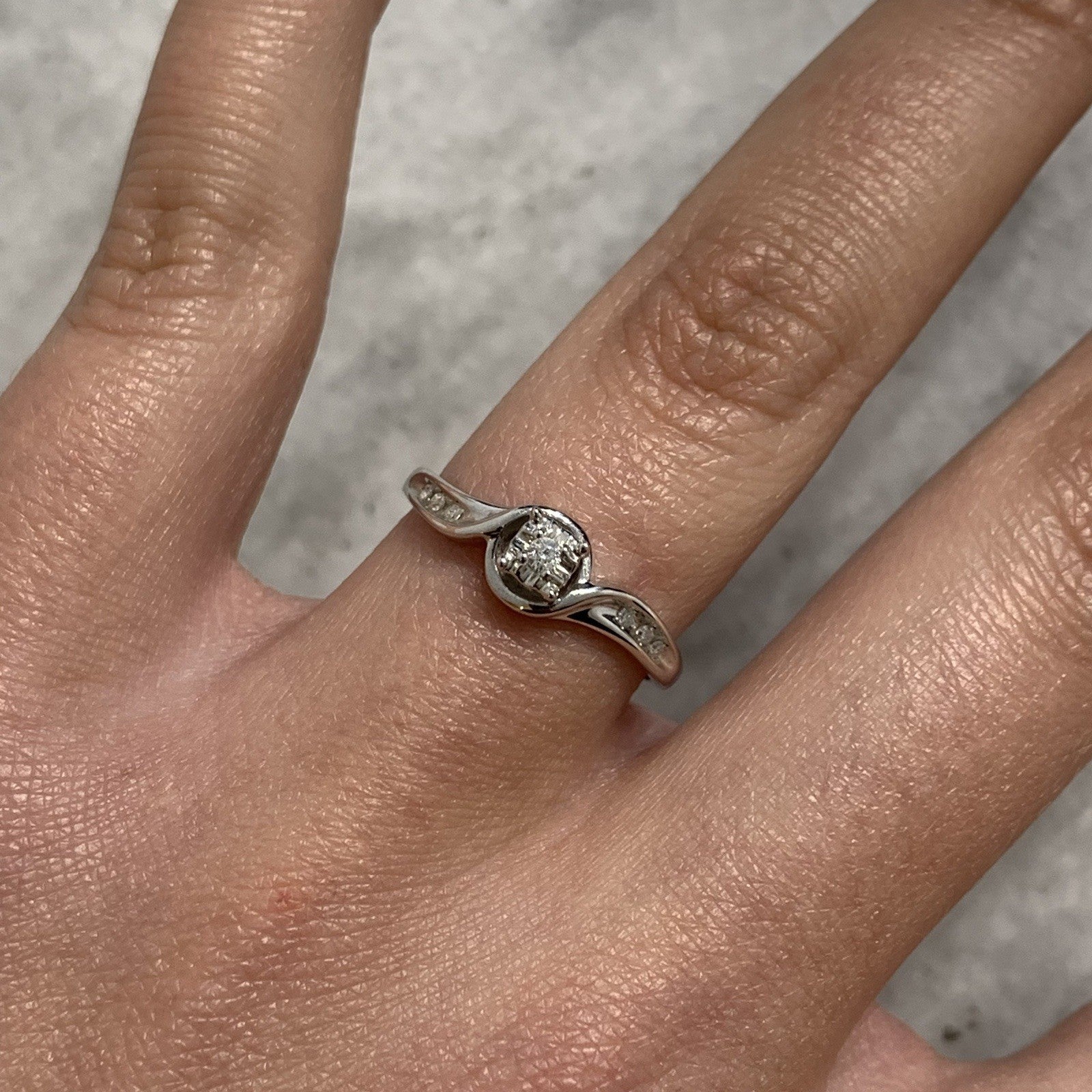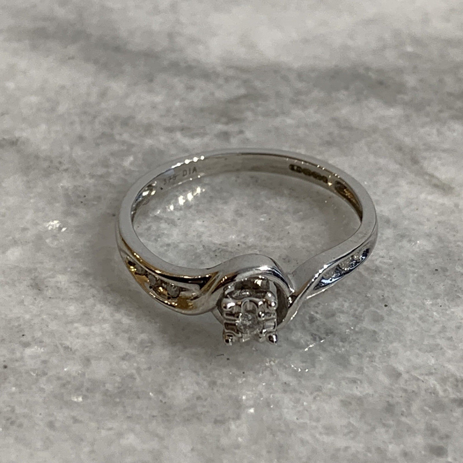 9 ct Gold Diamond Ring Twist Solitaire With Accents 375 White Gold - Size L