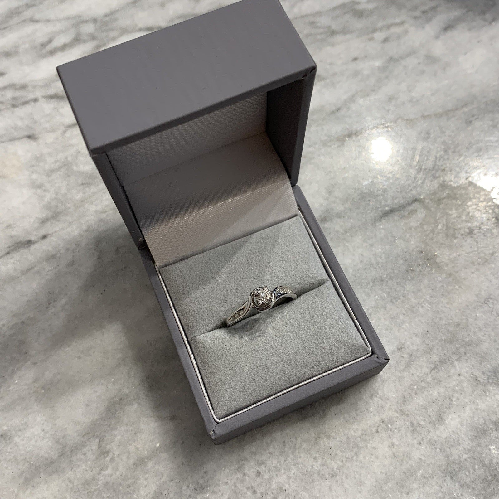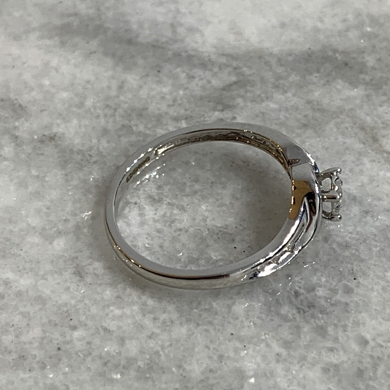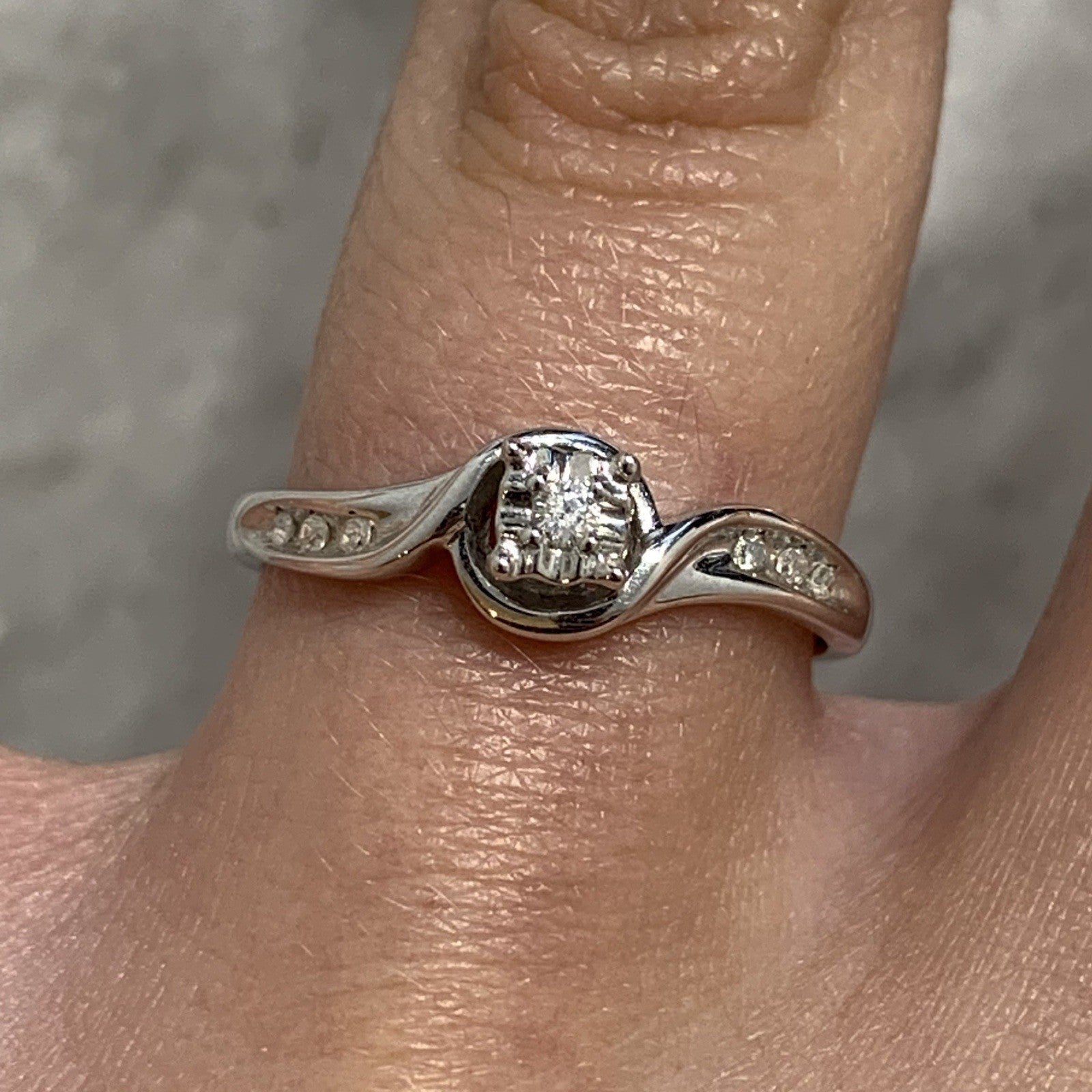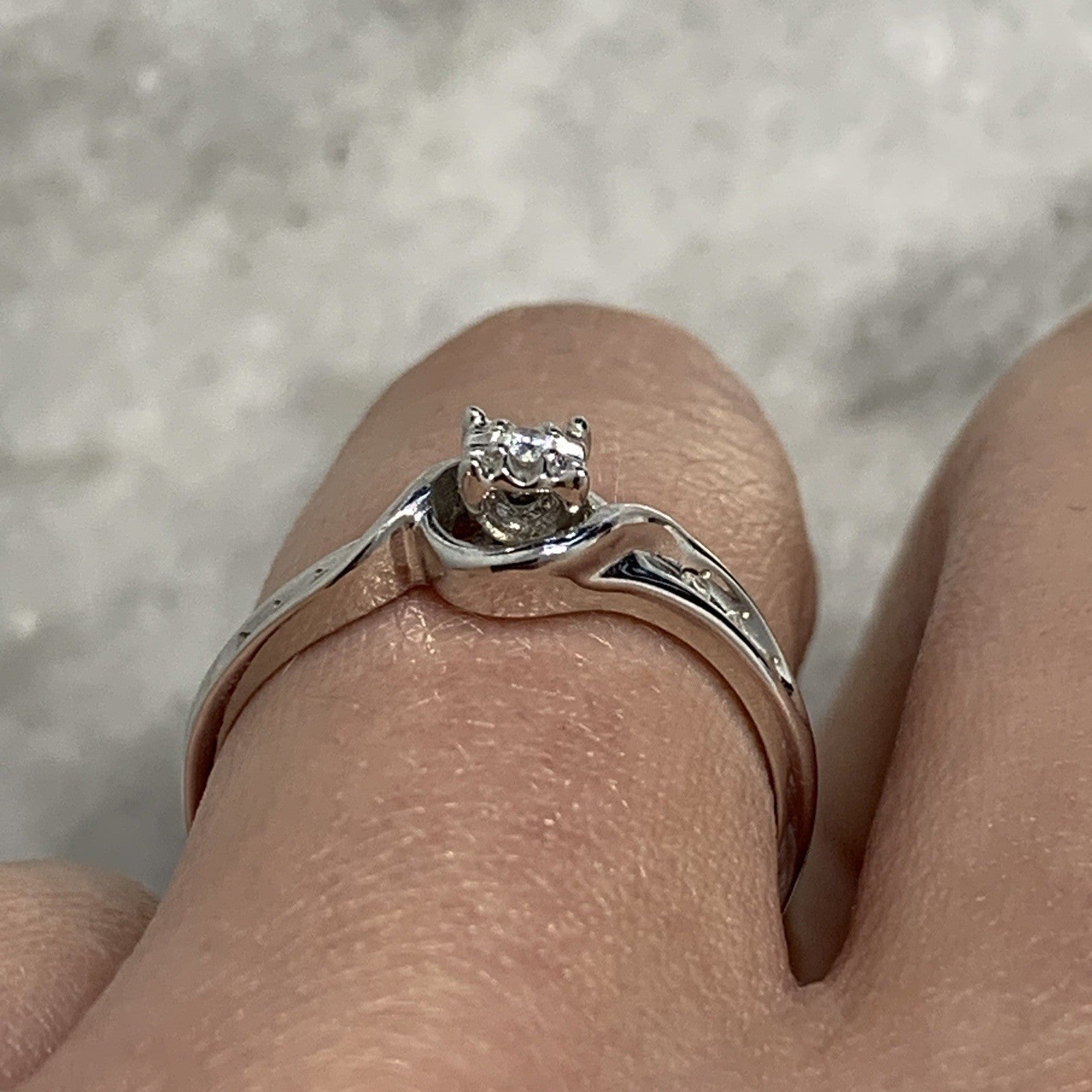 9 ct Gold Diamond Ring Twist Solitaire With Accents 375 White Gold - Size L