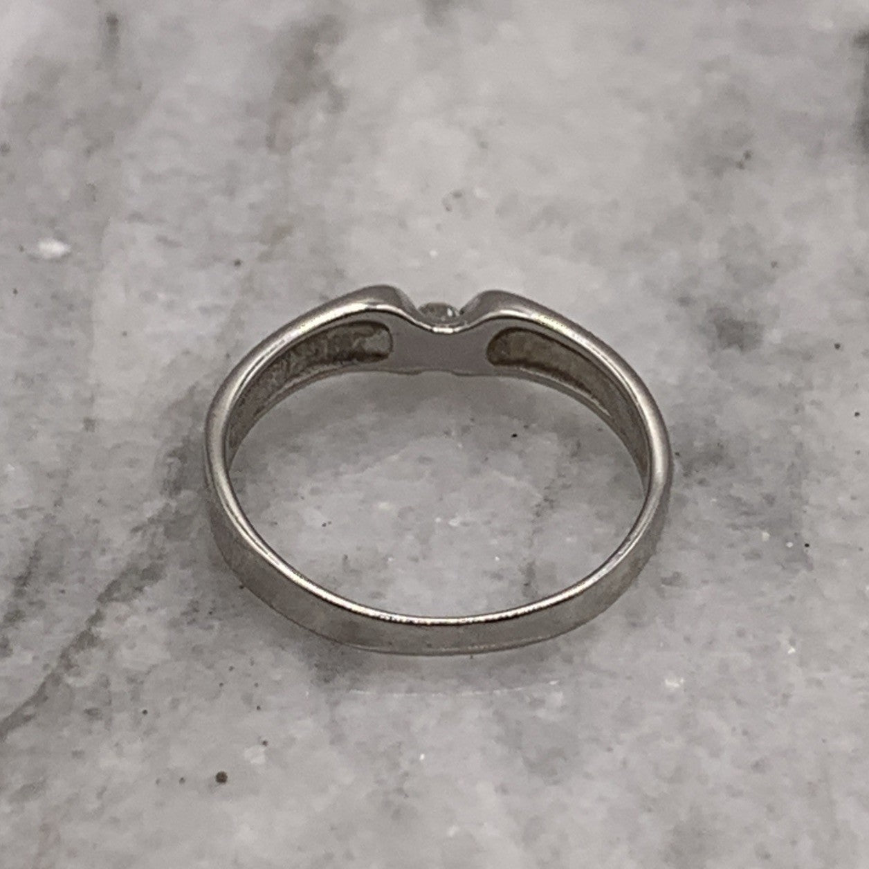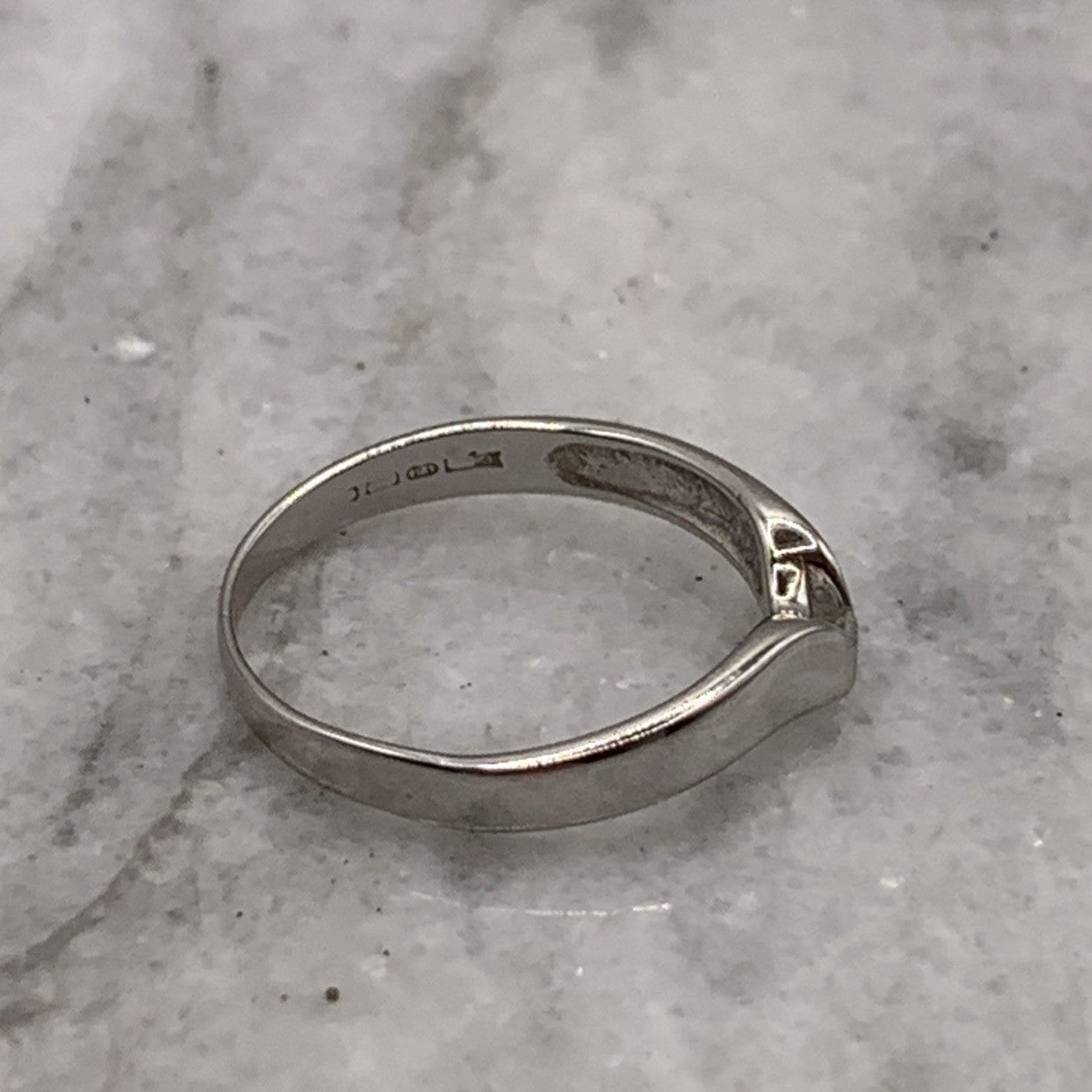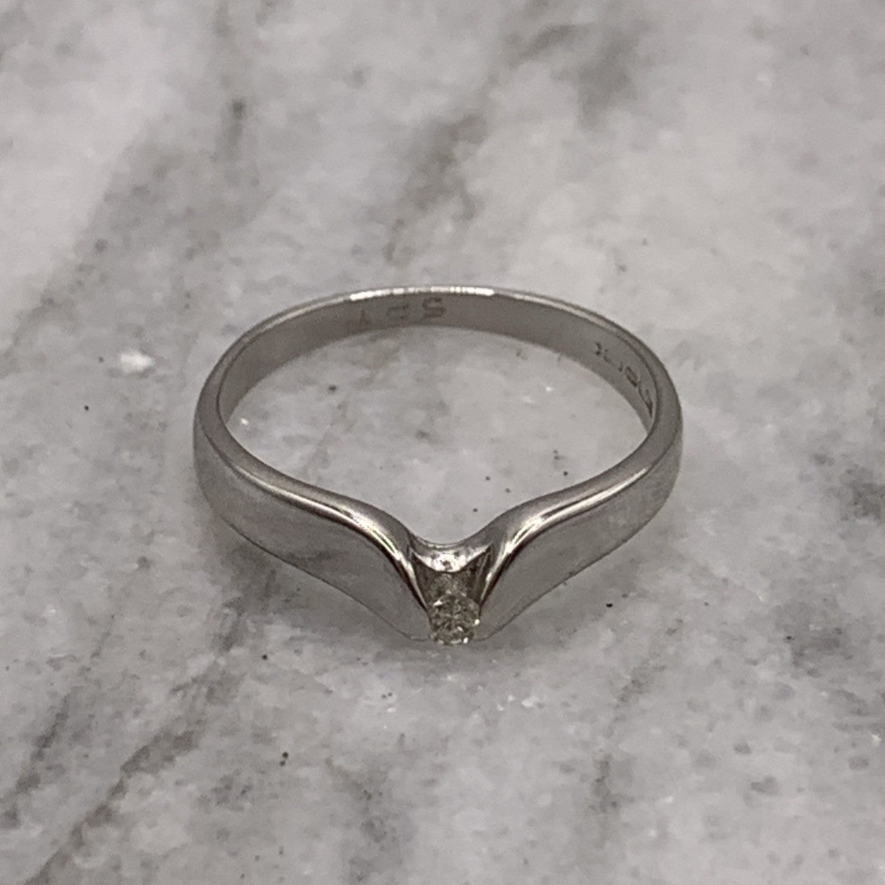 9 ct Gold Diamond Solitaire Wishbone Band Ring 375 White Gold - Size O