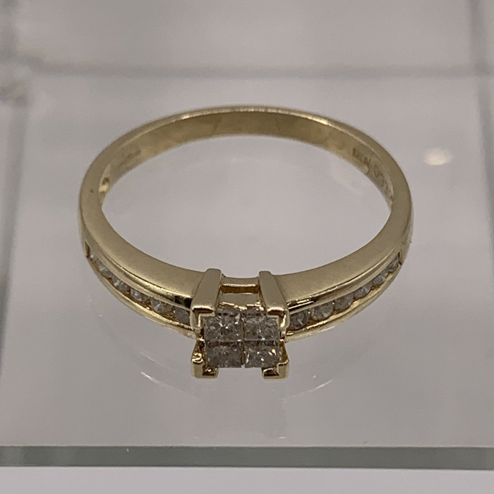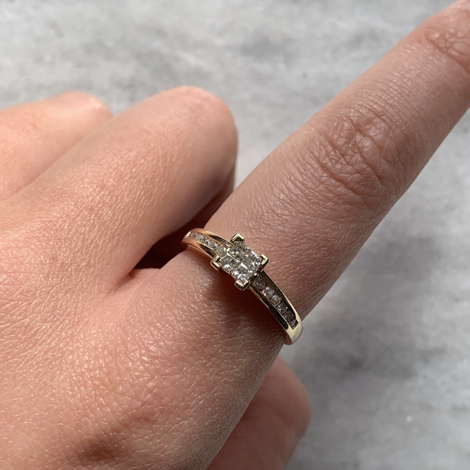 9 ct Gold Diamond Square Cluster .33ct Ring 9ct 9k Yellow Gold - Size P