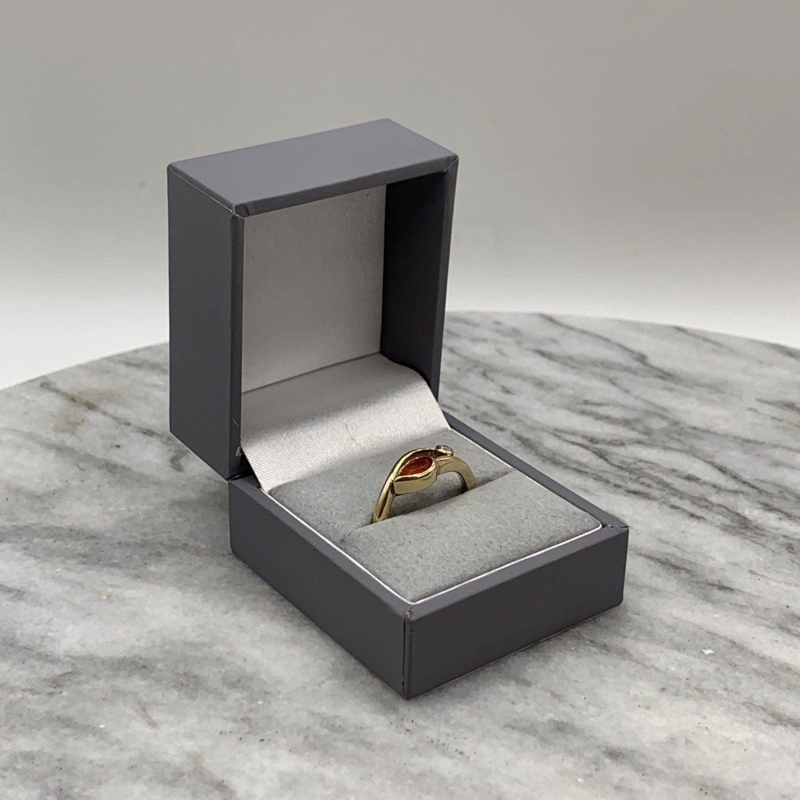 9 ct Gold Fire Opal & Diamond .05ct Ring 375 9k Yellow Gold- Size N 1/2