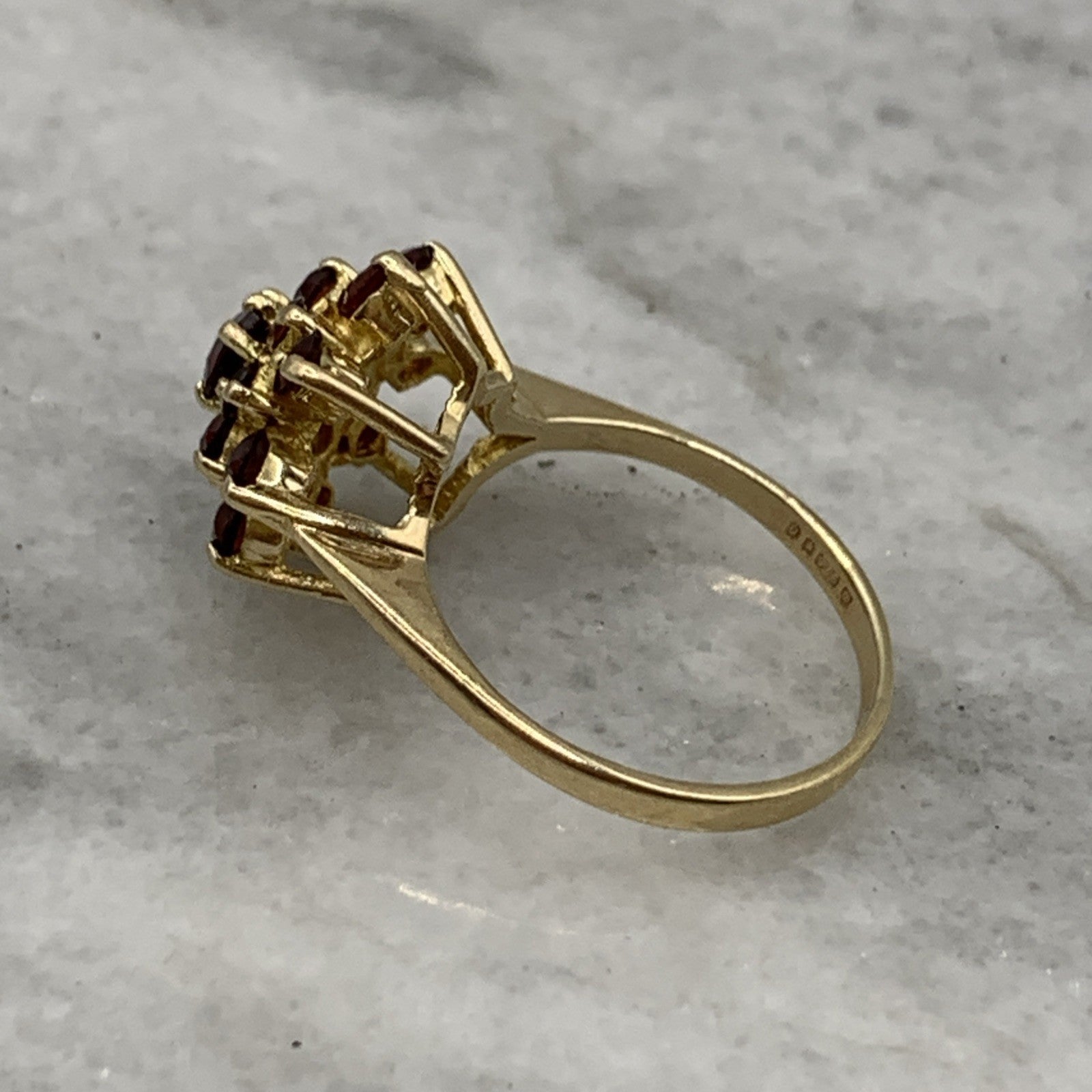 9 ct Gold Garnet Flower Cluster Ring 375 Yellow Gold - Size L