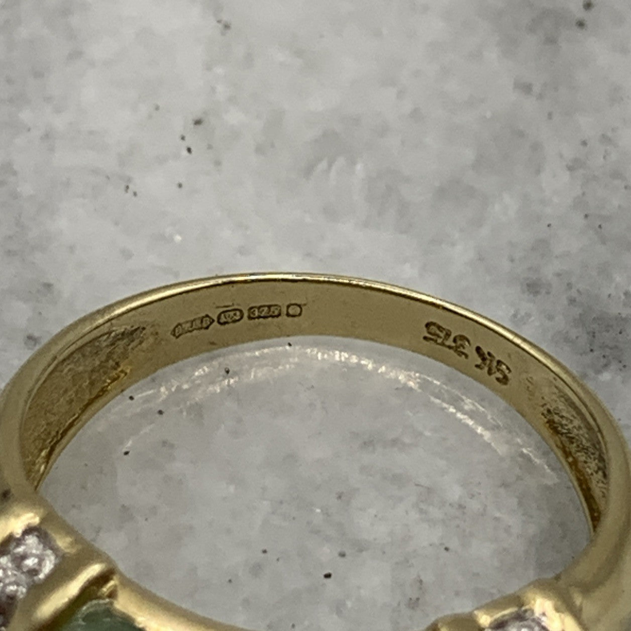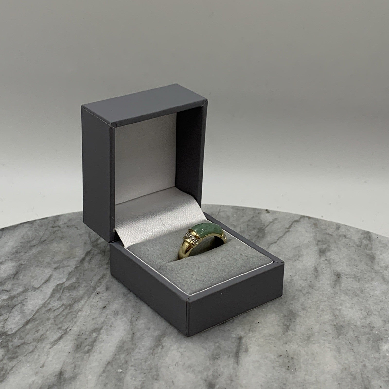 9 ct Gold Jade Diamond Ring Band of 375 Yellow Gold - Size M 1/2