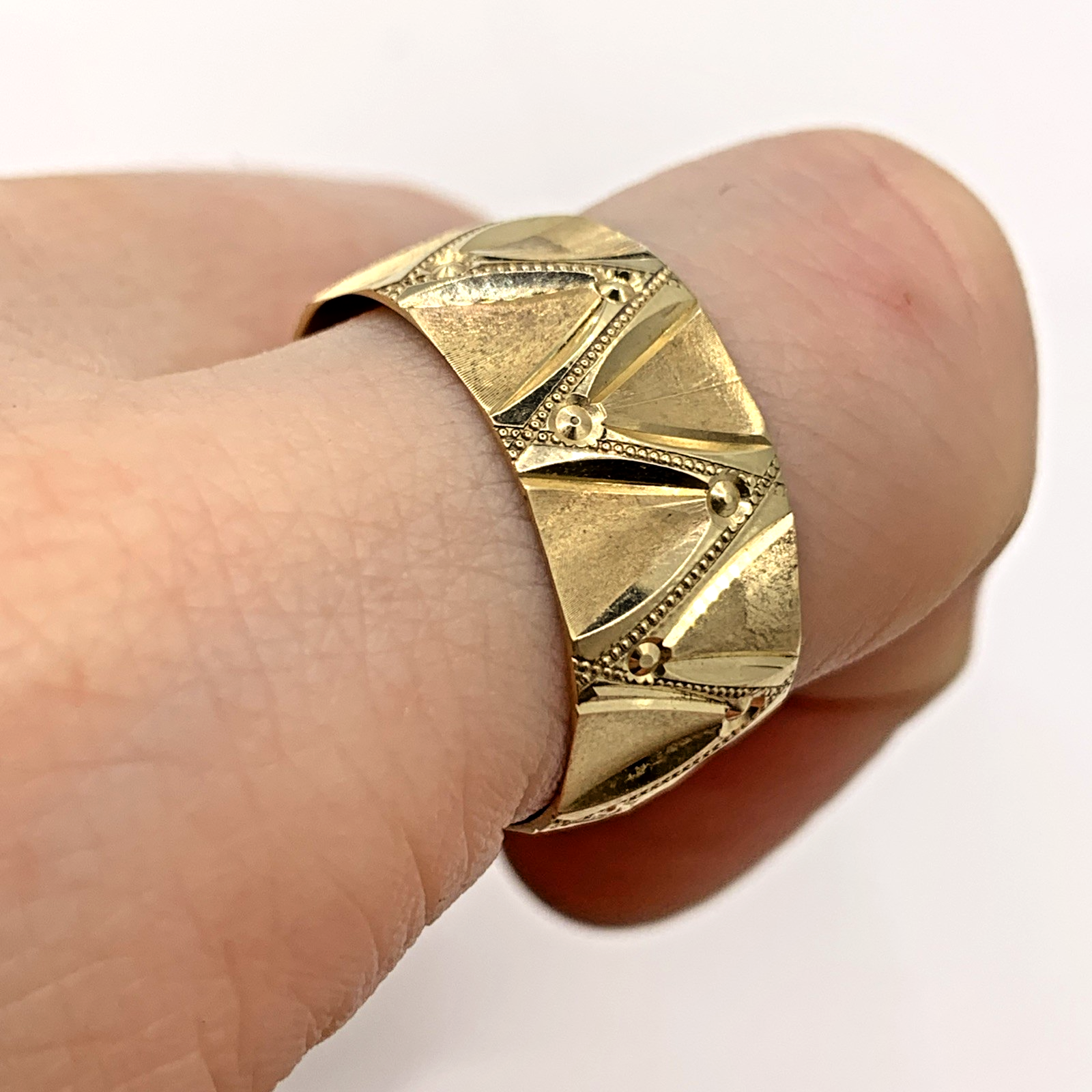 9 ct Gold Patterned Band Ring 9ct 9k 375 Yellow Gold - Size U 1/2