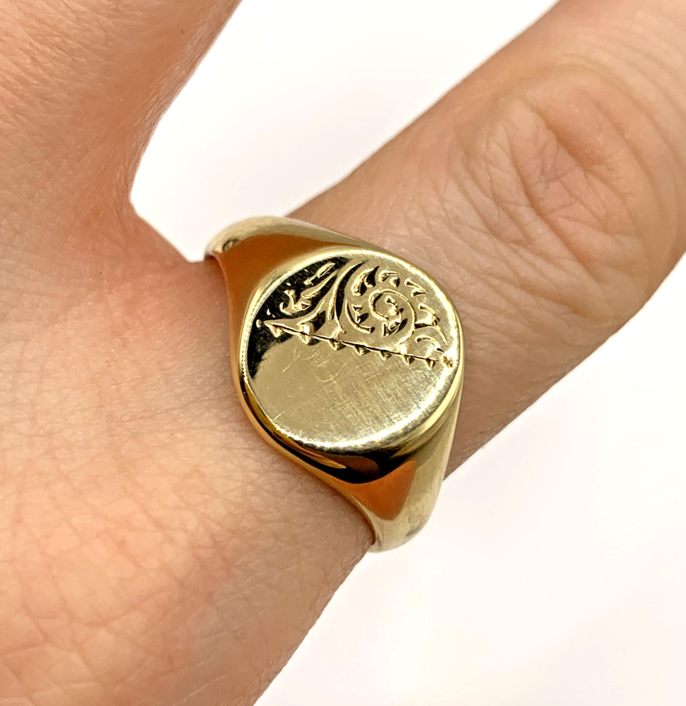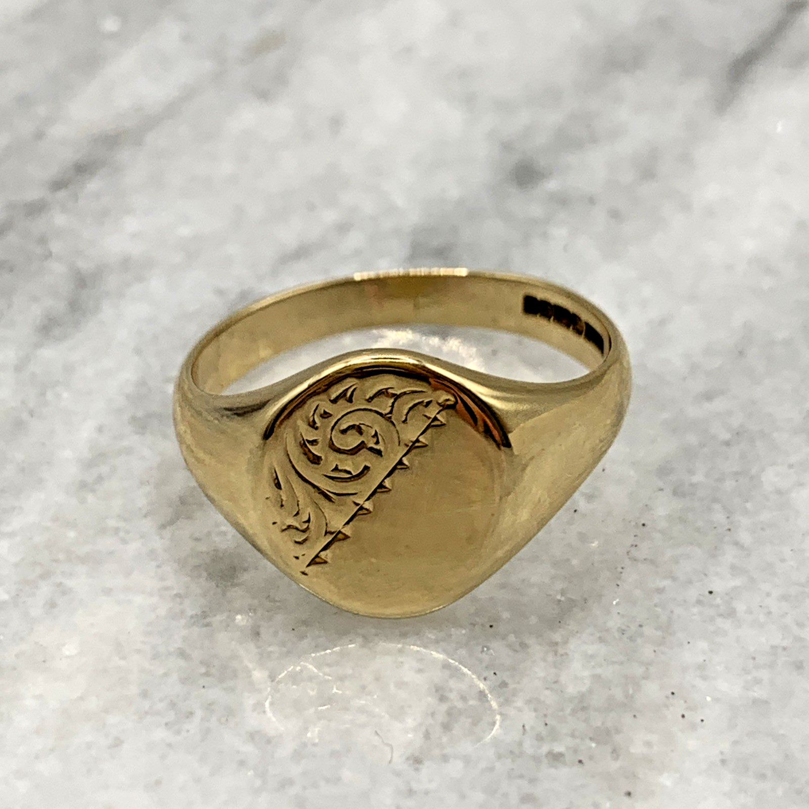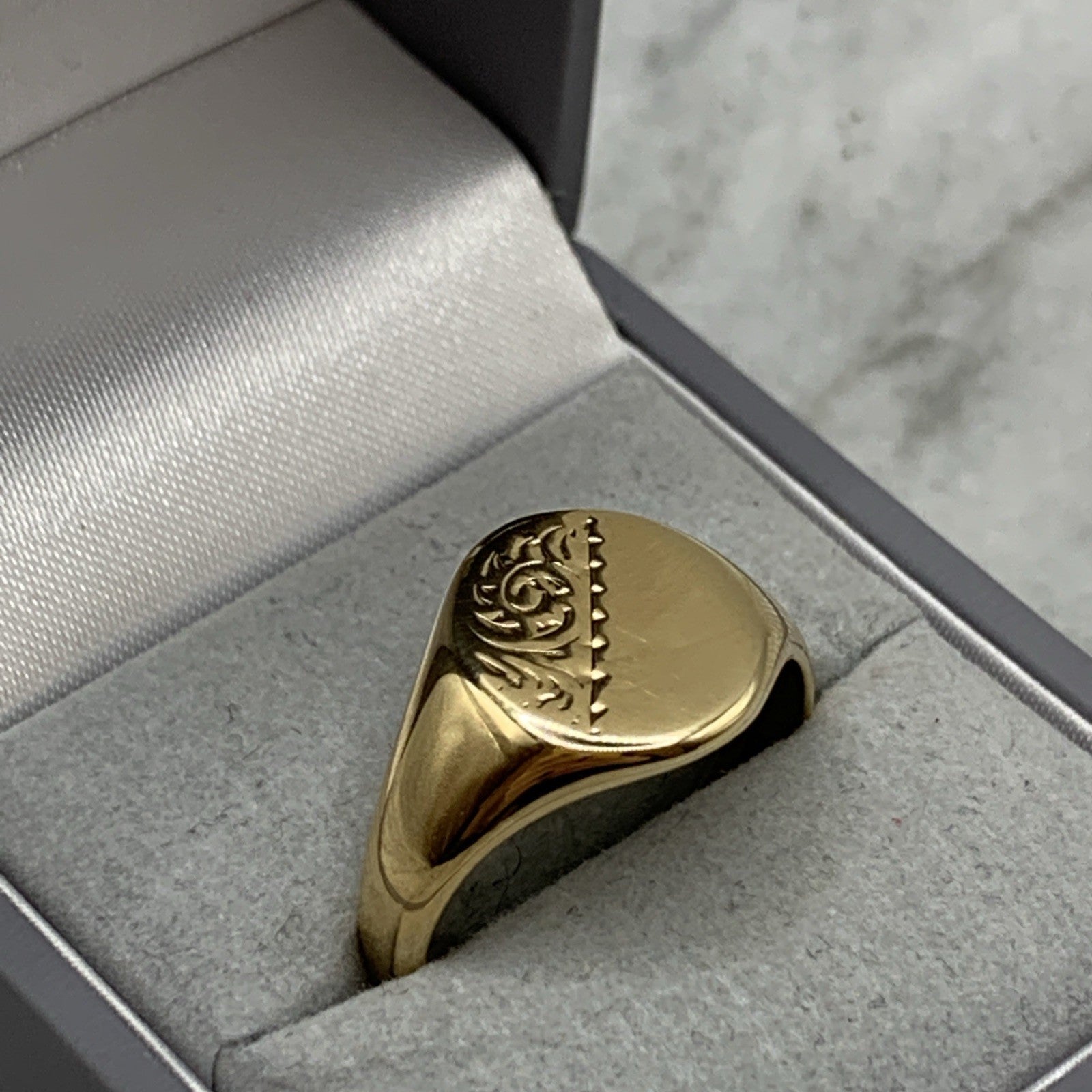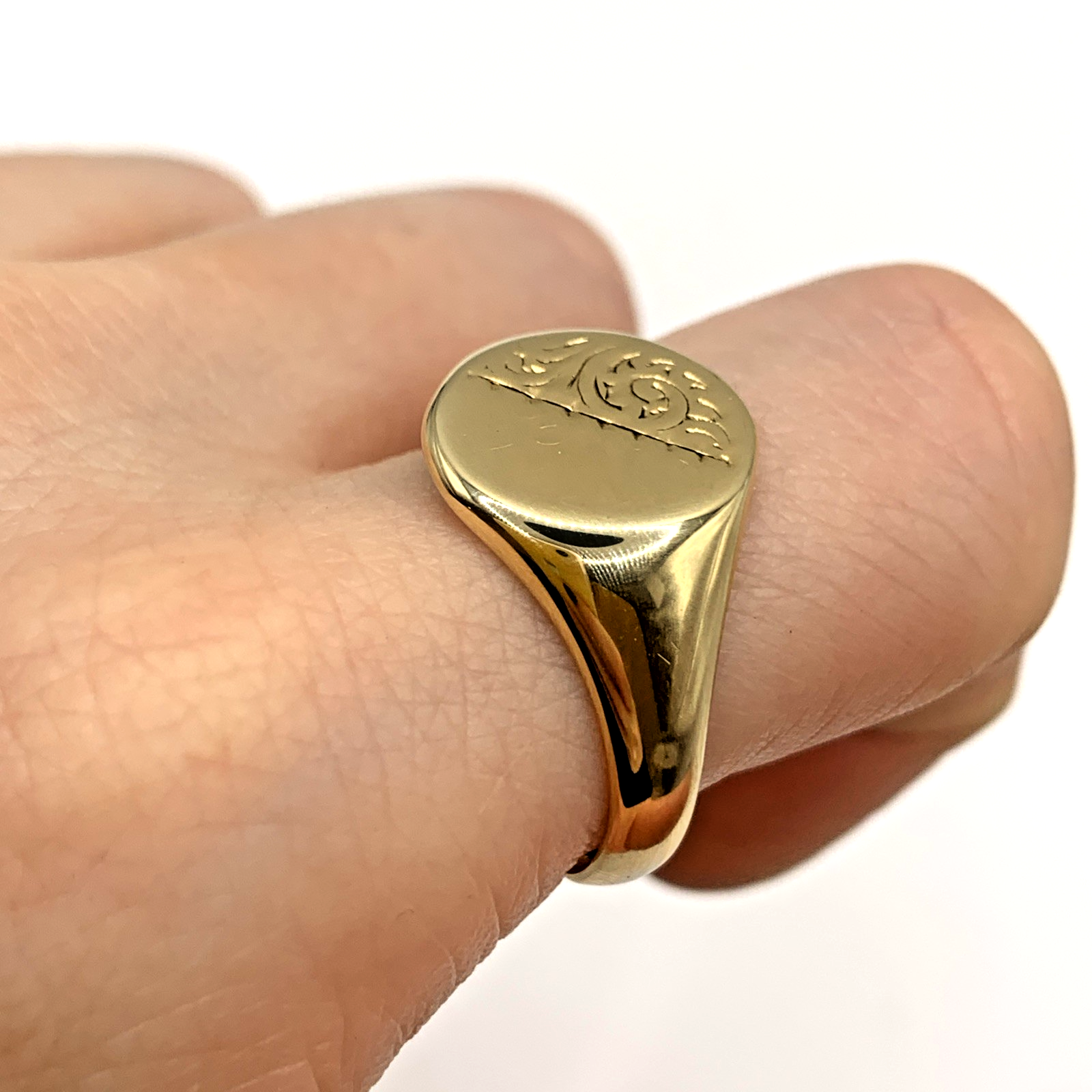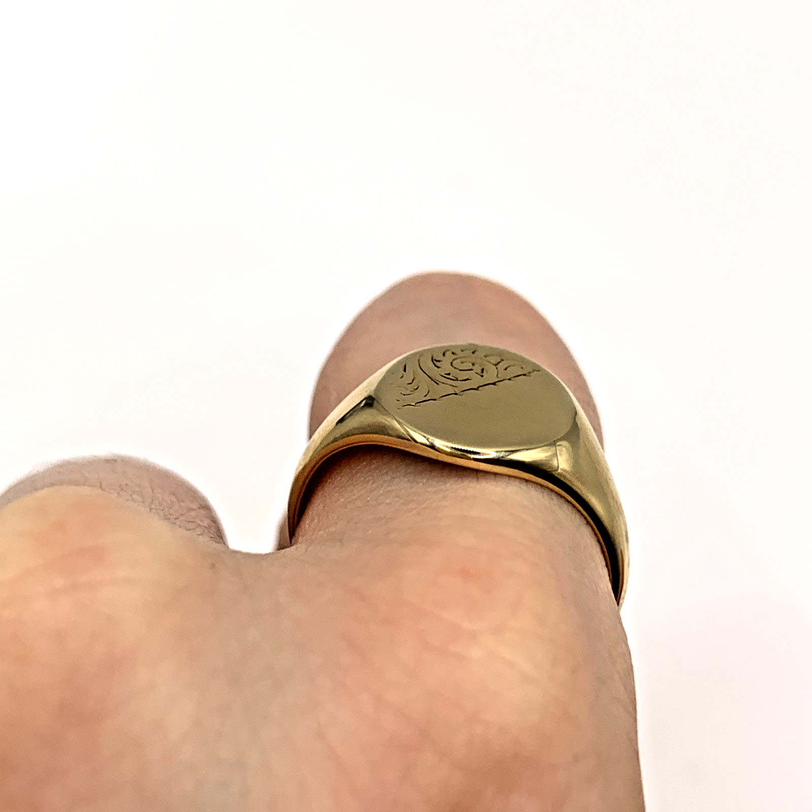 9 ct Gold Patterned Oval Signet Ring 9k 9ct Yellow Gold - Size V