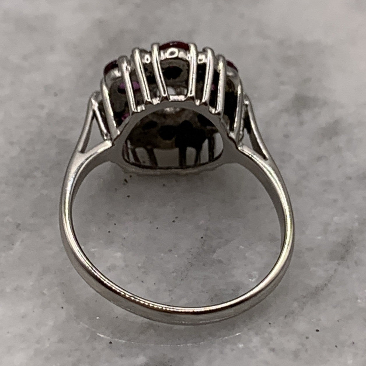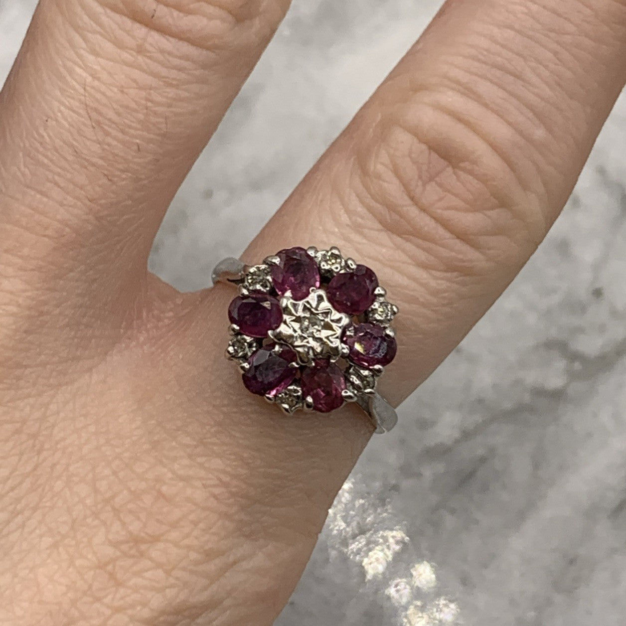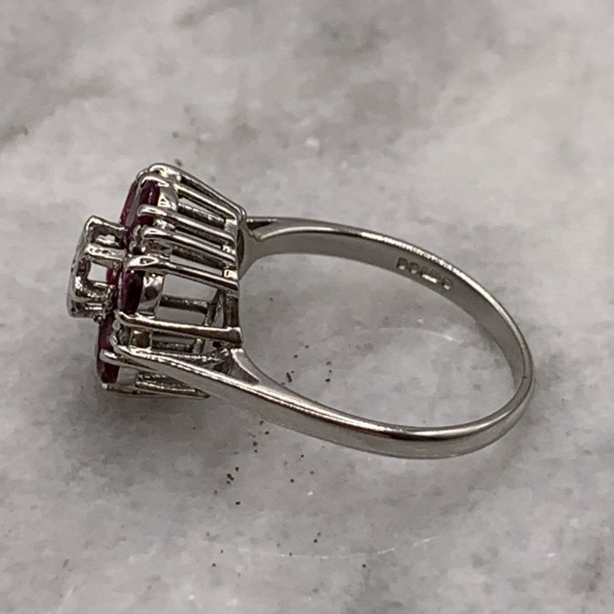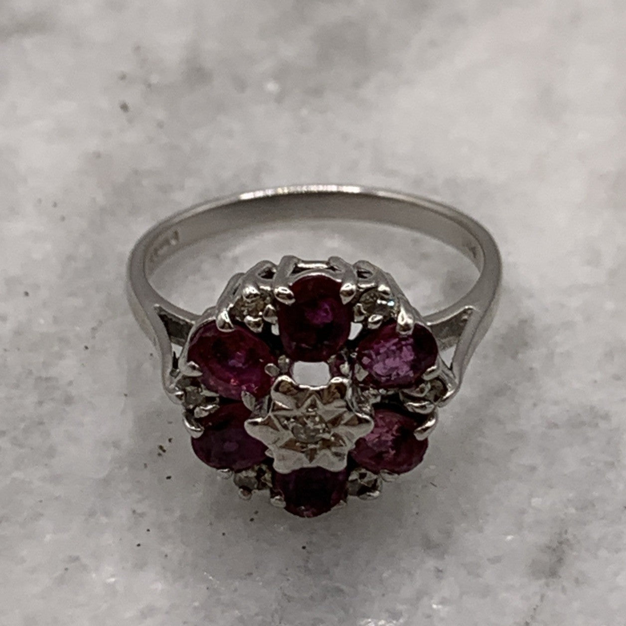 9 ct Gold Pink Sapphire & Diamond Cluster Ring 375 White Gold - Size N 1/2
