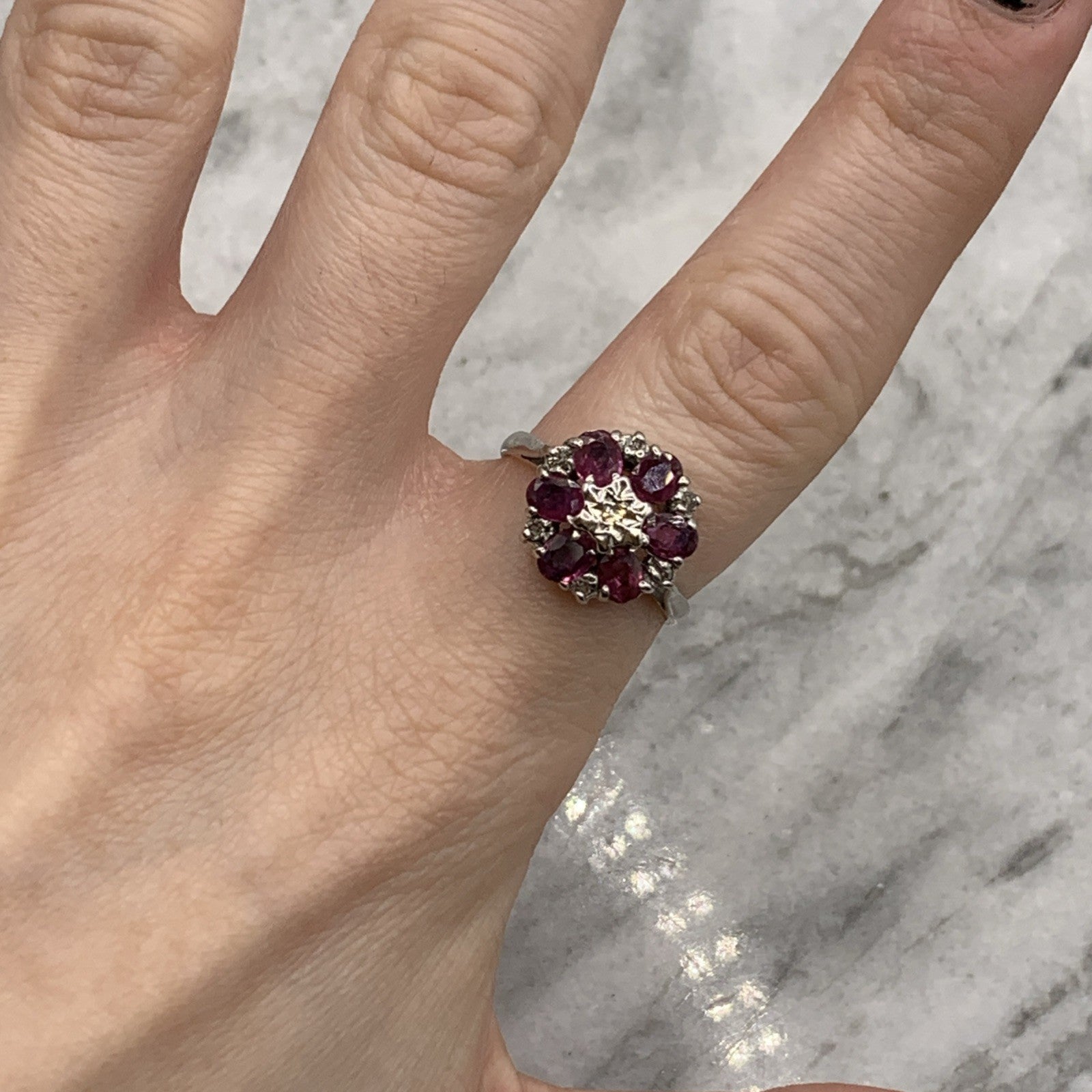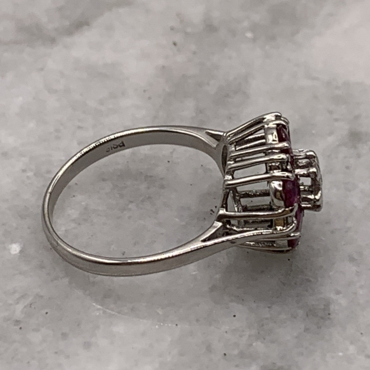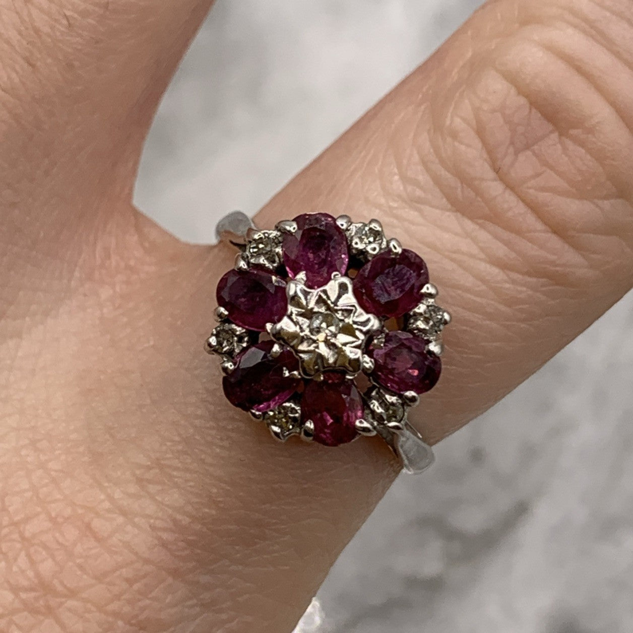 9 ct Gold Pink Sapphire & Diamond Cluster Ring 375 White Gold - Size N 1/2