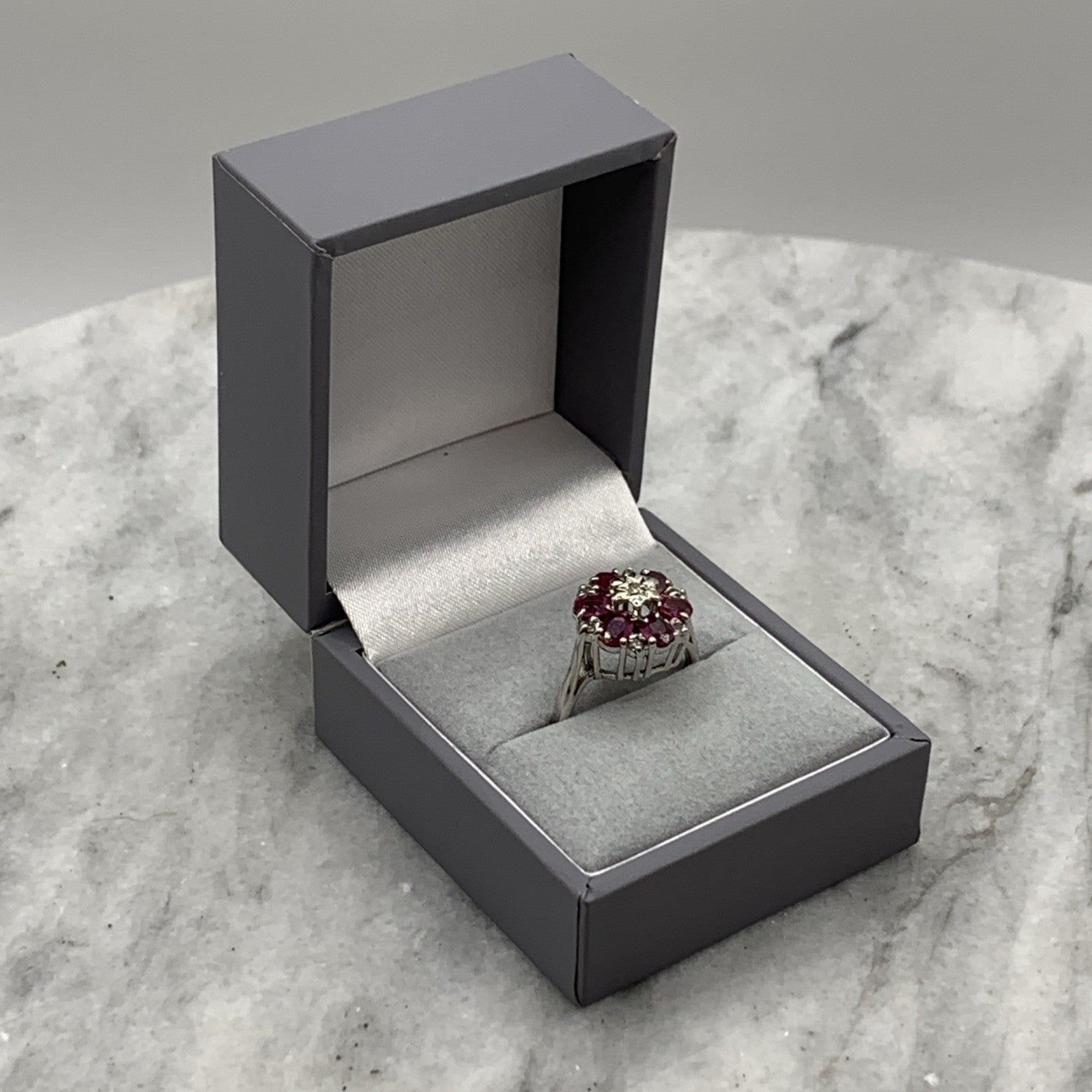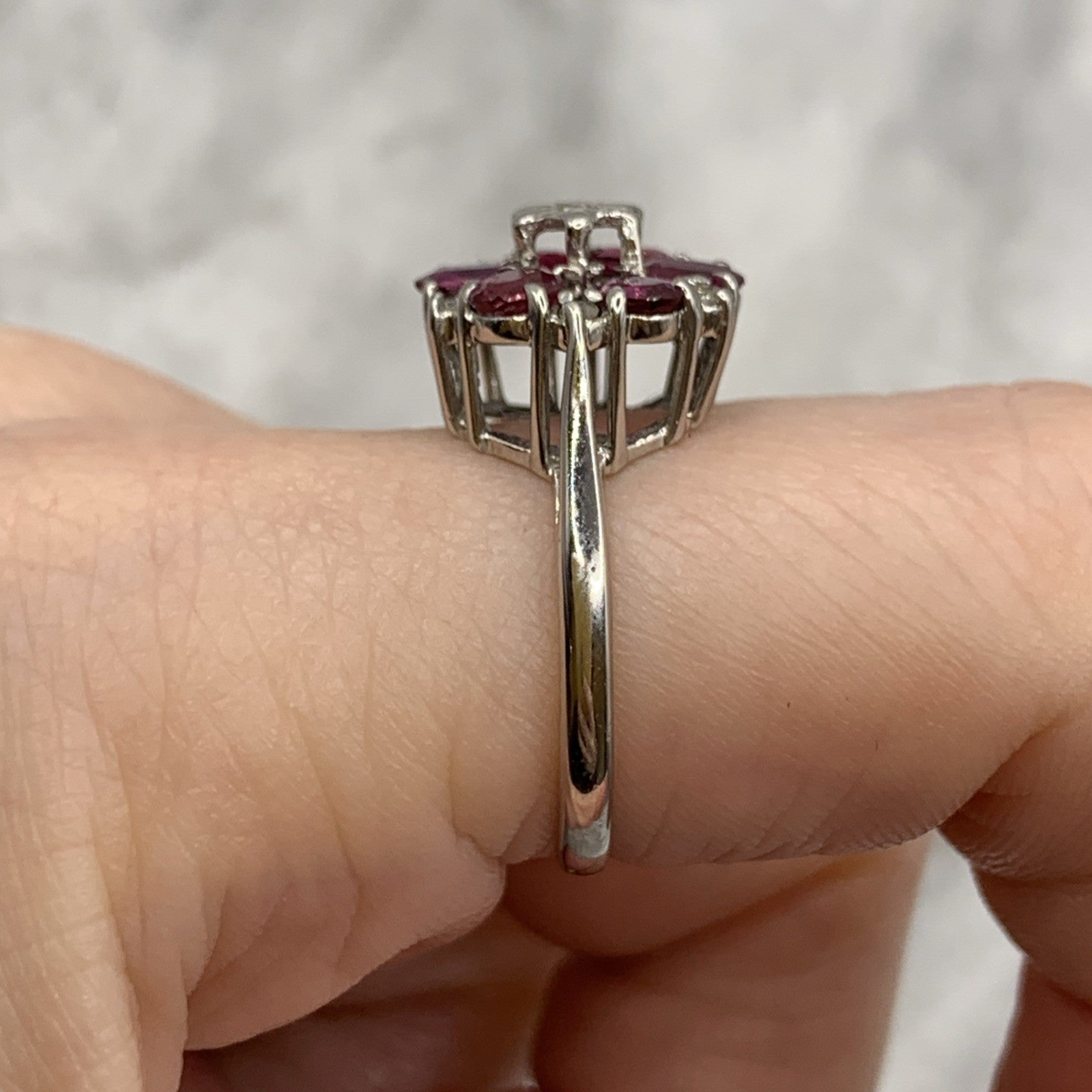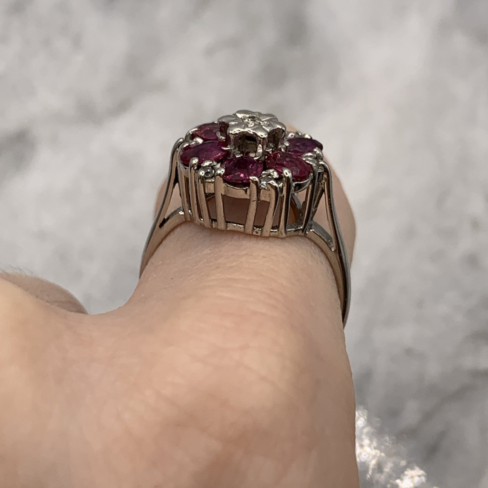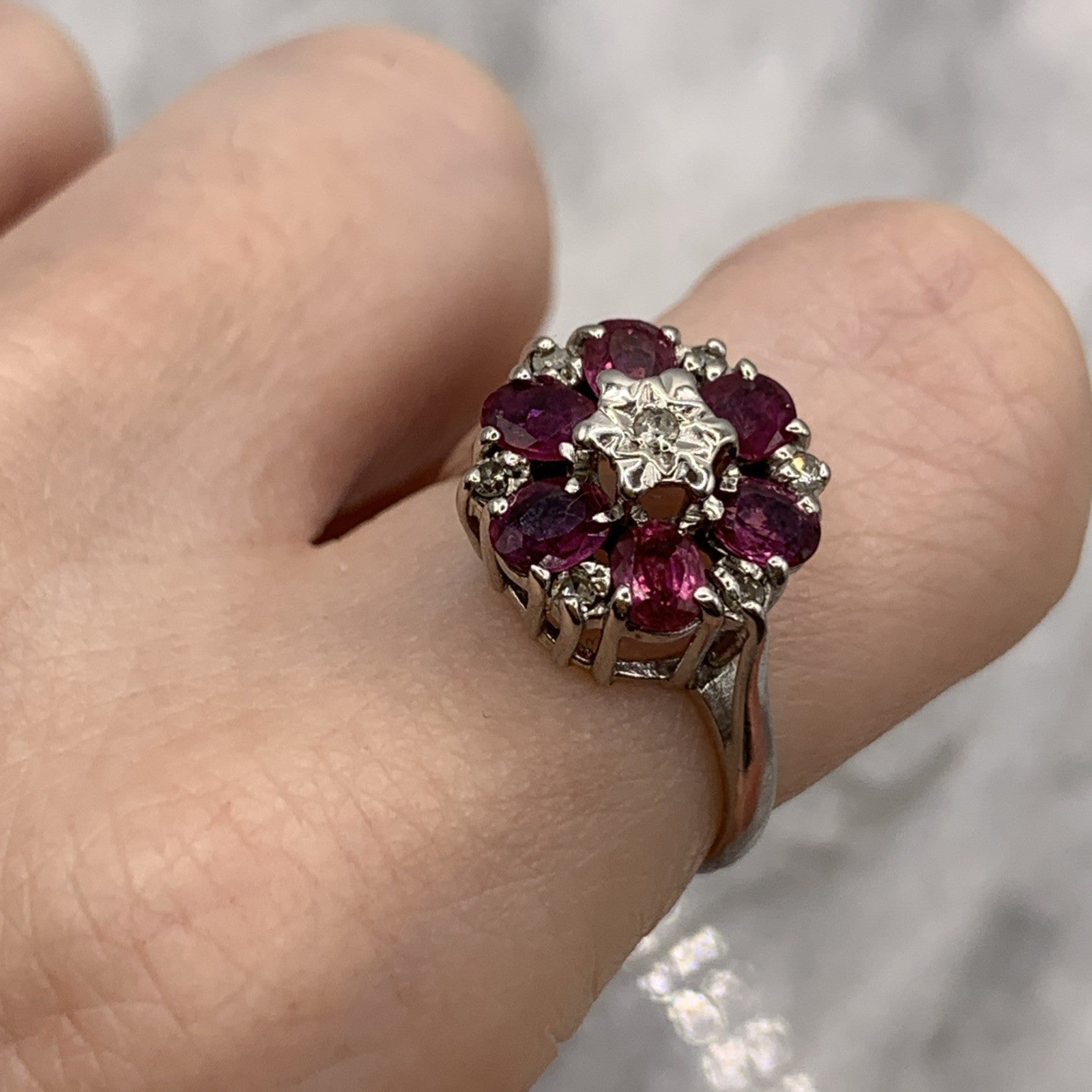 9 ct Gold Pink Sapphire & Diamond Cluster Ring 375 White Gold - Size N 1/2