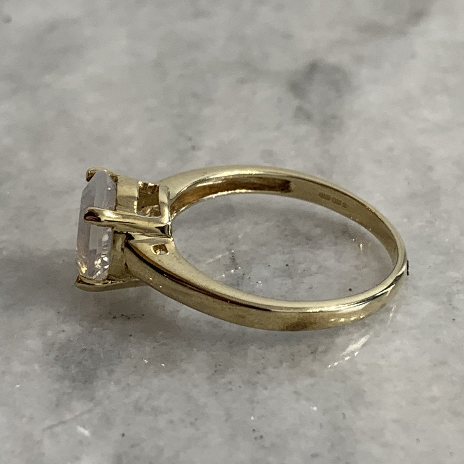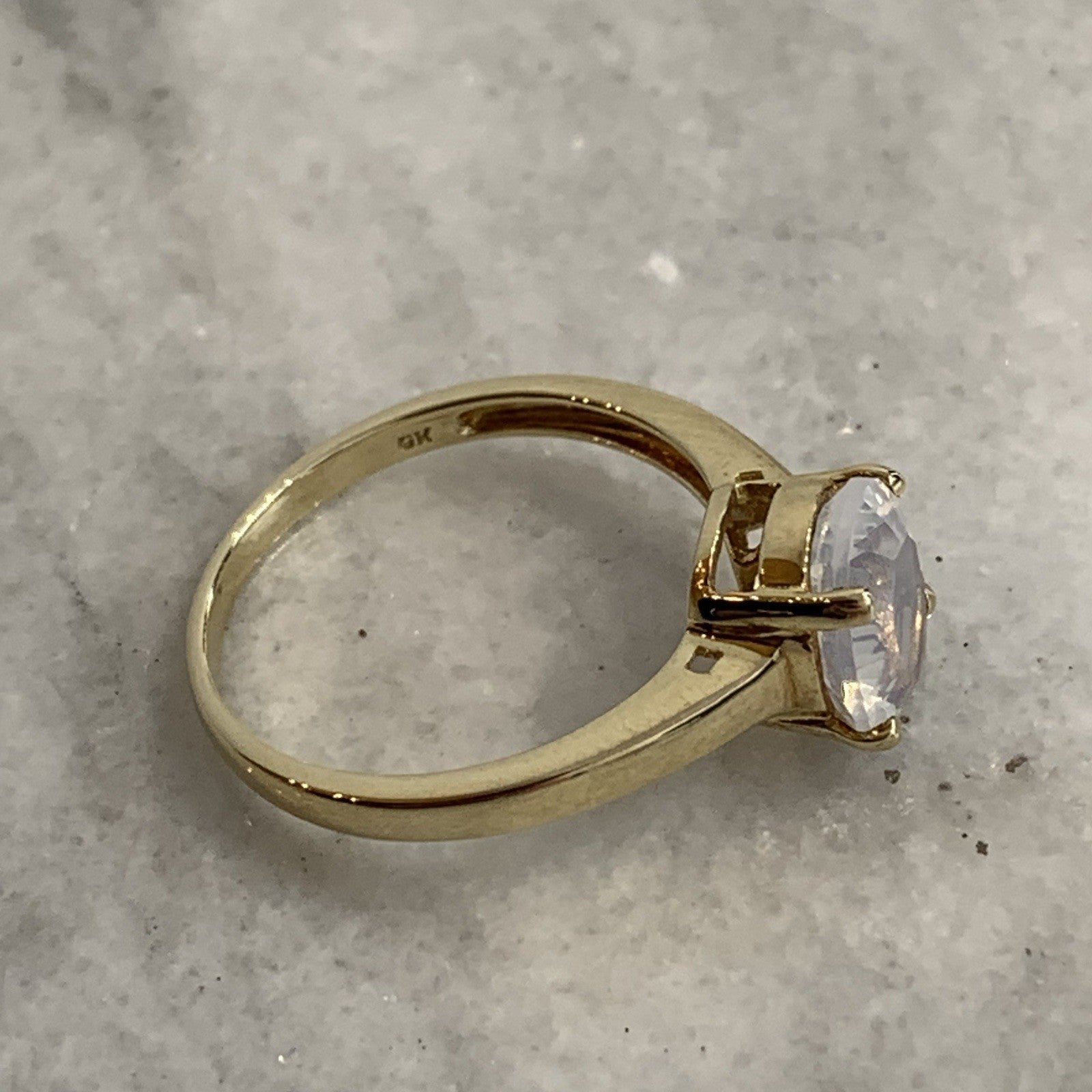9 ct Gold Ring Blue Moon Quartz 1.5ct Solitaire Band of 375 Yellow Gold - Size N