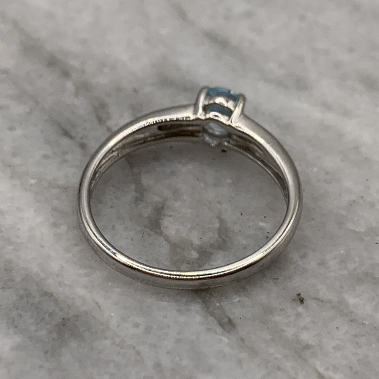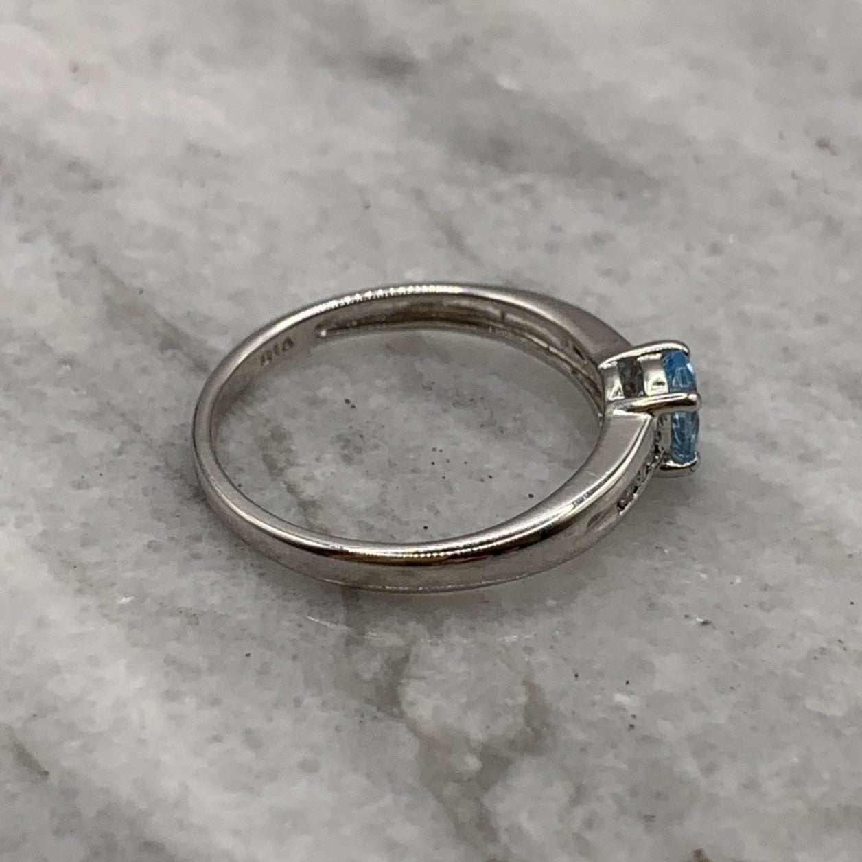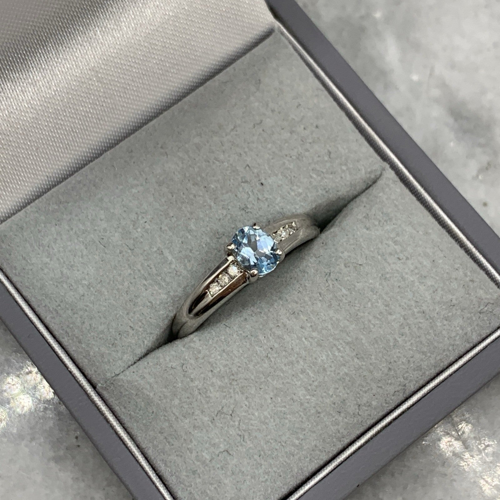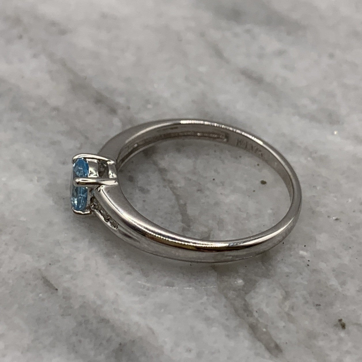 9 ct Gold Ring Blue Topaz & Diamond Channel Set in 375 White Gold - Size K 1/2