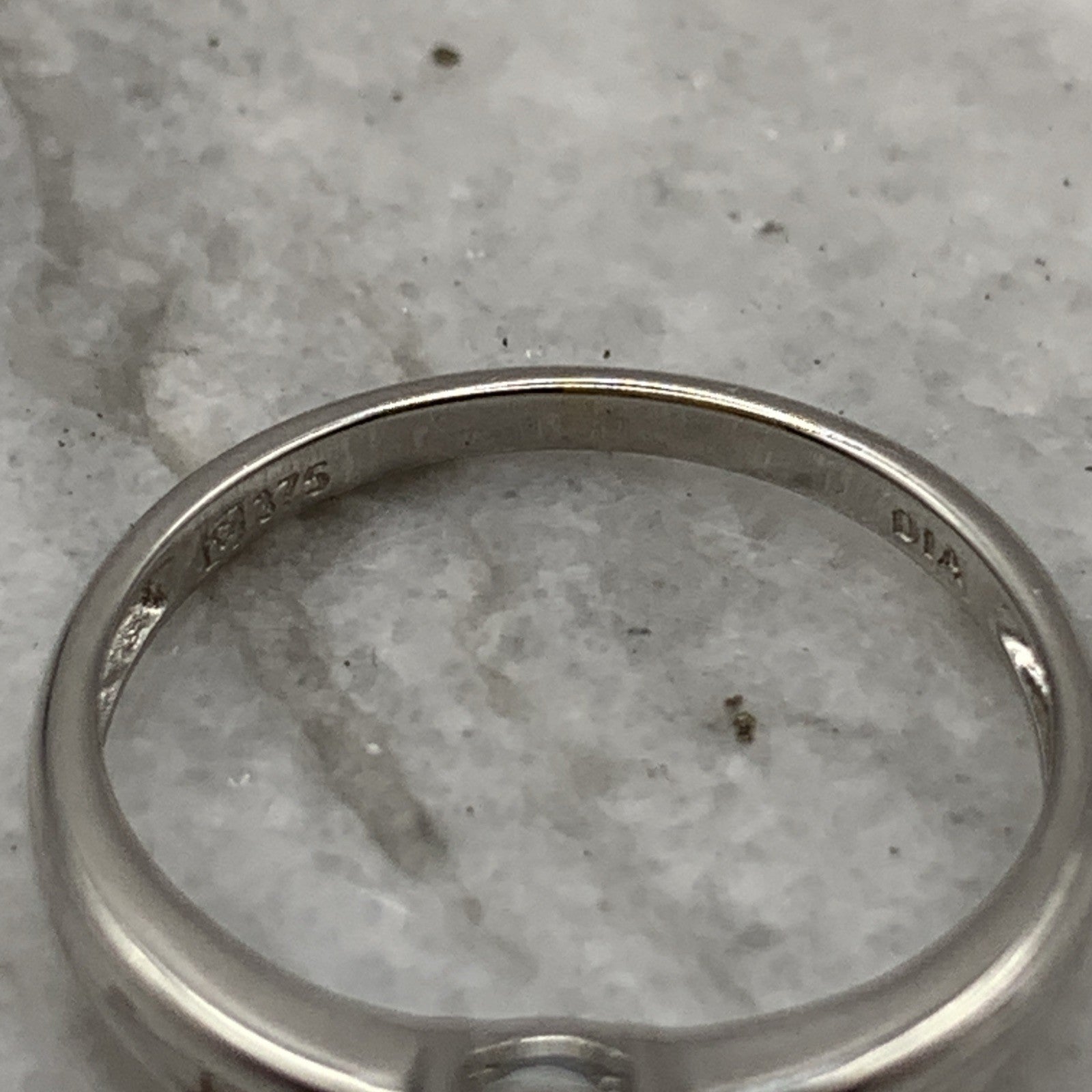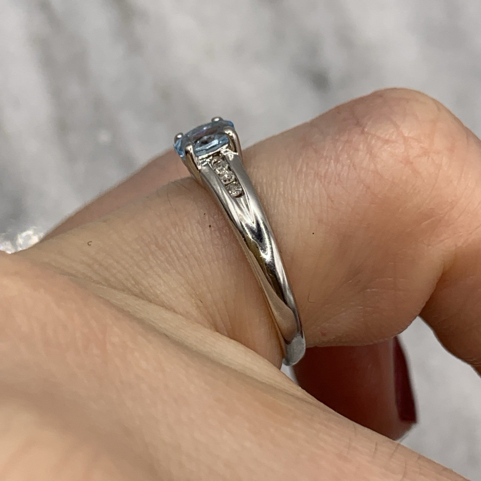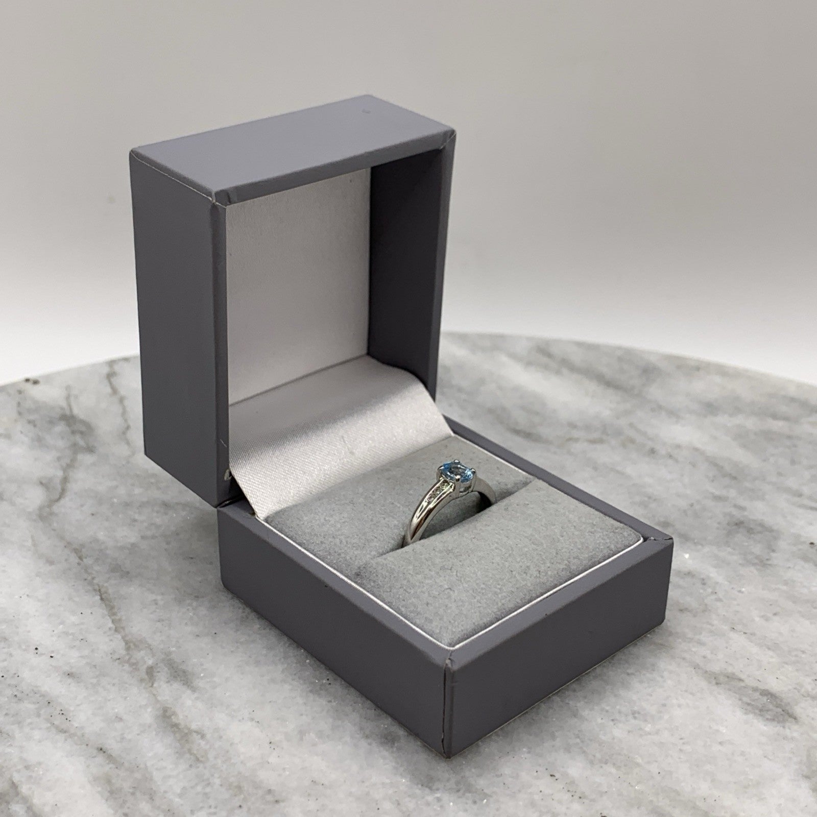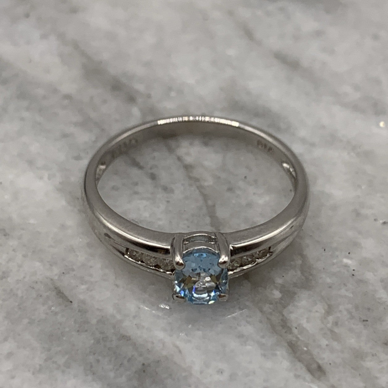 9 ct Gold Ring Blue Topaz & Diamond Channel Set in 375 White Gold - Size K 1/2