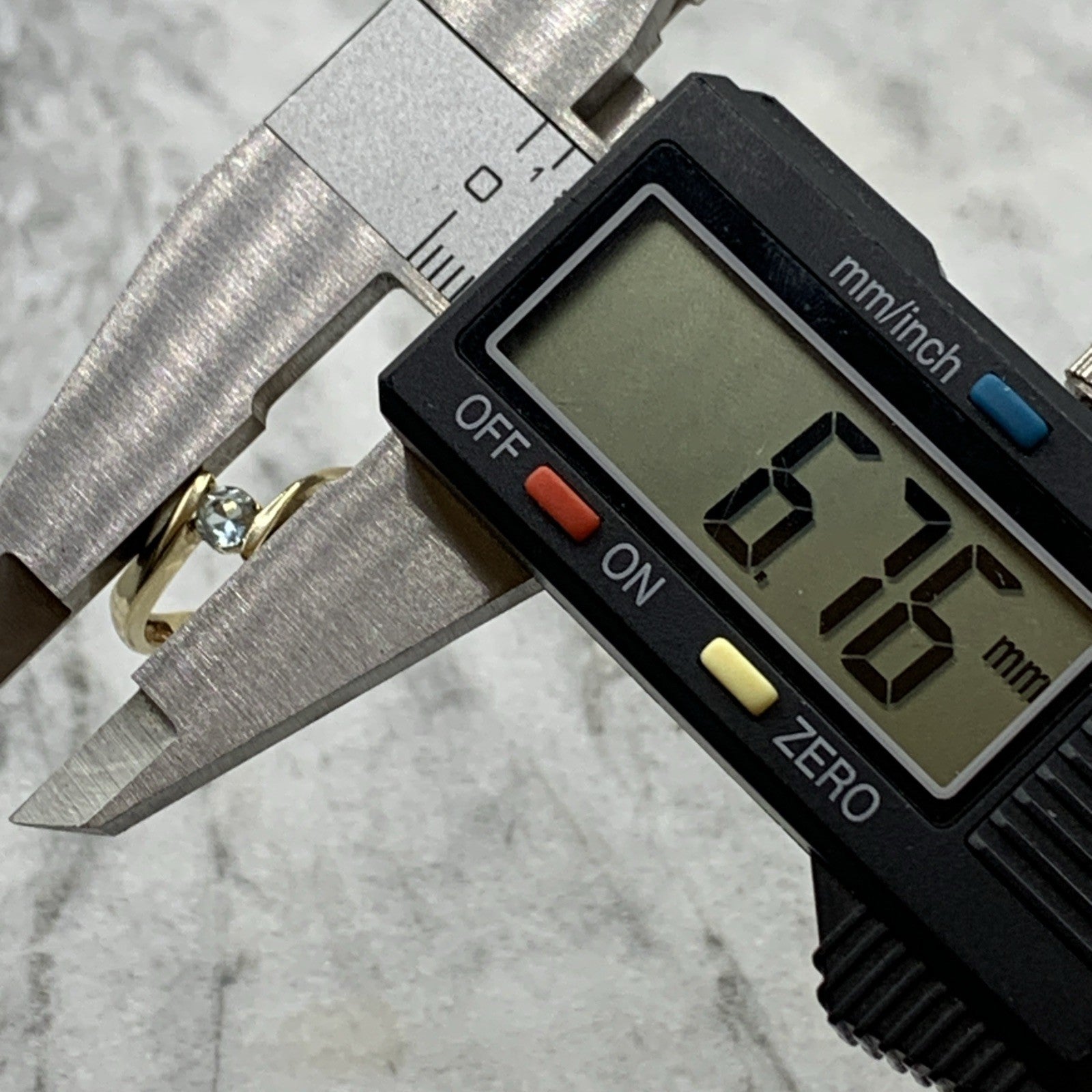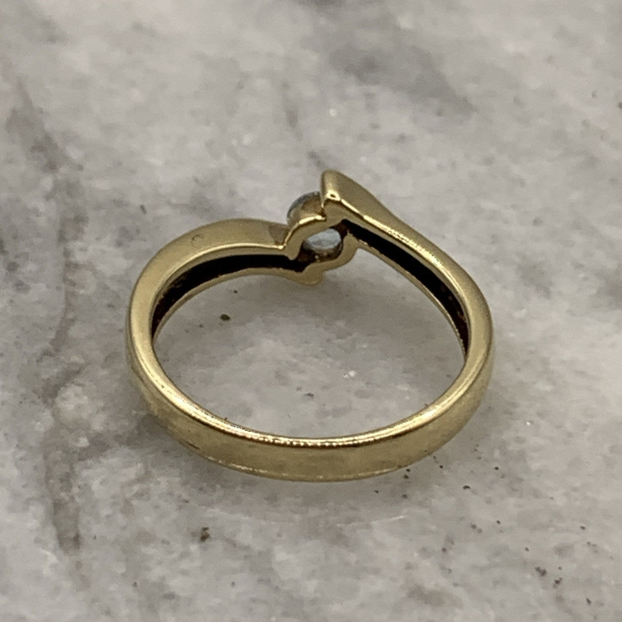 charming gold bypass ring featuring a round cut blue topaz.