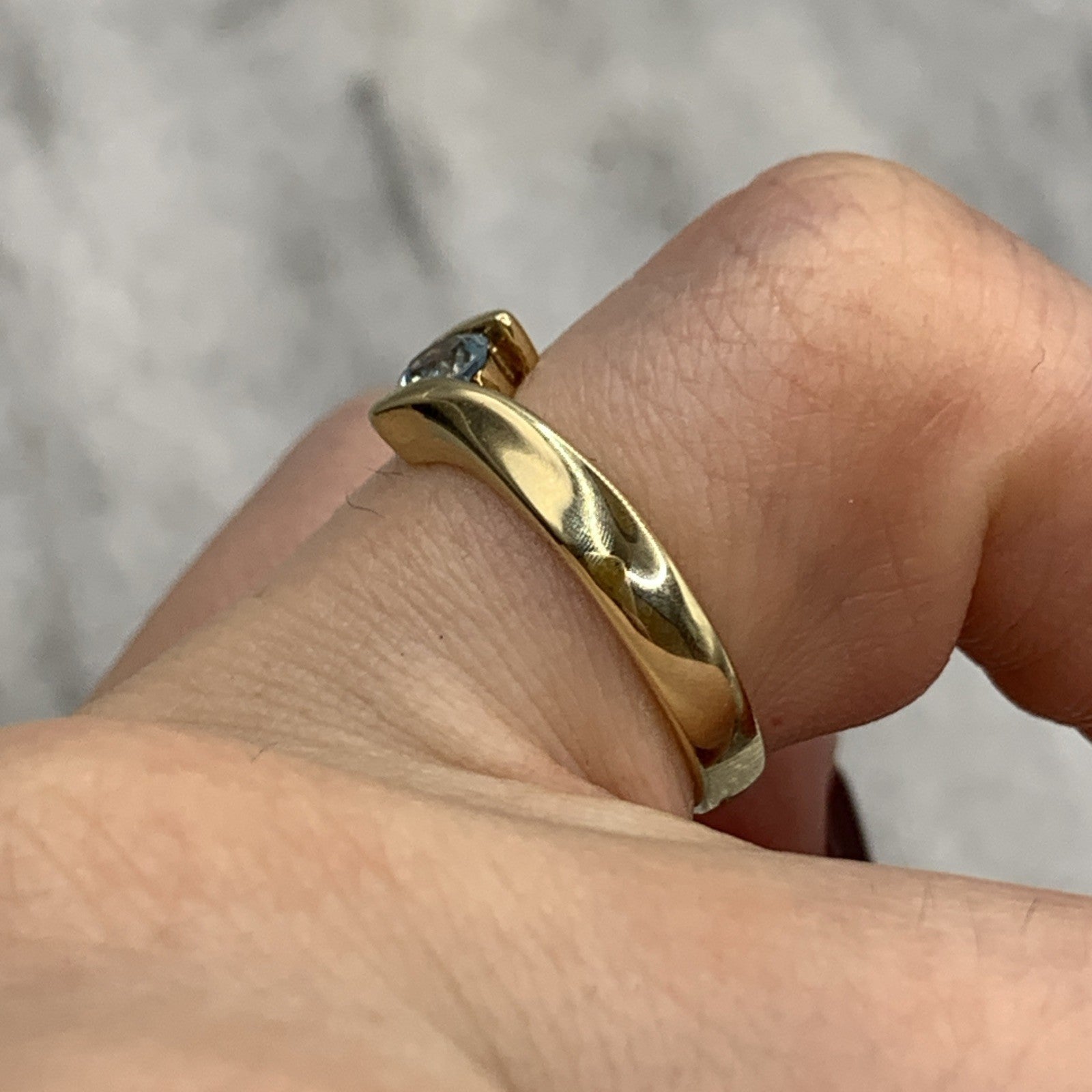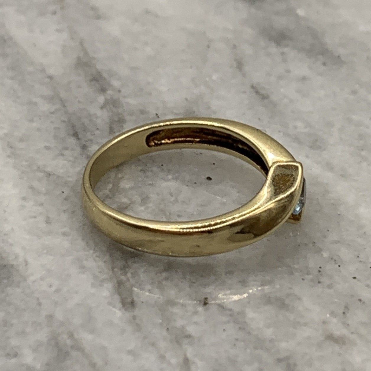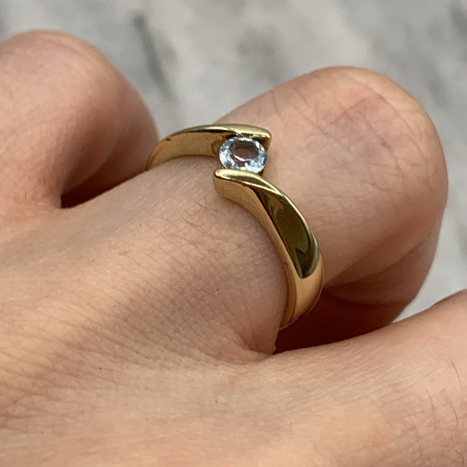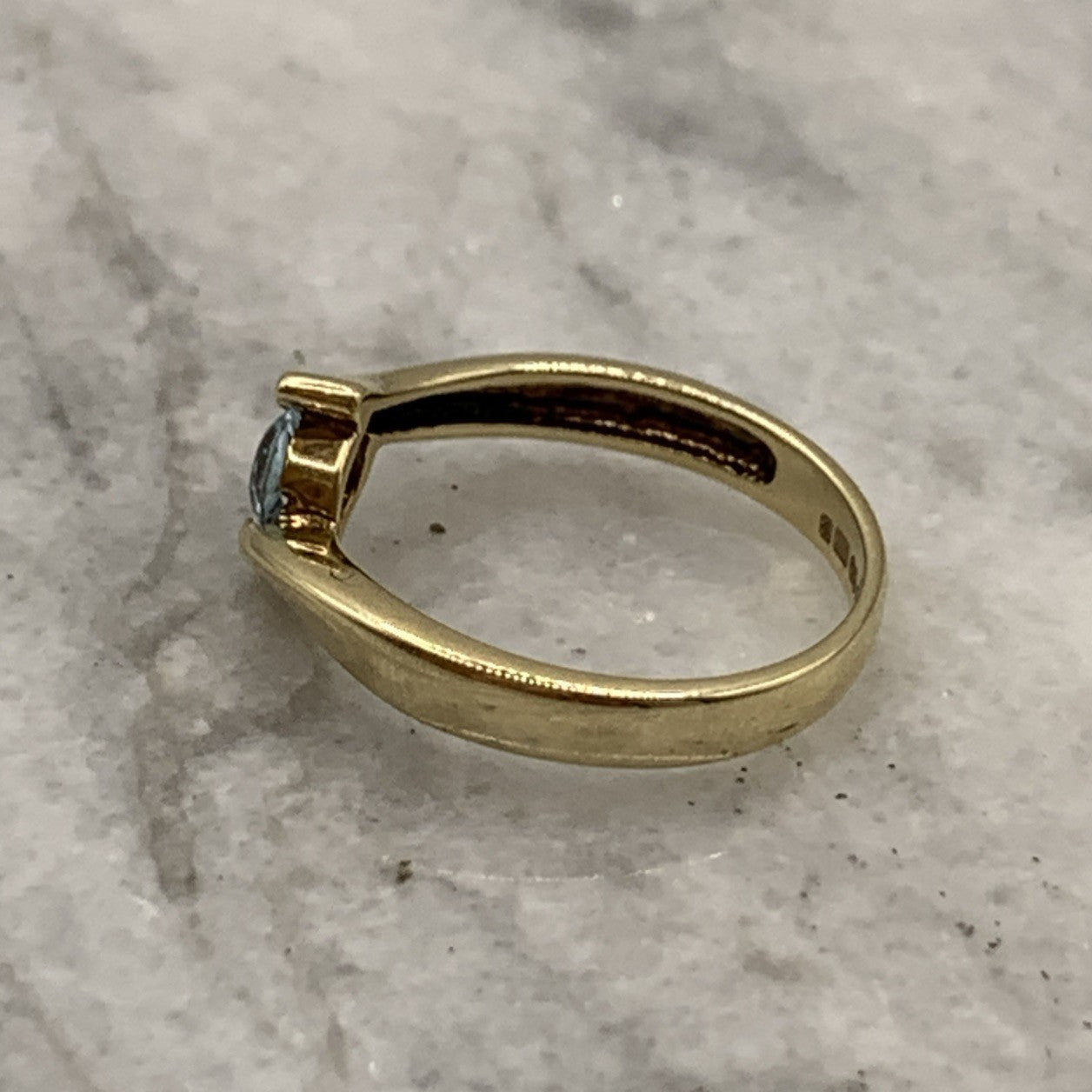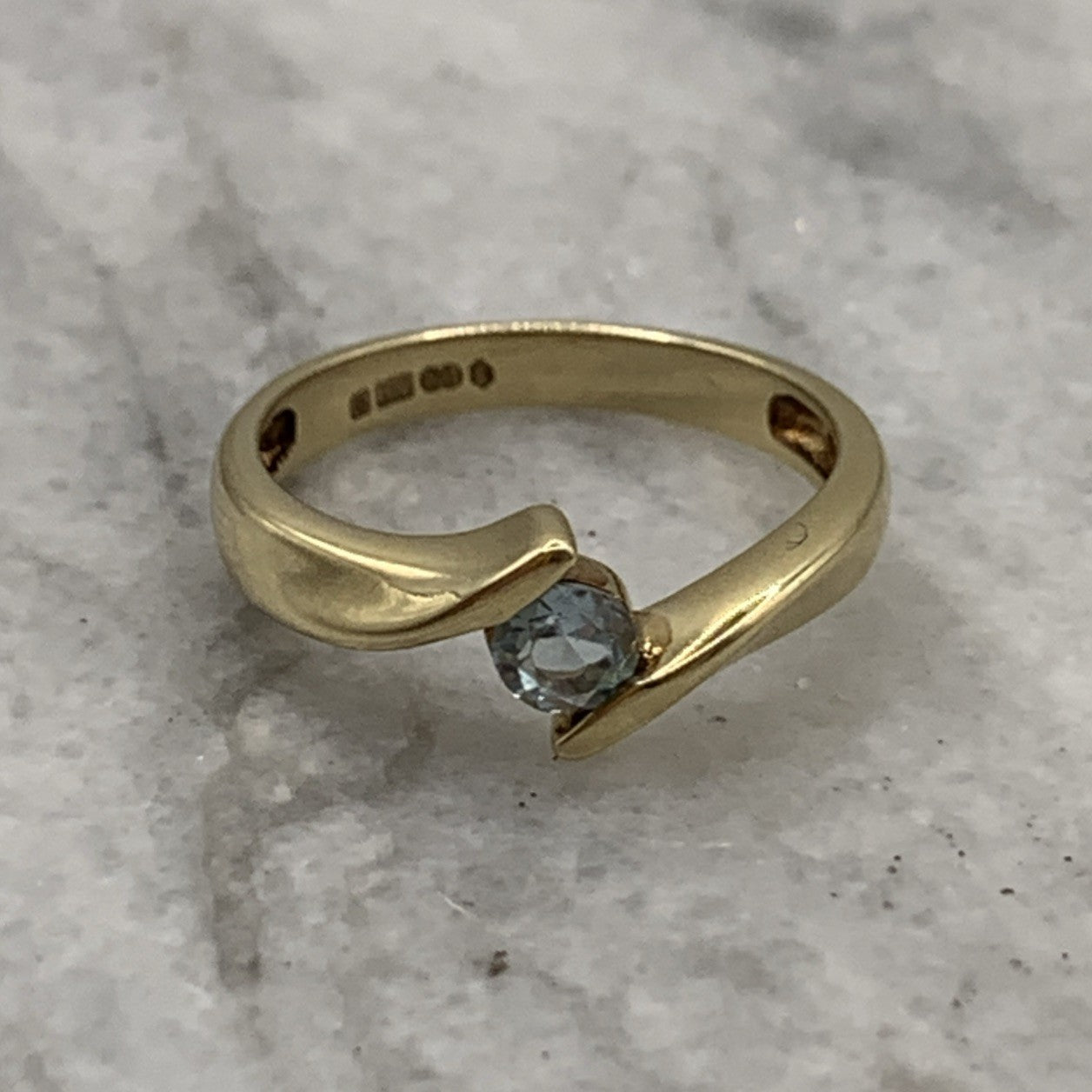 9 ct Gold Ring Blue Topaz Solitaire Bypass 375 Yellow Gold - Size L