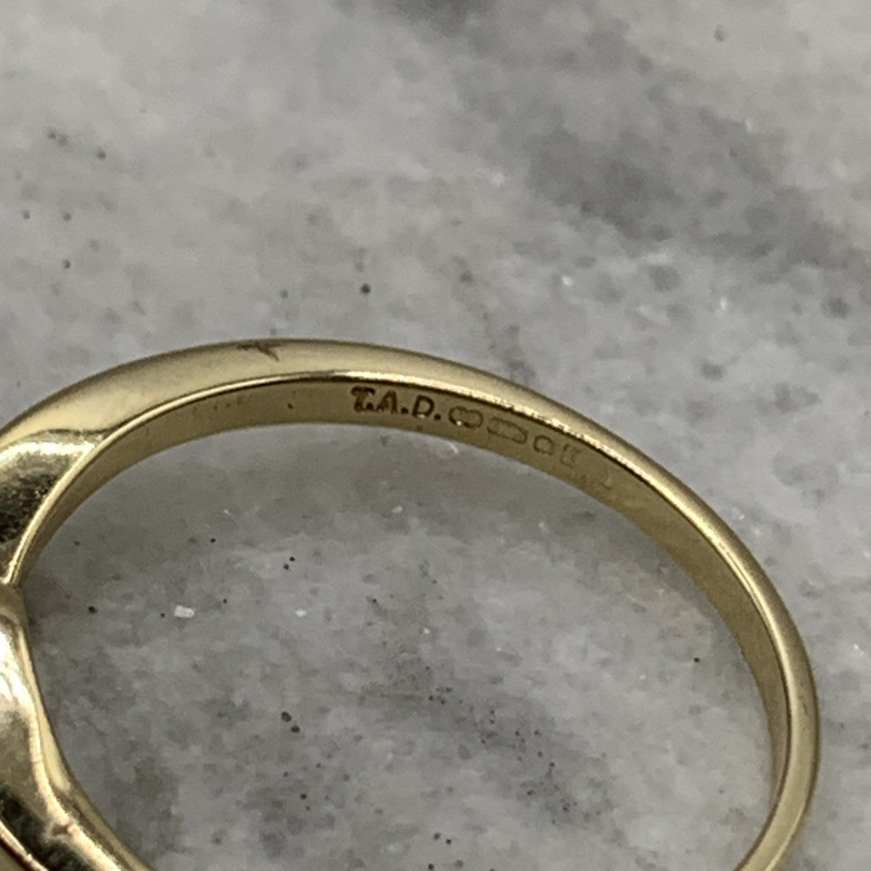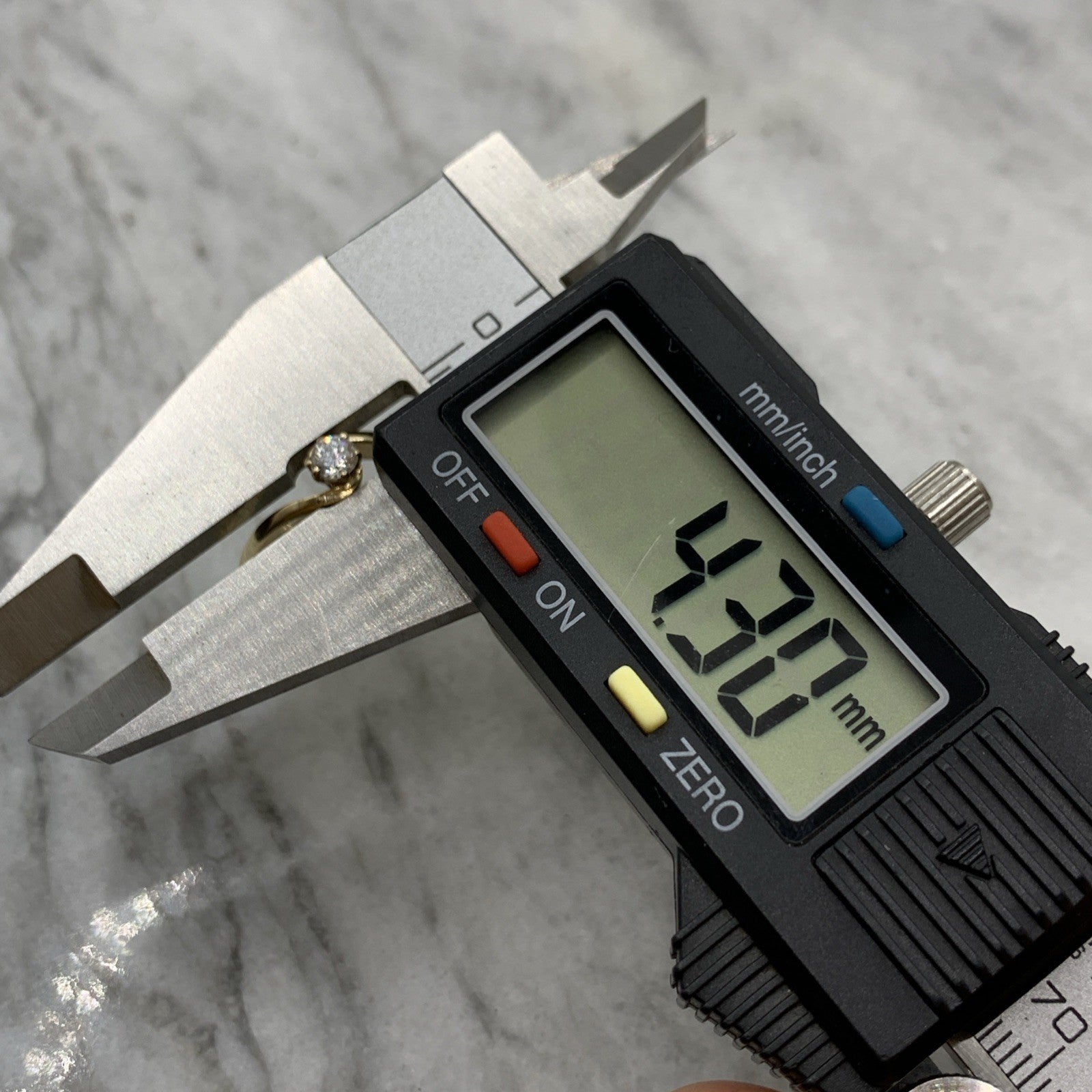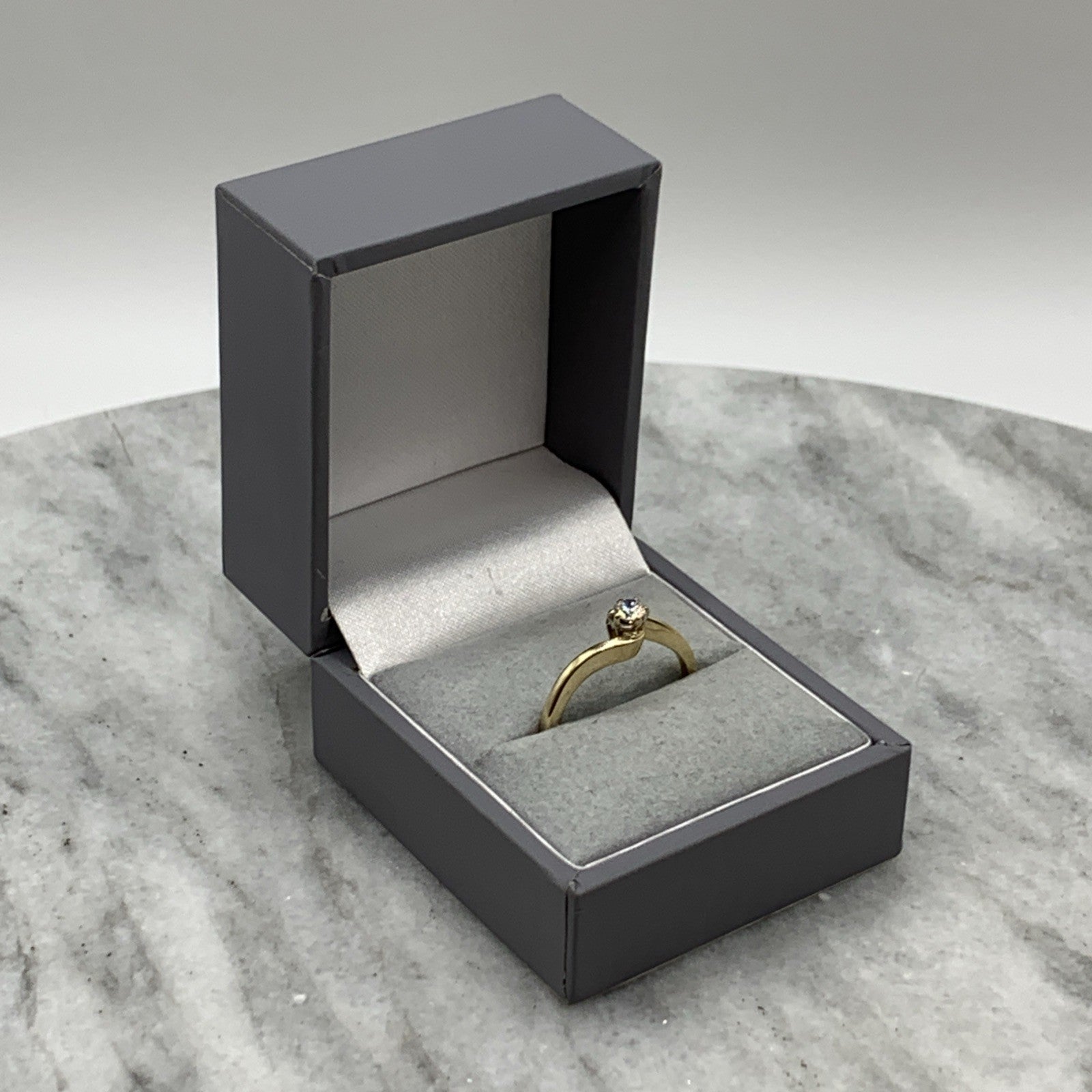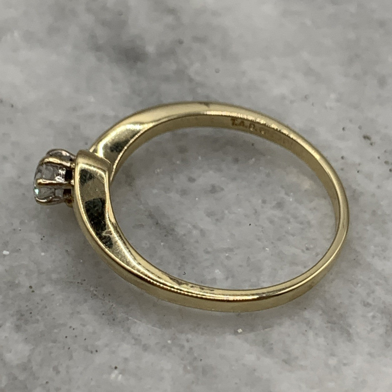 - A lovely gold bypass style ring showcasing a solitaire diamond at .20ct. Hallmarked.