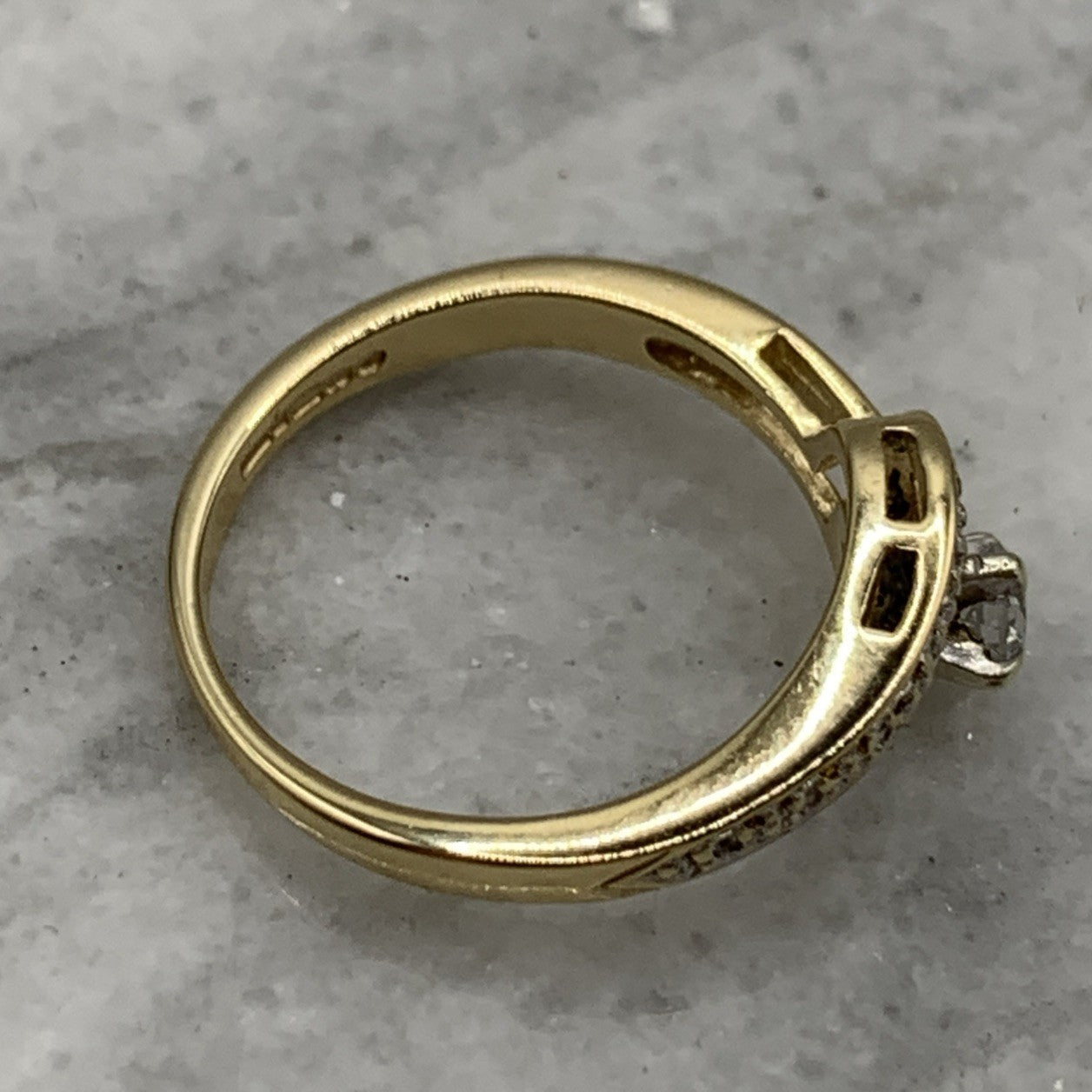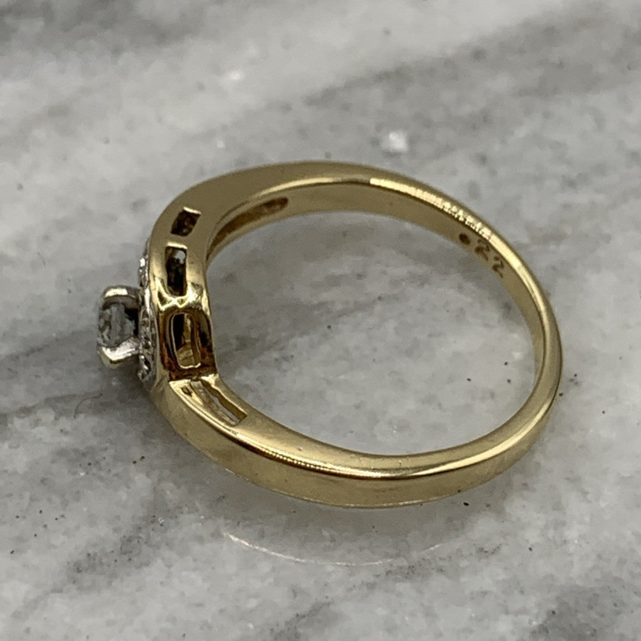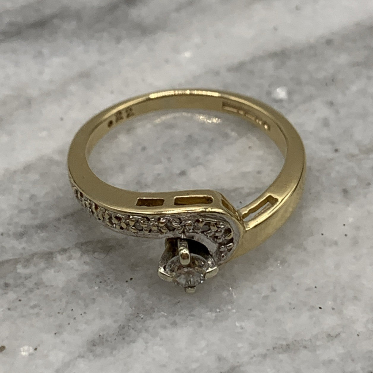 - A gorgeous gold wishbone wave style ring featuring .22ct of diamonds. Hallmarked.