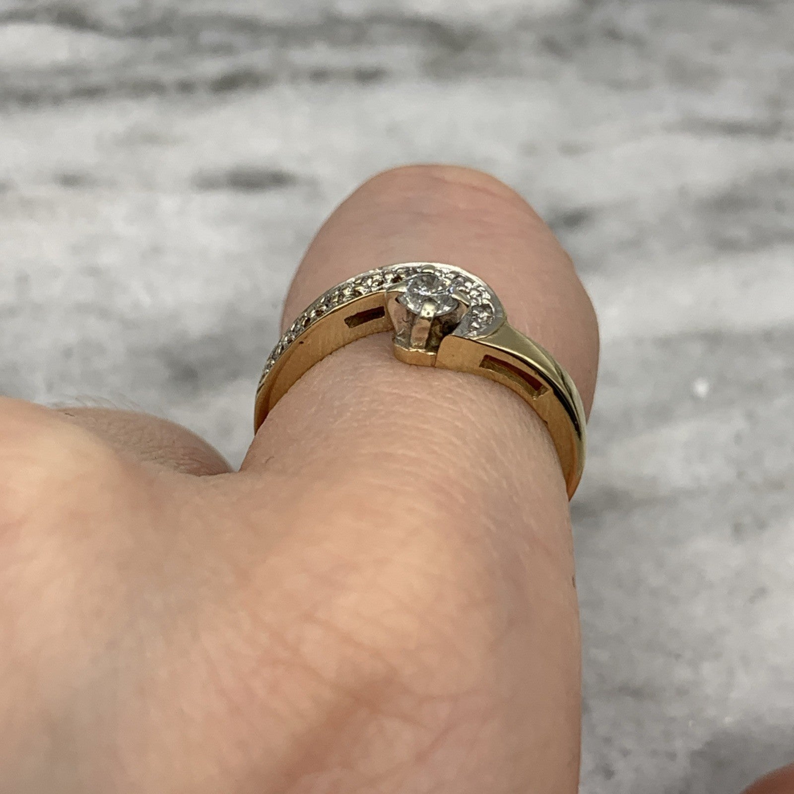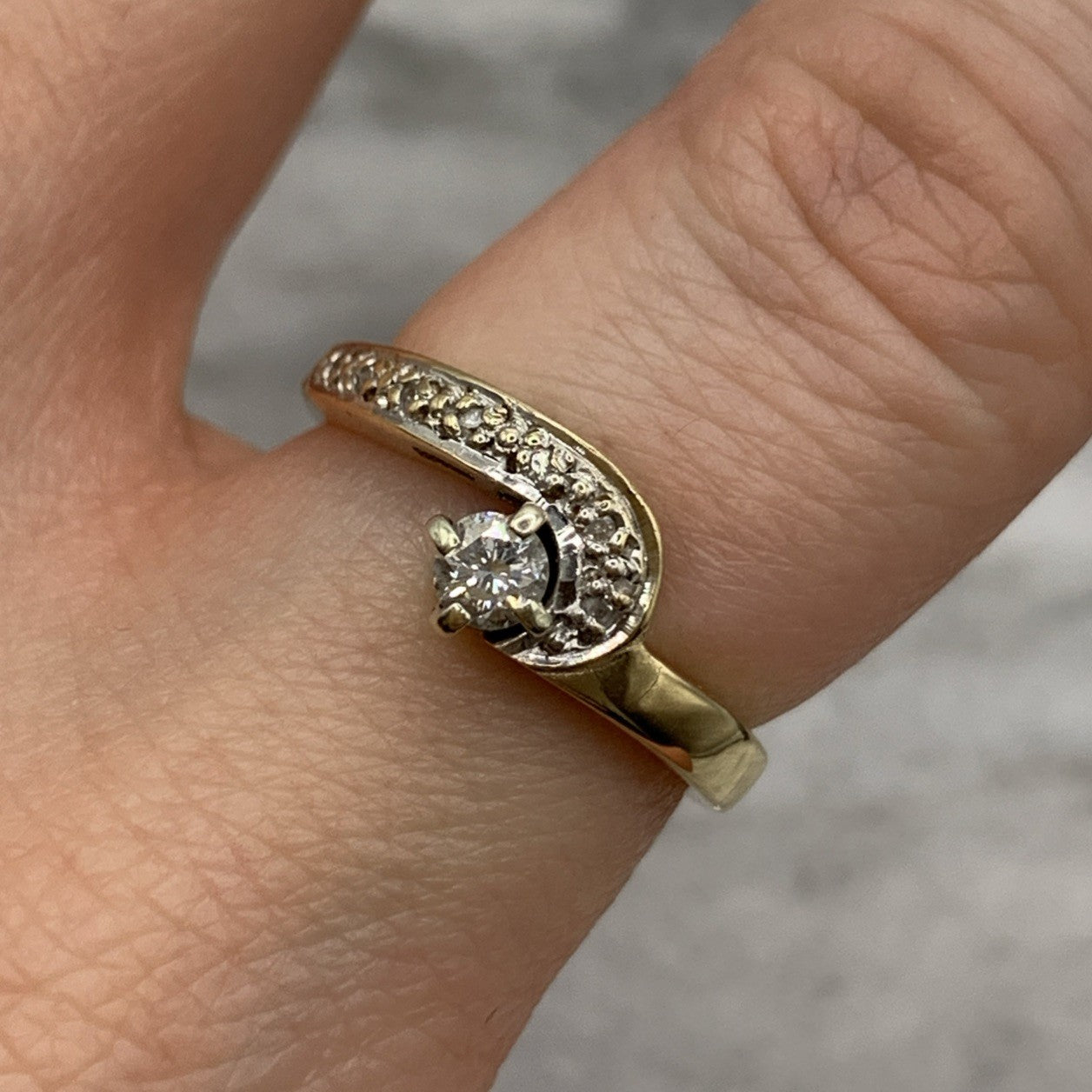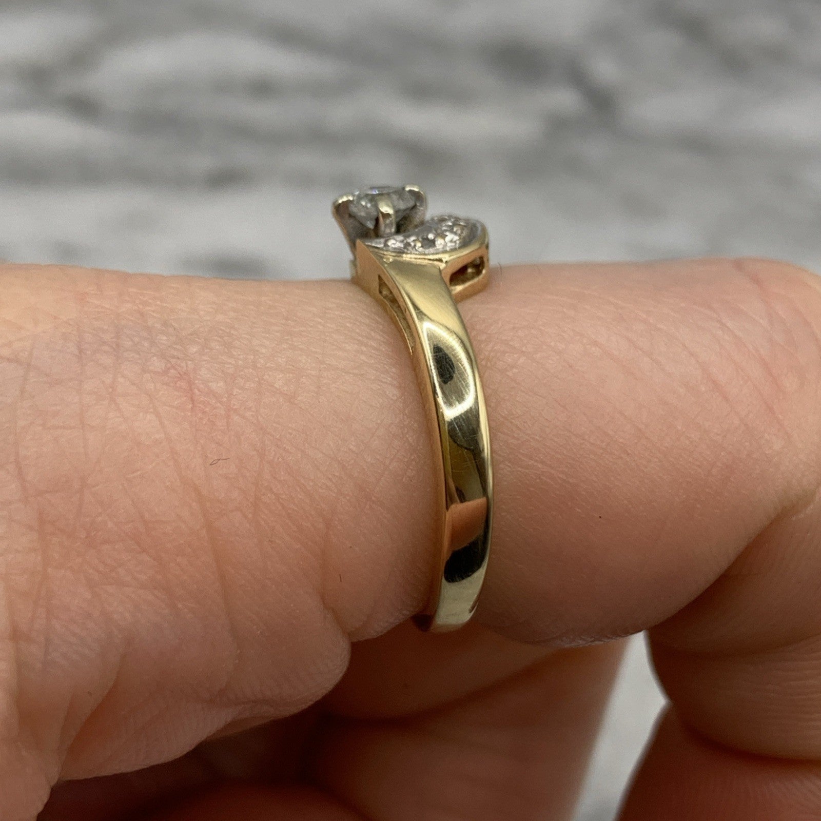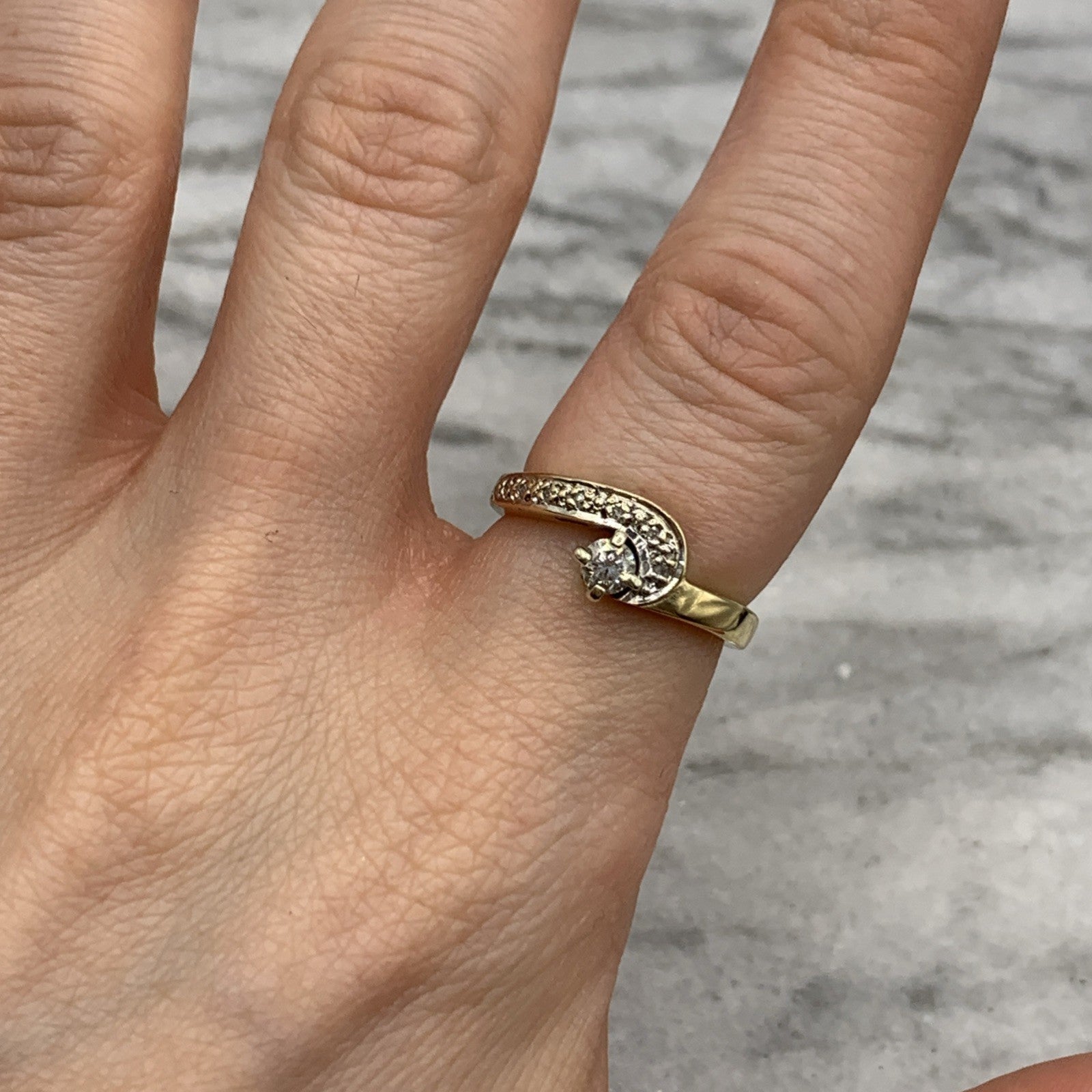 - A gorgeous gold wishbone wave style ring featuring .22ct of diamonds. Hallmarked.